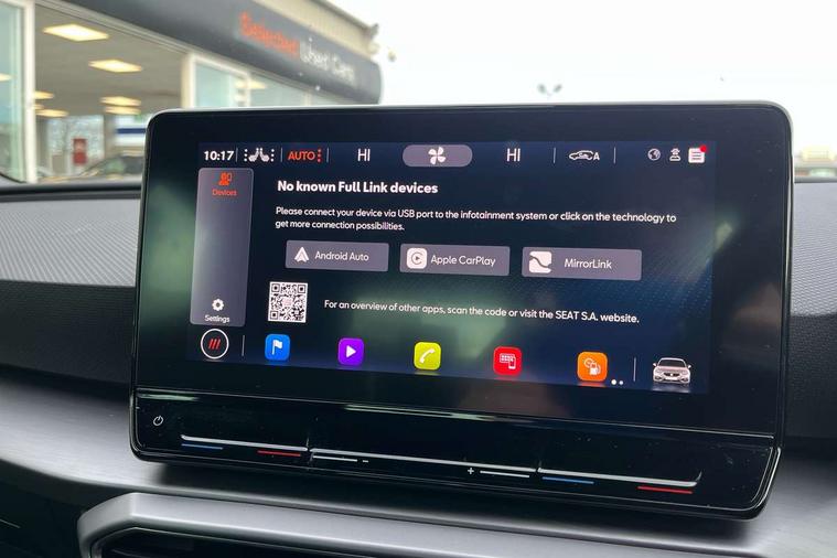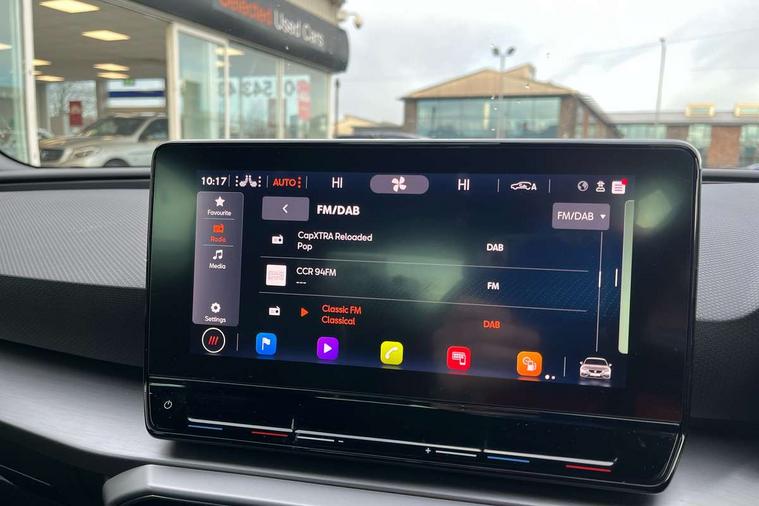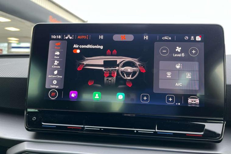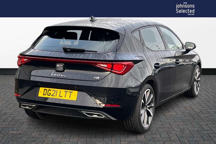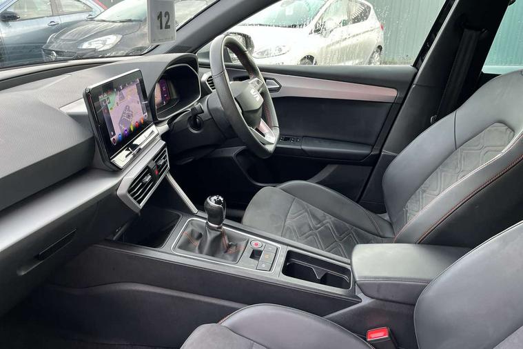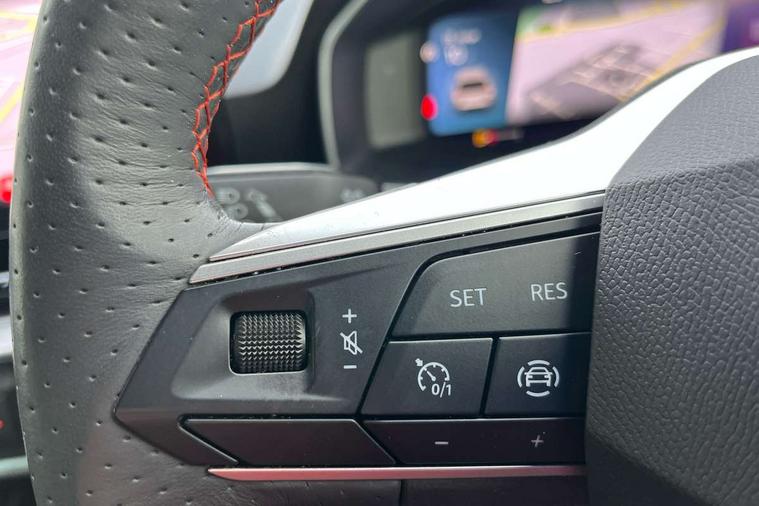 Digital cockpit, Front assist with forward collision warning braking reaction to vehicles, pedestrians and cyclists, Full link smartphone integration with Mirror Link, wireless Apple CarPlay and wired Google Android Auto, Lane keeping system, Park assist (inc front/rear parking sensors), Power assisted speed sensitive electro-mechanical steering, RPM, trip computer, outside temp gauge, instrument light brightness, low fuel warning light, lights on reminder, gearshift indicator, SEAT drive profile with 4 modes (Eco/Normal/Sport/Individual), throttle response, Service interval indicator, Start/stop system with regenerative braking, Sports suspension, XDS electronic differential lock and dynamic traction support, Auxiliary input socket, Auto dimming rear view mirror, Body colour door handles, Body coloured bumpers, Dark tinted rear windows, Door mirror LED indicator lights, Electric adjustable/heated/folding door mirrors with memory, Electric front/rear windows, FR sports bumper, Illuminated front door sill, LED front fog lamps with cornering function, LED headlights and tail lights with dynamic turn signals, welcome light silhouette from exterior mirrors and dynamic headlight range control, LED rear fog lamp, Rain sensing wipers, Rear wash/wipe, Separate daytime running light with automatic headlight control and coming home feature, 12v power point in centre console, 60/40 split rear bench seat with armrest, Ambient lighting in door trim, Black headlining, Dust/pollen filter, Electric driver lumbar support + passenger manual lumbar support, Folding boot cover, Front and rear height adjustable headrests, Front and rear reading lights X 4, Front centre armrest, Front seatback storage pockets, Heated leather steering wheel with leather gearstick, Height/reach adjust steering wheel, Interior lighting with LED lighting in sunvisor, glovebox and rear headlining, ISOFIX points in outer rear seats with top tether anchorage points, Luggage tie-down hooks, Microsuede cloth upholstery, Power driver seat with memory and manual height adjustable passenger seat, Sunvisors with covered illuminated mirror, Three zone climate control, Tool kit, Wraparound lighting, Media system plus with navigation - Leon, 3 point seatbelts on all rear seats, ABS, Brake control system - ESC and brake booster, Child proof door locks, Driver and front passenger airbags with front passenger airbag de-activation, front side and curtain airbags, Electronic parking brake, Extended safety system - seat belt tensioner, window closure and hazard lights, Hill hold control, Rear disc brakes, Seat belt reminder for front and rear seats, Tiredness recognition system, driver alert system, Tyre pressure monitoring system, Anti theft alarm system with interior monitoring in cab, backup horn and towing protection, KESSY Go (Keyless start), Lockable tailgate, Locking wheel bolts, Wireless phone charging, Chrome interior detailing, 18" Performance machined alloy wheels with 92Y tyres,