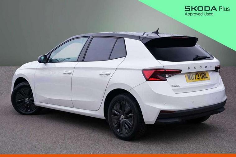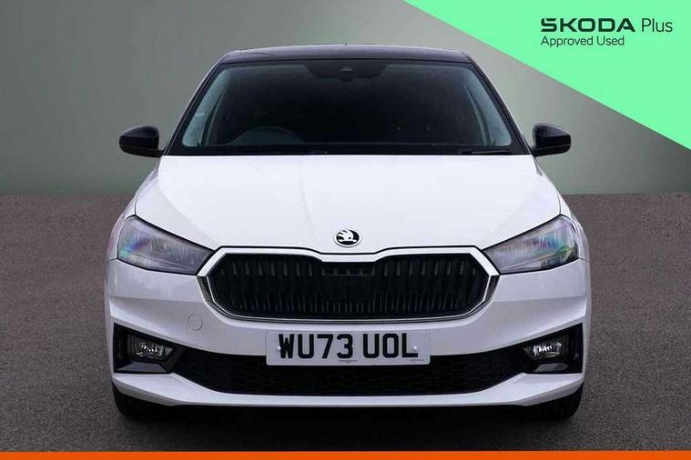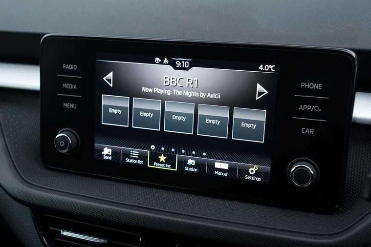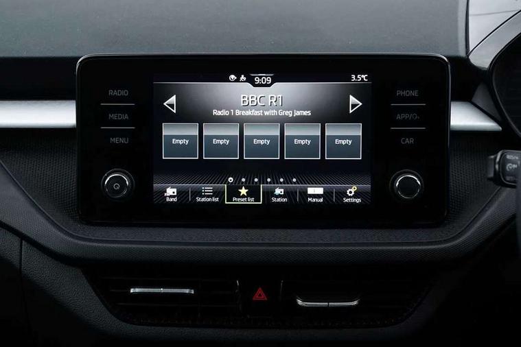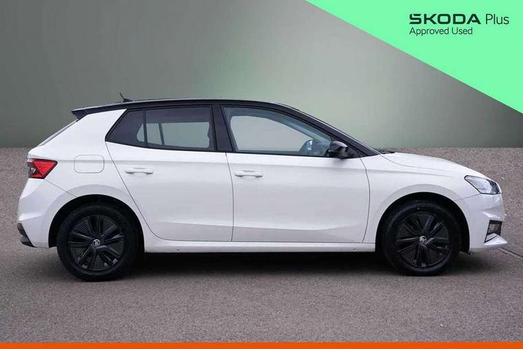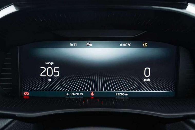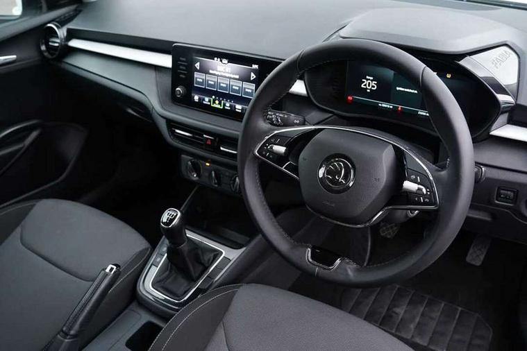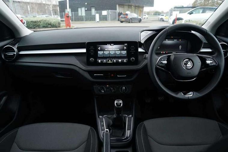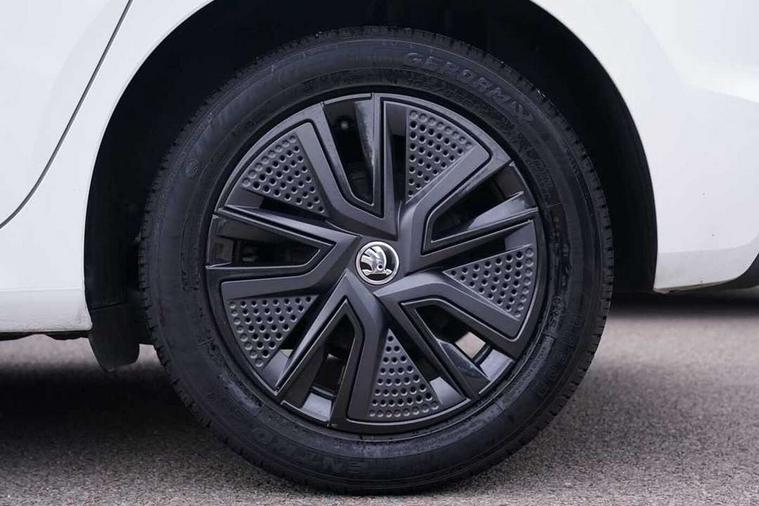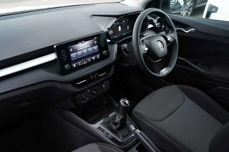 Bluetooth connection, Driver alert system - DAS, Electromechanical power steering, Exterior temperature gauge, Lane assist including road edge detection, Service interval indicator, Virtual cockpit with 10.25" colour display, 2x USB-C in the front (for data transmission and charging), 6 Speakers (4 in front and 2 in rear), Auxiliary socket for external MP3 player, Bolero radio with 8" colour display, DAB digital radio reception, Basic rear lights, Body coloured bumpers, Dimming rear view mirror with black frame, Door mirror integrated indicators, Electrically adjustable and heated door mirrors, Electrically adjustable front windows with function auto up/down, Front window wiper intermittent control, Headlight range control - Automatic, Ice scraper in fuel cap, LED daytime running lights with coming and leaving home feature, Mechanical adjustable rear windows, Privacy glass, Rear LED fog light, Rear side wing doors, Rear window wiper with washing nozzles, Roof colour door mirrors, Roof mounted spoiler, SKODA tailgate lettering in chrome, Third brake light, 3 rear headrests, Backrest split and folding, Central console with fixed cup holder and storage box, Chrome handbrake release button, Fabric upholstery, Gearshift knob/handle in leather, Grain satin black interior door handles, Hand brake lever handle in leather, Height adjustable front headrests, Height adjustable steering wheel, ISOFIX and TopTether anchorage points to the outer rear seats, ISOFIX and TopTether on the front passenger seat, Luggage compartment lighting, Pollen filter, Rear seat bench unsplit, Single front passenger seat, Storm grey headlining, Sun visors with mirror and airbag label on passenger side, Ticket holder, Umbrella in drivers door, 3-point height adjustable front seats belts with pretensioner and force limiter, Automatic warning lights in case of crash, Driver and passengers airbag with switch off function, e-Call+, ESC including ABS, MSR, ASR, EDS, HBA and XDS, Front and rear seat belt warning, FRONT ASSIST (AEB City and AEB Inter Urban), Front side airbags, Head airbags, One tone horn, Pedestrian protection, Three rear 3-points safety seat belts with pretensioner and force limiter including stop function for outer rear seat belts, Tyre pressure monitoring system, Anti-theft alarm system including immobiliser, interior monitoring, backup horn, and towing protection, Anodized cross line upper decorative trim, Colour Edition air vents, Grain satin black central console cover, Grain satin black lower decorative trim, Satin black door and side trim panel in front, Anti-theft wheel bolts protection, Super-low rolling resistance tyres,