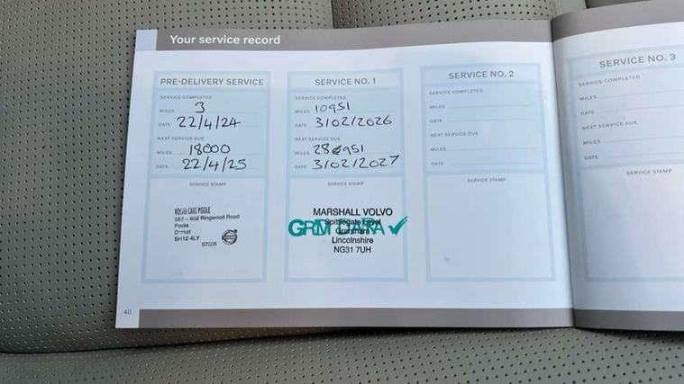 12.3" Progressive Driver Display, 360 degree surround view parking camera with side proximity sensors, 9" centre console portrait touch screen, Adjustable steering wheel force, Bluetooth hands free telephone connection, Drive mode settings, Driver alert control with lane keeping aid, Driver assistance (pilot assist and adaptive cruise control), Driver awareness - Blind spot information system with steer assist, cross traffic alert with autobrake and rear collision warning and mitigation, Emergency call service, Front and rear park assist, Google Automotive Services - Navigation with Voice recoginition and google assistant, Handsfree power tailgate opening and closing, Oncoming Lane Mitigation, Power operated tailgate, Service interval indicator, Speed limiter, Speed sensitive steering, Trip computer, Volvo on call, Wireless Mobile Phone Charger, 3.7 kW monophase on board charger, 6m 3 phase 16amp Type 2 / mode 3 charge cable, 7m 10amp charge cable with 3 pin plug, 8 speed automatic transmission with start/stop + manual change functions, Active four C chassis - four corner adaptive dampers with electronic air suspension, Electric rear axle drive, Lithium-ion battery, On board charger - 6.4 kW 2 phase/3.7kW single phase, Recharging port located in nearside front wing, DAB Radio (Digital Audio Broadcasting), Low speed exterior sound speaker, Premium Sound by Bowers and Wilkins, dirac live, dolby pro logic II surround sound, 18 speakers/1400W output and fresh air subwoofer, Steering wheel remote infotainment controls, Active bending headlights with adaptive shadow technology, Adaptive brake lights with high level LED brake lights, Auto dimming interior + exterior mirrors, Auto folding and heated power door mirrors, Automatic headlight levelling system, Automatic LED Headlights + Active high beam incorporating daytime running lights, Body colour bumpers, Dark tinted windows - rear side windows and rear screen, Front and rear power windows, Headlight cleaning system, High gloss black door mirrors and window surround, High gloss black front and rear bumper deco, High gloss black mesh front grille with surround, Home safe and approach lighting, Integrated roof rails in high gloss black, Power glass tilt and slide panoramic sunroof with sun curtain, Puddle lights, Rain sensor with automatic windscreen wiper activation, Rear side wing doors, Rear wash/wipe with intermittent wipe setting, Roof antenna, Roof spoiler, Visible VIN plate, 12V socket front tunnel console, rear passenger compartment and cargo area, 2 seat bench in 3rd row, 2nd Row centre armrest with and cupholders, 3 seat bench in 2nd row, 4 zone electronic climate control with Clean zone air quality system + pollen filter, A-pillar parking ticket holder, Advanced interior air cleaner PM2.5, Air conditioning for 3rd row of seats, Ambient door and instrument panel lighting, B Pillar ventilation, Bright metal luggage threshold, Centre console cupholders and storage, Floor mats, Front and rear door pocket and front cupholder illumination, Front and rear reading lights, Theatre lighting and centre armrest storage illumination, Front footwell and side step illumination, Front headrests, Front seat cushion extensions, Heated front seats, Heated rear seats, Heated steering wheel, Height/reach adjustable steering column, Illuminated front and rear tread plates, Illuminated luggage compartment, Illuminated tailgate, Illuminated vanity mirrors + ticket holder, Illumination lockable glovebox compartment, Integrated sun curtains in rear doors, Isofix outer rear child seat preparation in 2nd row, Load protection net, Luggage compartment divider with grocery bag holder, Outboard armrest with cupholder and storage for third row passengers, Power driver seat with multi directional lumbar support and memory for seat and exterior mirrors, Power folding 2nd row headrests, Power passenger seat with multi directional lumbar support and memory, Rear footwell and side step illumination, Rear headrests, Recharge aluminium tread plates, Semi automatic load cover, Single front passenger seat, Underfloor luggage compartment storage, 7 three point seatbelts, City safety with steering support includes pedestrian, cyclist and large animal detection and front collision warning with full auto brake, Drivers knee airbag, Dual stage driver/passenger airbags, First aid kit, Front seats SIPS airbags, Hill descent control - off drive mode, Hill start assist, IC (Inflatable Curtains) - Full Length, Passenger airbag cut-off switch, Power child locks on rear doors, Power parking brake with auto hold function, Road sign information display, Run off Road Mitigation, Run off Road Protection, Seatbelt reminder and pretensioners for all seats, SIPS (Side Impact Protection System), Slippery road and hazard light alert, Stability and Traction Control with Spin control, Engine Drag Control and Corner Traction Control, Tyre pressure monitoring system, Vehicle deceleration control with Anti-lock Brake System, Electronic Brake Distribution and Emergency Brake Assist, Warning triangle, WHIPS whiplash protection system - front, Anti-theft alarm including immobiliser/volume sensor + level sensor, Care key with user defined top speed, Key integrated remote control central locking + fuel flap with deadlocking system and auto open/close power windows, Keyless drive includes keyless entry and keyless start, Locking wheel nuts, Private locking for glovebox and tailgate, Tailored Instrument Panel and Door Tops with Contrast Stitching, Tyre sealant kit and compressor,