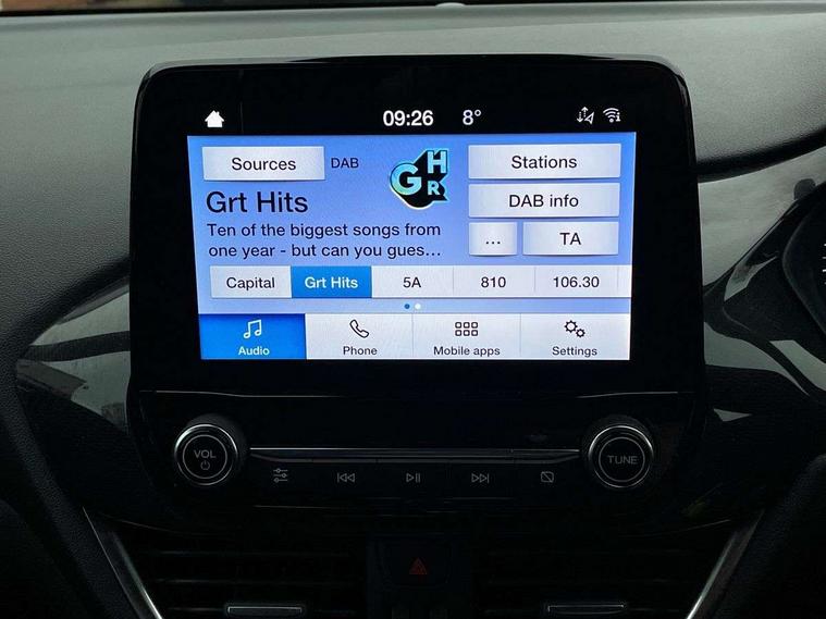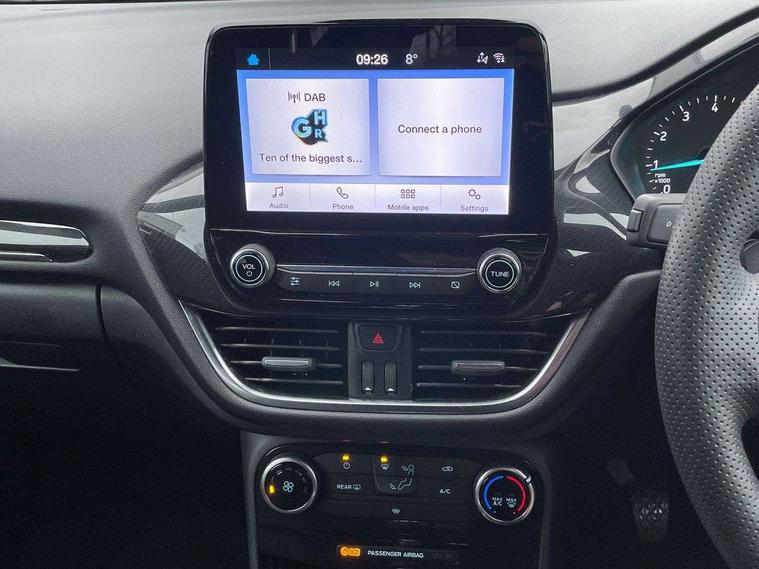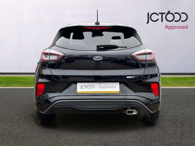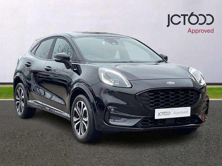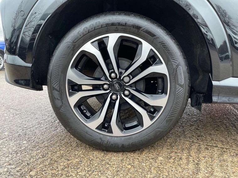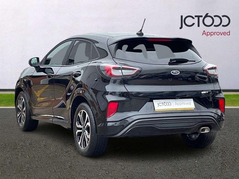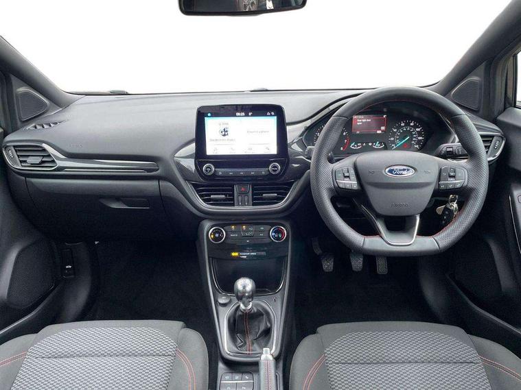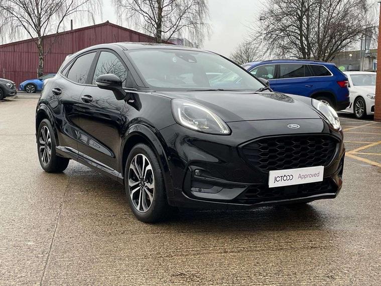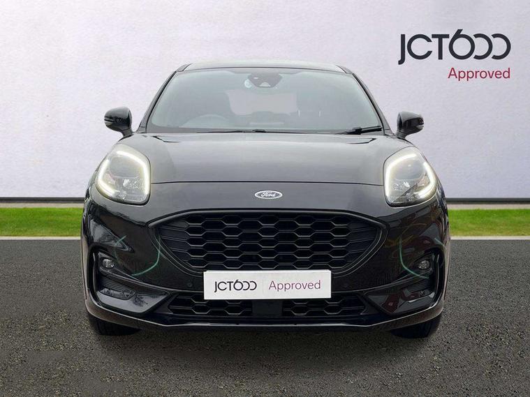 Driver impairment monitor, Emergency call service, Ford easy fuel, Full digital 12.3" instrument cluster, Lane keeping aid with lane departure warning, Power assist steering, Power start button, Rear parking sensor, Selectable drive modes(Normal, Eco, Sport, Slippery and Trail), Speed sign recognition, Sport suspension, Automatic headlights with auto high beam, Automatic rain sensing wipers, LED rear lamps, Power foldable heated door mirrors with puddle lamps, Projector headlamps with LED day time running lights and front fog lamps, Quickclear heated windscreen, Rear side wing doors, Rear wiper, ST-Line body styling kit with unique grille and large body colour rear spoiler, Third brake light, 3 seat bench in 2nd row, Centre console with armrest and stowage, Ford megabox extended bootspace, Front and rear head restraints, Front floor mats, Manual 2 way passenger seat adjustment, Manual 4 way driver seat adjust with lumbar adjustment, Single front passenger seat, ST- Line cloth trim with red stitching, ST-Line flat bottomed sensico leather steering wheel with leather handbrake and aluminium gear knob, Ford SYNC 3 navigation pack - Puma, 3 rear seatbelts, Child safety lock, Electronic stability control (ESC) and hill start assist, Pedestrian/cyclist detection & post-collision braking, Pre collision assist system, Tyre pressure monitoring system (TPMS), Thatcham alarm,