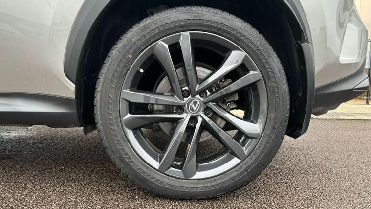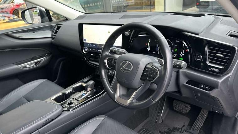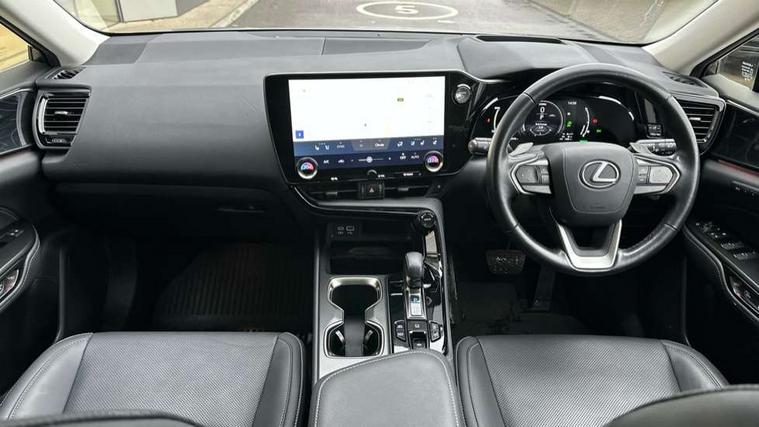 4 driving modes EV/Eco/Normal/Sport, 7" display in instrument binnacle, Blind spot monitoring with rear cross traffic alert, Bluetooth telephone connectivity, eCall emergency system, Electric speed sensitive power steering, Intelligent parking sensors - 4 front and 4 rear, Lane change flasher function, Lexus link connect - Cloud based navigation, cloud based voice assistant, always online and 9.8" VGA touchscreen, Push button starter, Reversing camera with back guidelines, Service interval indicator, Wireless Apple CarPlay and wired Android Auto, Wireless Smartphone charger, 6.6 kW onboard charger, All Wheel Drive (AWD), Hybrid automatic transmission, Vehicle Dynamics Integrated Management (VDIM), Vehicle Stability Control (VSC), 10 speakers, 4 USB ports - 2 front, one USB C, 2 rear USB C, DAB Digital radio, Auto dimming interior rear view mirror, Automatic headlights, Bi LED headlights, Double hidden exhaust pipes, Front and rear one touch power windows, with anti-jam protection, Heated, auto-folding, auto-dimming outside mirrors with reverse tilt function and turn indicators, Illuminated door handles with puddle light, LED brake lights and rear lights with emergency brake signal, LED daytime running lights, LED front fog lights, LED Indicators, Power back door with kick sensor, Privacy glass, rear doors and tailgate, Rain sensor windscreen wipers, Rear side wing doors, Rear wiper, Roof rails, 12V accessory port centre console and luggage compartment, 2 cupholders in front centre console, 2 way electrical lumbar adjustment for driver, 2 x fixed shopping bag hooks in boot, 2 x sun visors with vanity mirror and lamp, 3 seat bench in 2nd row, 4 x tie down hooks in the boot, 6 way manually adjustable front seats, 60/40 split folding rear seat, Adjustable rear seat backrest, Card holder installed in driver and passengers sun visors, Centre armrest with storage box, Dual climate control air conditioning system, Front and rear head restraints, Front and rear textile carpet mats, Front passenger seat, Heated front seats, Heated steering wheel, Leather gear lever, LED interior illumination, Power adjustable leather steering wheel with paddle shifts, Rear centre armrest with 2 cupholders, Tahara leather upholstery, Whiplash Injury Lessening (WIL) feature (active headrest) for seats, 2 x Isofix child rear seat restraints, 3 point ELR front seatbelts with pretensioners, 3x3 point rear seat belts, ABS, Adjustable seat belt anchor points, Driver and front passenger 2 stage airbag, Driver/front passenger side airbags, Drivers knee airbag, E-Latch with safe exit assist, EBD + Brake Assist, ECB (Electronically Controlled Brake System), Electronic parking brake, Front and rear curtain shield airbags, Front center airbag, Front passenger seat cushion airbag, Hill assist control, Lexus safety system - dynamic radar cruise control, pre collision system day and night, lane tracing assist, road sign, automatic high beam, OTA, Manual rear child locks, Passenger airbag cut-off device, Traction control, Tyre pressure warning, 2 x remote key fobs, Anti-theft system with alarm, intrusion sensor, glass breakage sensor, tilt sensor and engine immobiliser, Locking wheel nuts, Smart keyless entry, Speed sensitive auto door locking, Two motion door lock with double lock, VIN Window etching, 3D prism black Inlay, Tyre repair kit,