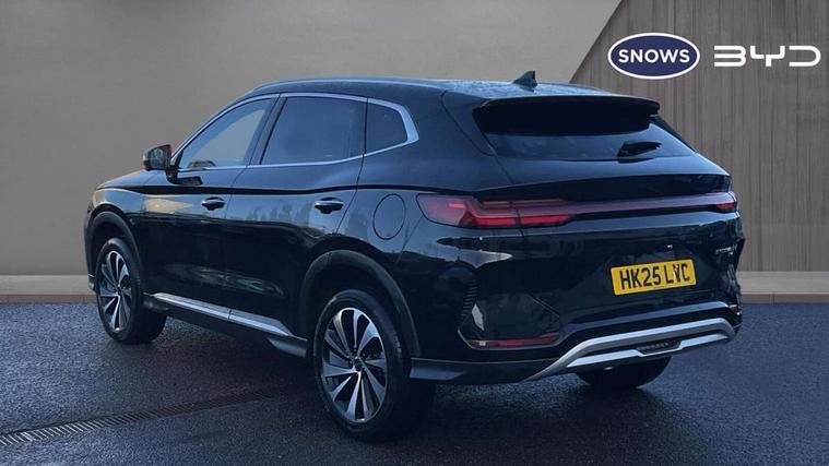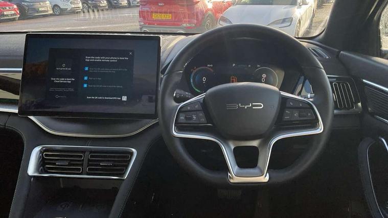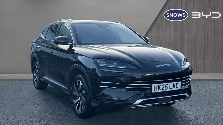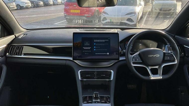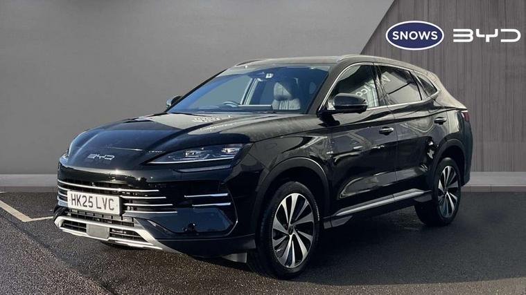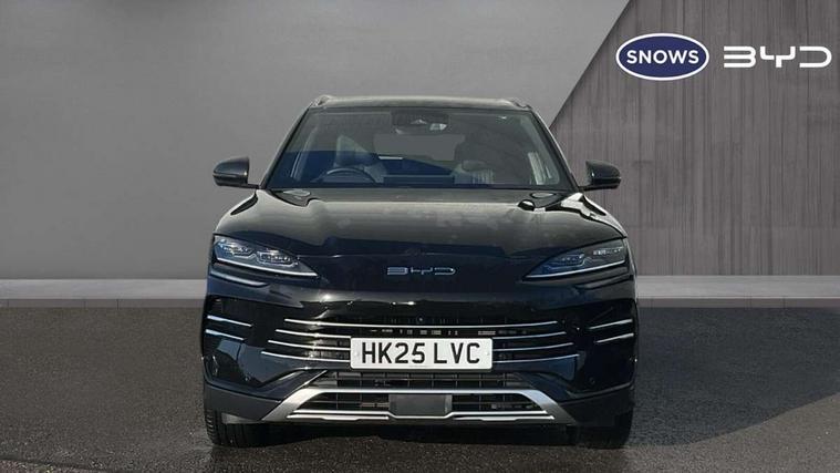 12.3" TFT full LCD instrument panel, 360 camera, Adaptive Cruise Control (ACC) and Intelligent Cruise Control (ICC), Automatic vehicle hold, Blind spot detection, BYD voice control assistant "Hi, BYD", Controller Deceleration Parking (CDP), Drive mode select (Eco, normal, sport, snow), e-Call (emergency call), Electric tailgate release, Emergency Lane Keeping Assist (ELKA), Forward collision warning, Front and rear parking sensors, Front cross traffic alert and front cross traffic brake, Head up Display, Indirect driver fatigue management, Intelligent Speed Limit Control (ISLC), Keyless system entry and start, Lane change assist, Lane Departure Assistant (LDA) and Lane Departure Warning (LDW), Lane departure prevention, PAS, Predictive collision warning, Rear collision warning, Rear cross traffic alert and rear cross traffic brake, Rollover Control System (RMI), Smartphone wireless charging, 2 x 15W, Traffic sign recognition (TSR), Vehicle-to-Load (V2L) function, 11kW on board charger, Mode 3 Type 2 charging cable (3 phase), V2L (Vehicle to load) power strip - Type F, 15.6" Electrically rotatable touchscreen, FM/DAB+ radio, Front USB ports, 1 x 18W Type C, 1 x 60W Type C, Infinity sound system with 10 speakers, Rear USB ports, 2 x 18W Type C, Aluminium roof rails, Auto dimming interior rear view mirror, Auto headlamps (on/off), Dynamic welcome lights, Electric folding and heated door mirrors, Emergency tow hook, Exterior mirror footlights, Follow me home headlights (The headlights turned on in advance and delayed off function), Front windscreen, UV protection, thermal insulation and sound proofing, High beam assist, LED 3rd brake light, LED daytime running lights, LED Headlights, LED taillights, One touch electric front/rear windows with pinch protection, Panoramic sunroof with anti-pinch sensor and electrically adjustable sunshade, Rain sensor windscreen wipers, Rear fog lights, Rear side wing doors, Rear window and rear windscreen with tinted glass, Rear wiper, 12V power outlet, 3 seat bench in 2nd row, 8 way electrically adjustable drivers seat, Adjustable rear headrests, Boot parcel shelf, Driver and passenger sunvisors with illuminated vanity mirrors, Driver seat memory function, Front centre armrest with 2 cupholders, Front LED reading lights, Front passenger seat with 4-way electric adjustment, Front seat footlights, Heat pump, Heated front seats, Heated steering wheel, Integrated headrest in front seats, ISOFIX and i-Size for front passenger and outer rear seats, LED front door lights, Nylon floor mats, PM2.5 air filter, PM2.5 air purification system, Rear air vents, Rear armrest with 2 cupholders, Rear side LED reading lights, Rhythm-reactive multi-colour ambient lighting, Single front passenger seat, Split folding rear seats - 40/60, Vegan leather multifunction steering wheel, Vegan leather upholstery, Ventilated front seats, 3x3 point rear seatbelts, ABS/EBD, Automatic emergency braking system, Brake override system (BOS), Child presence detection, Comfort stop, Door open warning, Driver airbag, Electric parking brake, Force limiting pre-tensioned front seat belts, Front centre airbag, Front passenger airbag, Front passenger airbag deactivation, Front side airbags, Hill descent control, Hill hold control, Hydraulic Brake Assist (HBA), Hydraulic brake boost, Mechanical child safety lock, Rear middle seat force limiting seat belt, Rear seat belt pretensioners, Reflective vest, Side curtain airbags, Traction control system (TCS), Tyre pressure monitoring system (TPMS), Vehicle Dynamics Control System (VDC), Warning triangle, 2 x Smart keys, Anti theft alarm system, Automatic door locking, 19" Bi-colour alloy wheels, Tyre nut covers remover, Tyre repair kit,