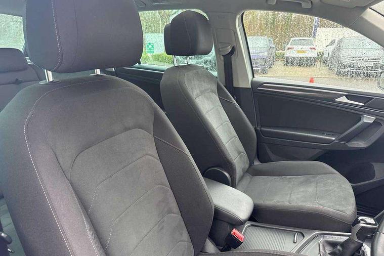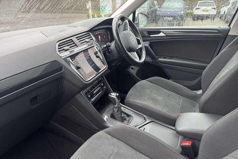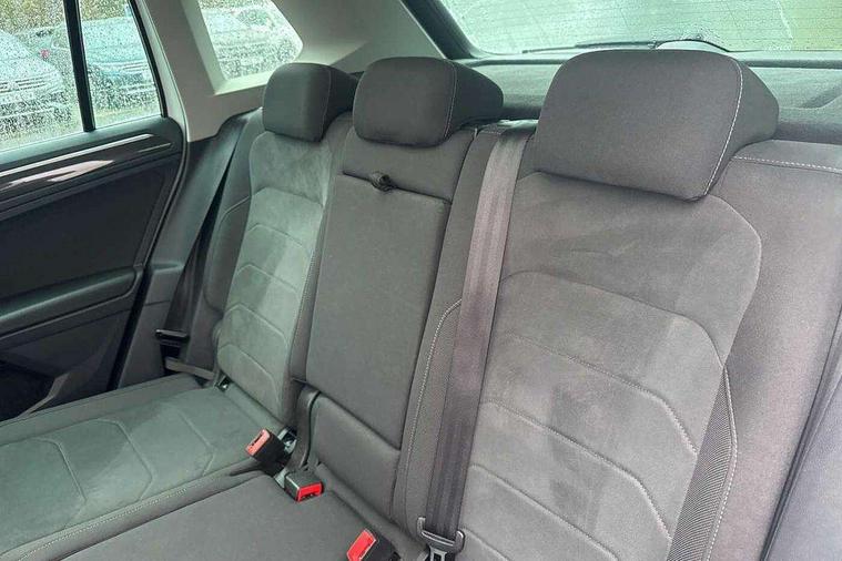 Adaptive cruise control ACC stop and go including speed limiter, App-Connect incl. App-Connect Wireless for Apple CarPlay and Android Auto, Bluetooth phone integration system, Digital Cockpit Pro - Active info display, Distance control assist, Driver alert system, Driver profile selection, Dynamic road sign display, eCall emergency call system, Electromechanical speed sensitive power steering, Engine start/stop button, Lane keeping system Lane Assist, Lights on warning, Motorised electric tailgate operated via key fob, drivers door and foot movement under tailgate, Multifunction front facing camera, Outside temperature display, Premium multifunction display with multi colour display, Remote control boot opening, Rev counter, Revision / skills operating concept travel assistant, Service interval indicator, Speed limit display, Start/stop system with regenerative braking, Tailgate/trunk lid unlocking from outside, Trip computer, Warning sound and light for doors and tailgate open, Battery regeneration during braking, XDS electronic differential lock for improved traction and handling, 2 USB-C ports in the front, 1 USB-C charging socket on the center console in the rear, Diversity antenna for FM reception, Radio, SD card slot, Simultaneous pairing of 2 compatible mobile devices, SMS functionality - read, compose and send SMS messages using touch-screen display, Title and cover art display, Aluminium door sill protectors, Auto dimming interior rear view mirror, Automatic headlight control system, Body colour door handles, Body coloured bumpers, Body coloured door mirrors with integrated indicators, Coming/leaving home lighting function, Dynamic headlight range control, Front and rear electric windows, Heated rear window, High level 3rd brake light, IQ light-Adv high beam, Dynamic light assist for LED matrix headlamp+LED separate DRL+DCL, dark red rear LED tech, Poor weather light+ cornering light, Laminated safety glass windshield, heat and sound insulating, LED rear number plate lights, Poor weather light and cornering light, Privacy glass for rear side windows and rear window, Rain sensor windscreen wipers, Rear exhaust tailpipe, Rear fog lamp, Rear side wing doors, Rear windscreen washer and wiper with interval delay, Side and rear windows in heat insulating glass, Tilting and sliding panoramic sunroof with rear panoramic sunroof, Trailer Stability Programme, Windscreen wipers/ intermittent wipe + 4 position delay, 12V outlet in center console rear and in luggage compartment, 12V outlet in front and tray, 2 cup holders in front, 2 LED front reading lights, 2 LED rear reading lights, 3 bench rear seats in 2nd row, 3 rear headrests, 4 load lashing points, 40:20:40 split folding rear seats, Air Care Climatronic 3 zone automatic climate control with enhanced air filter and controls in the rear, Backrest release for left front seat, Climate control unit rear with touch function, Door and side trim panel in foam film and woven fabric, Front + rear carpet mats, Front centre armrest, Front footwell illumination, Front seats head restraints (x-adjustment), Height adjustable front seats, Height/reach adjust steering wheel, Instrument lighting white adjustable panel illumination, Interior light with delay, Isofix Preparation 2 Rear child seats, Leather gear knob, Lockable cooled glovebox, Luggage compartment lighting, Luggage net, Rear bench seat asymetrically split folding, longitudinally movable and folding with load-through hatch and center armrest, Remote unlocking for rear seat backrest, Removable luggage cover, Removable rear headrests, Safety optimised front head restraints, Single front passenger seat, Sliding/reclining rear seats, Standard rear seat release, Storage compartment in driver's door, Storage compartment in passenger's door, Storage compartment in rear doors, Storage compartments in luggage area left and right, Storage tray on dashboard, Sun visors with illuminated vanity mirrors, Top front comfort seats, Variable boot floor, height adjustable and removable, Ambience pack - Tiguan, Chrome pack - Tiguan, Easy open and close pack with safelock - Tiguan, 3 point seat belt for centre rear seats, 3 point seat belts with seat belt pretensioners for the outer rear seats, Active bonnet, Curtain airbags for front and rear passengers, Driver/Front Passenger airbags, Drivers knee airbag, Electronic parking brake with auto hold, Electronic Stability Control with driver steering recommendation, ABS, ASR, EDL, EDTC and trailer stabilization, Front assist with autonomous emergency braking (for Adaptive Cruise Control ACC up to 130 mph), Front disc brakes, Front passenger airbag deactivation, Front side airbags, Height adjustable front 3 point seatbelts + pretensioners, Hill hold control, Manual child proof rear door locks, Pedestrian monitoring system, Power assisted brakes, Proactive passenger protection system in combination with front assist, Rear disc brakes, Rigid safety cell with front and rear crumple zones, Two tone horn, Warning sound and light for front seat belts if unfastened, Anti theft alarm system with interior monitoring, backup horn and towing protection, Anti theft wheel bolts, Central locking system with safelock radio remote control and 2 remote control folding keys, Electronic engine immobiliser, Tool kit,
