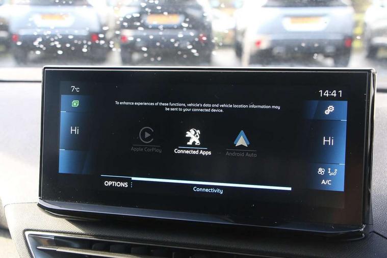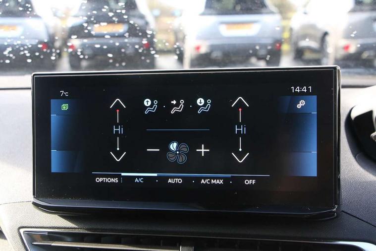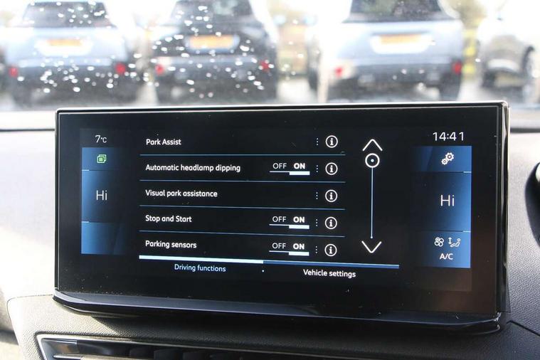3D connected navigation with 10" HD touchscreen, Bluetooth telephone facility, Drive modes select (Eco, normal and sport), Driving Time Warning (DAA1), Emergency services call system, Extended traffic sign recognition, Exterior temperature indicator with ice warning, Front parking sensors, Mirror screen with mirror link, apple carplay and android auto, Multi function trip computer, PEUGEOT i-Cockpit with 10" high definition capacitive touchscreen, Peugeot i-cockpit with compact multi-function sports steering wheel, PEUGEOT i-Cockpit with configurable 12.3" Head-up digital instrument panel, Rear parking aid, Speed limit recognition and recommendation, Voice recognition, Dynamic stability control and electronic anti-skid system, Stop/start function, 6 speakers radio with mp3 compatible, DAB Digital radio, USB socket, Aluminium longitudinal roof bars, Automatic hazard light activation upon heavy brake application, Automatic triggered rear windscreen wiper in reverse gear, Black rubber side window trim, Black with chrome detailed front wing trim, Body colour door handles, Body colour rear roof spoiler with stainless steel edging trim, Body protectors (bottom of front and rear bumpers + wheel arches + protection at bottom of doors) in black, Chrome frameless 'Classic' grille, Chrome rear bumper facia, Dark tinted rear side windows + tailgate window, Diamond Black door mirror shells, Door mirror mounted LED courtesy floor lighting, Eco LED headlights, Electric folding door mirrors with exterior courtesy LED lighting, Electric operated/heated door mirrors, Front and rear door and sill protectors with polished stainless steel insert, Front bumper lower trim in Silver, Front windscreen wiper with magic wash cleaning system, Gloss black B and C pillar and aerodynamic deflector trim, Gloss black front bumper air scoops, Gloss black rear cluster connecting strip, Gloss black windscreen trim, Headlights left on audible warning, Heated rear windscreen with integrated antenna, LED daytime running lights, LED front indicator, LED rear number plate lighting, LED side indicator lights integrated into door mirrors, LED third brake light, One touch electric front/rear windows with pinch protection, Rear LED Peugeot signature 'Claw Effect' lights, Rear side wing doors, Stainless steel roof arches, 1/3 to 2/3 split folding rear seats, 12V Sockets in dashboard, rear cabin and load area, 2 cupholders in front centre console, 2 cupholders in rear armrest, 2 x Rear reading spotlights, 2x Rear coat hooks, 3x Isofix child seat fittings in the front passenger and outer rear seats, 4 Grab handles retractable and damped, Blue ambient lighting for connecting zone, Blue ambient lighting to front door panels, Blue ambient lighting to headup instrument panel, Brumeo fabric trimmed door armrests, Centre front armrest with butterfly wing opening and illuminated storage compartment, Driver seat lumbar adjustment, Driver seat manual adjustment (longitudinal and back rest angle), Dual zone automatic climate control, Electric power steering with reach and rake adjustable steering column, Flocked glovebox interior, Foldable front passenger seat with picnic table, Footwell illumination, Front interior light with 2 reading spotlights and rear interior light with timer, Front passenger seat manual adjustment (longitudinal and back rest angle), Front seat back map pockets, Gear shift indicator, Height adjustable front seats, Illuminated glovebox, Individual left and right controls in boot for seat folding, Leather steering wheel with detail stitch, LED interior lighting in storage spaces and load area, LED roof interior lighting, Rear bench seat with central armrest and ski hatch, Rear centre console ventilation system, Roof lining - Salin light grey, Satin chrome dashboard trim, Satin chrome digital instrument panel and touchscreen trim, Satin chrome front door panel recess trim, Satin chrome interior door handles, Satin chrome scorpion's tail and toggle switch trim, Seatbelt not fastened audible and visual alert for front seats, Seatbelt unfastened on the move audible and visual alert for front and rear seats, Sunvisors with illuminated vanity mirrors, Two position boot floor, Safety plus pack with high beam assist - 3008, Visibility pack - 3008, 3x Rear three-point retractable seatbelts with force limiters in the outer rear seats, ABS (Anti-lock Braking System) with EBD (Electronic Brakeforce Distribution) and EBA (Emergency Braking Assistance), Adaptive driver and front passenger airbags with passenger airbag deactivation function, Driver and front passenger side airbags, Electric child locking functionality on rear windows and doors, Electric parking brake, Front and rear curtain airbags, Front optimised safety headrests and 3 x rear retractable headrests with height adjustable, Front three point retractable seatbelts with pre tensioners and force limiters, Front ventilated disc brakes and rear disc brakes, Hill start assist, Two tone horn, Automatic door locking when moving off, Electronic immobiliser, key operated exterior door lock from the left hand door, Perimetric and volumetric alarm with lift and tilt sensor, Peugeot Open and Go System, Remote control central locking with two plip keys, Brumeo fabric Dashboard, front and rear door panel finish, Puncture repair kit including compressor, sealant cartridge and towing eye,