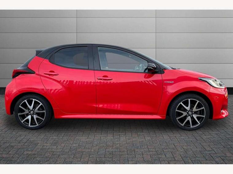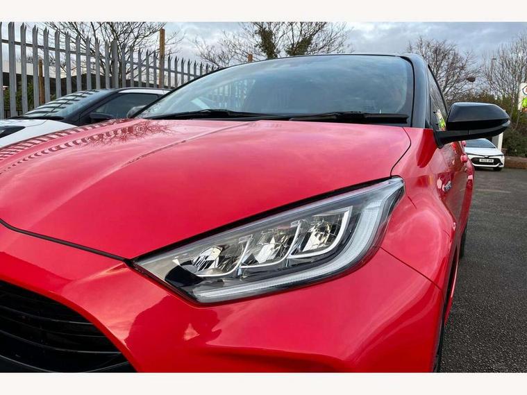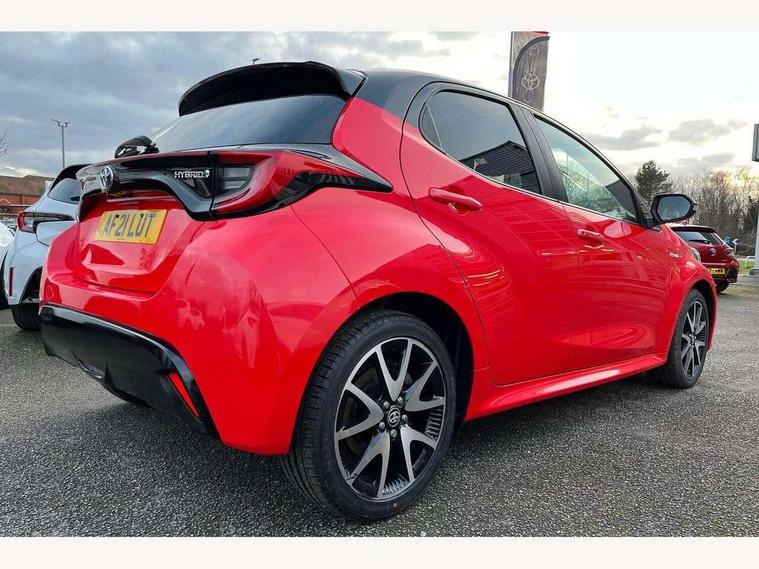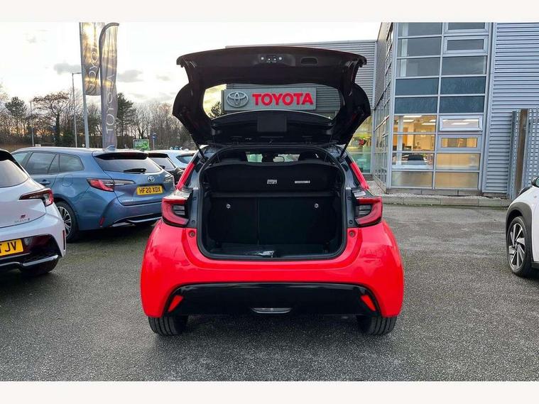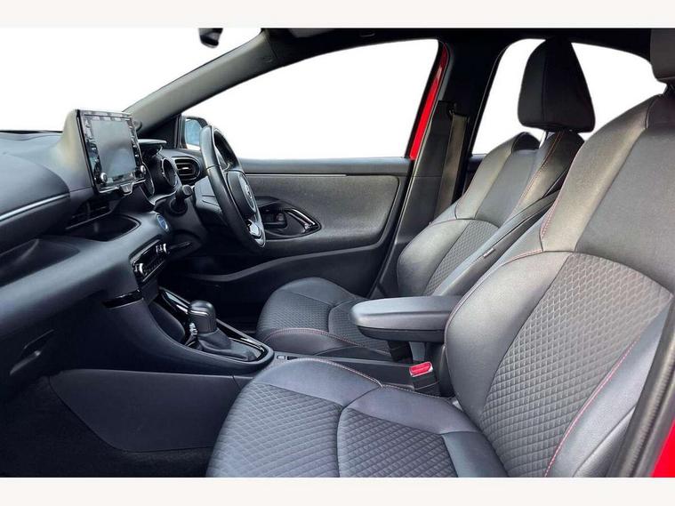 10" full colour head up display, Adaptive cruise control, Adjustable speed limit with speed warning, Blind spot monitoring, Bluetooth connectivity, Colour binocular inspired displays with digital speedometer, E-call, Electric power steering, Hybrid energy display, Multi information display switches on steering wheel, Reversing camera, Smartphone integration with Apple CarPlay and Android auto, Vehicle Stability Control (VSC), 8" Multimedia display touch screen, JBL Premium sound system with 8 speakers, Toyota Touch 2 with DAB, USB connection, Acoustic windscreen glass, Auto dimming rear view mirror, Auto windscreen wipers, Automatic headlights, Automatically retractable door mirrors, Black contrasting colour door mirrors, Electric adjustable heated door mirrors, Follow me home headlights, Front auto power windows with anti jam protection, Full LED rear lights, LED daytime running lights, LED front fog lights, LED Headlights, LED High mounted stop lamp, Painted front grille, Pearlescent bi-tone paint, Rear auto power windows with anti jam protection, Rear privacy glass, Rear spoiler, Shark fin antenna, Turning signal integrated indicators in door mirrors, 3 adjustable rear headrests, 3 spoke leather steering wheel, 60/40 split folding rear seat, Active headrests, Adjustable boot height, Ambient lighting, Coat hooks in rear grab handles, Cup holders (2 front & door), Data Communication Module (DCM) connected services, Dual zone automatic air conditioning, Fabric seat with partial synthetic leather upholstery, Front armrest, Front sport seats, Glovebox, Height adjustable driver's seat, Height adjustable passenger seat, Isofix seat fixing, Leather gearshift, Map pockets on the backs of the front seats, Pollen filter, Shopping bag hooks, Tilt/telescopic steering column, 3 point seatbelts on all rear seats, ABS+EBD+Brake assist, Electronic parking brake, Emergency brake light system (EBS), Front passenger airbag on/off switch, Front seatbelt reminder, Hill start assist control (HAC), Rear child proof door locks, Rear seat belt reminder, Supplemental Restraint System (SRS) 8 airbags: Driver & passenger's airbags, dual side curtain airbags, side impact airbags, front centre airbag, Toyota Safety Sense 2, Precollison + Night time Pedestrian & Cyclist Detection, Lane Trace Assist, Auto High Beam, Intelligent ACC & Road Sign Assist, Tyre pressure warning system, Alarm/immobiliser, Keyless smart entry with push button start, Remote powered central double locking doors, Piano black interior trim, Soft touch instrument panel, Space saver spare wheel,