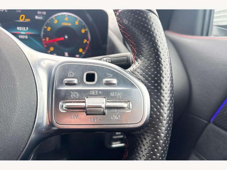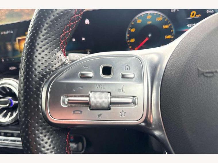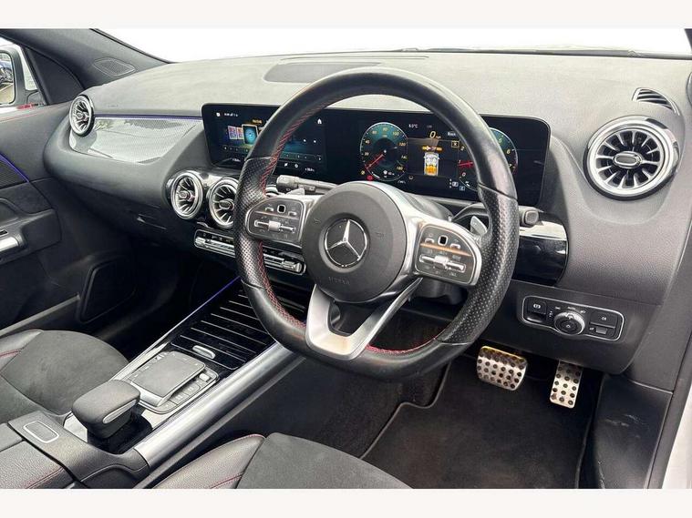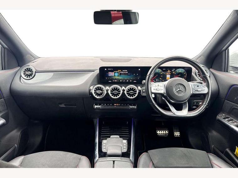 10.25 inch touchscreen central media display, 10.25" Digital instrument cluster display screen, Active lane keeping assist, Attention assist, Cruise control + speed limiter, Direct steering, DYNAMIC SELECT with a choice of driving modes (ECO, Comfort, Sport and Individual), ECO start/stop function, Fluid level warning indicator for fuel, oil, coolant and washer fluid, Hard-disk navigation, Hey Mercedes Voice activation, Lamp failure indicator, Mercedes me connect including emergency call system, accident recovery, breakdown and maintenance management, Mercedes me remote services, Multi function trip computer, Outside temperature gauge, Owners manual and service booklet in English, Pre-installation of private car share, Radio aerial integrated into front and rear windshields, Service indicator (ASSYST), Smartphone integration with Apple CarPlay and Android auto, Speed limit assist, Status display for rear seat belts in instrument cluster, Lowered comfort suspension, Rear axle multi-link, 2 USB ports (type C) in rear stowage compartment and one in front of center console, Bluetooth connectivity including audio streaming, DAB Digital radio, MBUX multimedia system, Media interface, Mercedes-Benz (225w) sound system with 10 speakers, Adaptive brake lights, Aerial for GPS, Aluminium roof rails, AMG front and rear apron, AMG specific/dual flow exhaust pipes in chrome (non-functional), Automatic headlamp activation, Beltline strips and weather strip in chrome, Black grained claddings with chrome parts, Body colour bumpers, Body colour door mirrors, Body coloured door handles with chrome insert for keyless entry, Car wash function, Dark privacy glass from B-pillar backwards, Electric front windows, Electric rear windows, Electrically adjustable and heated door mirrors with integrated LED indicators, Heated glass rear windscreen + timer control, Heated windscreen wash system, Interior mirror with black reading lamps and frameless, LED high performance headlamps with integrated LED daytime running lights, LED tail lights in two piece design, LED third brake light, Matt titanium grey front and rear apron trim, Pre-installation for trailer coupling, Rain sensor windscreen wipers, Rear fog lights, Rear side wing doors, Roof spoiler, Single lamella raditor grille with chrome dotted diamond grille and inlay, 12V power socket in centre console, 3 seat bench in 2nd row, 3 spoke multifunction sports steering wheel in nappa leather with flattened bottom and perforated grip area, 40:20:40 split folding rear seat backrests, Adjustable head restraints, Air conditioning - Two zone thermotronic luxury automatic climate control with display, Ambient lighting in front headrests, AMG floor mats with AMG lettering in front, Artico man-made leather/Microfibre Dinamica upholstery with red contrast stitching, Auto Mercedes-Benz child seat recognition sensor, Black roof lining, Brushed door pulls in silver chrome, Courtesy light in boot, Front centre armrest with stowage, Galvanished gear shift paddles on steering wheel, Heated front seats, illuminated door sills with changeable cover, Illuminated glovebox, Interior lighting - 64 colour Ambient lighting, Leather trimmed gearknob, Luggage net on driver/front passenger seat backrest, Manually height and reach adjustable steering column, Multi-gesture touchpad control on center console, Single front passenger seat, Sports pedals in brushed stainless steel with black rubber studs, Sports seats, Stowage compartment in centre console, Stowage compartment with retractable cover, Sunvisors with illuminated vanity mirrors, Twin front cup holders, Two outer rear seat isofix and top tether child seat fixing points, AMG body styling pack - GLA, Comfort seat pack - GLA Class, Interior lighting with light and sight pack - GLA, Load compartment pack - GLA, Mirror pack - GLA Class, Parking pack - GLA, 3 rear 3 point seatbelts, ABS with Brake Assist, Active bonnet pedestrain safety measure which detects an impact and raises bonnet by 65mm, Active brake assist includes forward collision warning system with autonomous braking, Adaptive brake assist with hold function and hill start assist, Bonnet with power domes, Brake pad wear warning indicator, Childproof locks manually operated for rear doors and electrically operated for rear power windows, Crash responsive emergency lighting, Driver and passenger head and side airbags, Drivers knee airbag, Dual stage driver/passenger airbags, Electronic parking brake, ESP curve dynamic assist, ESP with ASR, Front and rear seatbelt reminder, Front brake callipers with Mercedes Benz logo lettering on front, Front brake discs internally ventilated and perforated, Front passenger seat occupancy sensor, Tyre pressure monitoring system, Warning triangle and first aid kit, Window airbags, Alarm system with immobiliser and interior protection -Thatcham category 1, Keyless Go starting function, Remote central locking and crash sensor with emergency opening function, Urban guard vehicle protection, Vehicle key with decorative surround in chrome, Carbon structure trim, Chrome air vent surrounds, 19" AMG 5 twin spoke light alloy wheels aerodynamically optimised painted in tantalite grey with a high sheen finish, Summer tyres, Tirefit tyre sealant kit,