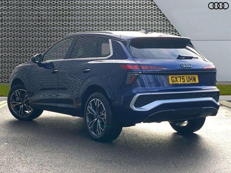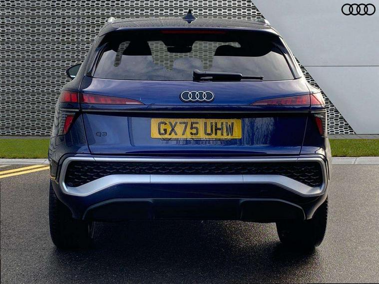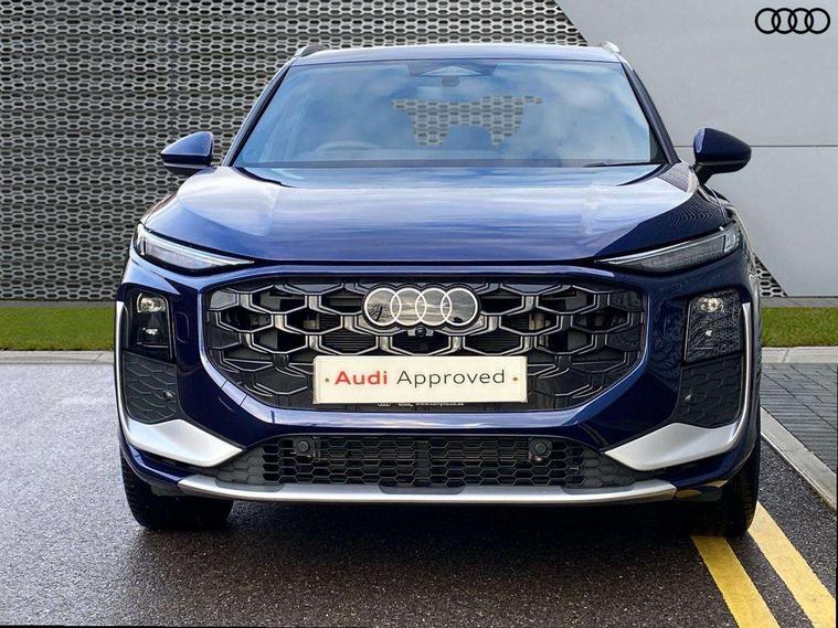Adaptive cruise control, Audi connect emergency call and service, Audi connect remote and controls, Audi drive select (Balanced/Individual, effeciency, comfort and dynamic), Audi virtual cockpit plus - 11.9" display, Bluetooth interface, Camera based traffic sign recognition, Driver attention and fatigue monitor with driver monitoring, Front cross traffic assist, Lane departure warning with emergency assist, Panoramic curved display with 12.8" MMI navigation plus and MMI touch, Park assist plus with parking system and 360 display, Phonebox light with wireless charging, Reversing camera, Smartphone interface includes wireless Apple carplay/Android Auto, Start/stop system, Swerve assist and turn assist, Traffic sign based speed limiter, Voice control system with natural language interaction, 3 pin 10 amp domestic charging cable, Charging socket CCS type 2, Comfort suspension, Compact charging system, Industrial connector CEE 32A, 230V, Mode 3 charging cable for public charging, 22 KW (AC), Petrol Particulate Filter, 2 USB-C ports with charge and data functions, Audi sound system with 10 loudspeakers, subwoofer, 8 channel amplifier with 260 watts, DAB digital radio module, Acoustic glass for front door windows, Acoustic windscreen, Aluminium roof rails, Aluminium window trim, Audi Q3 lettering on the B-pillars, Auto dimming door mirrors, Auto dimming rear view mirror, Body colour door mirrors, Contrasting finish in volcano grey, Electrically folding, adjustable and heated door mirrors with integrated LED side indicators and kerb view function for passenger side, Full paint finish, Illuminated door sills with aluminium inserts at the front with S logo, LED daytime running lights, LED headlights plus with LED rear lights pro with continous light strip, illuminated Audi rings, rear, LED third brake light, Loading sill protector in stainless steel, Main beam assist, Privacy glass - dark tinted rear window, rear door and side windows, Projection light in the exterior mirrors - Projects a graphic element onto the ground, Q3 badging on the rear, Rain and light sensors, Rear side wing doors, Rear window, rear door windows and rear side windows in clear glass, Rear wiper, Sports bumpers, 3 seat bench in 2nd row, 3 spoke flat top and bottomed leather multi function sport steering wheel with gear shift paddles and "S" badging, 3-zone deluxe automatic air conditioning, 4 way lumbar support for the front seats - electric with horizontal and vertical adjustment in four directions, Black cloth headlining, Convenience auxiliary air conditioning, Front and rear floor mats, Front and rear headrests, Front centre armrest, Heated front seats, Height and reach adjustable steering wheel, Interior storage compartment, Leather/artificial leather upholstery combination with S emblem + front sports seats, Luggage compartment lid, electrically opening and closing, Manual front seats with height adjustment, Rear seat bench plus with split folded 40:20:40, Single front passenger seat, Stainless steel pedals, Steering wheel operating unit, gloss black, Storage compartment in front centre console, Ambient lighting package pro - Q3, S line exterior styling pack - Q3, 3x3 point rear seatbelts, Acoustic vehicle alerting system, Convenience key with safelock, Driver and front passenger airbag with passenger airbag deactivation, Electromechanical parking brake, Electronic stabilisation control including ABS, ASR and EDL, First aid kit with warning triangle and high visibility vests, Front emergency brake assist, Hill hold assist, i - Size child seat mounting on the front passenger side and i - Size and top tether on the outer rear seats, Power operated child locks, Seatbelt monitoring, Three point automatic belts with belt tensioner and height adjustment, Tyre pressure loss indicator, Anti theft wheel bolts, Remote central locking, Thatcham approved category 1 anti theft alarm, Dark aluminium divergence inlay, Interior elements in dinamica microfibre, Interior trims in aluminium look, Tool kit and Jack, Tyre repair kit,