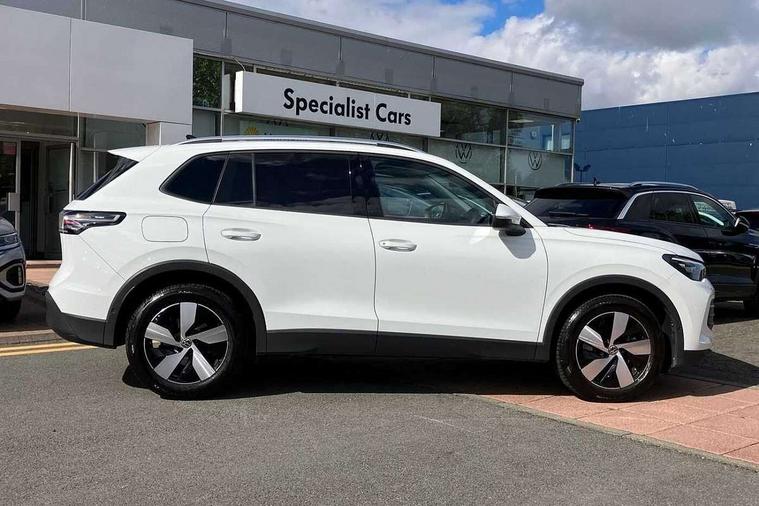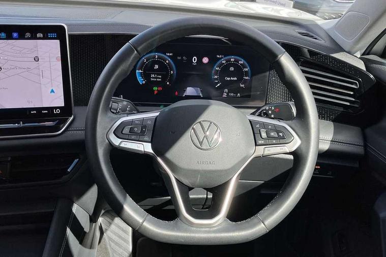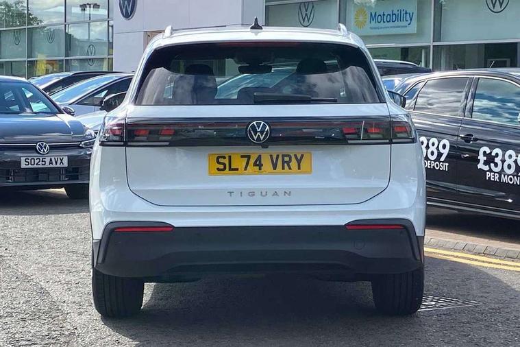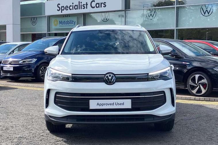 Adaptive cruise control (ACC), Advanced driver attention and drowsiness monitor, Bluetooth mobile phone interface, Car2X technology, Digital Cockpit Pro - 10.25" high resolution dash display screen with customisable menus and information, Dynamic road sign display, E-Sim card for online connectivity, eCall emergency call service, Front Assist - Autonomous emergency braking with pedestrian and cyclist monitoring, Lane change system, Side assist, Rear traffic alert and Exit warning system, Lane keeping system Lane Assist, Multifunction front facing camera, Oncoming vehicle braking when turning including swerve support, Park assistance plus with front and rear parking sensors, Power assisted steering with speed sensitive, Start/stop system with regenerative braking, Warning signal and warning light for front and rear seatbelts not fastened, Wireless App-Connect, Front wheel drive, Digital radio reception (DAB), Diversity antenna for FM reception, Ambient lighting with logo projection, Auto dimming interior rear view mirror, Automatic headlight control system, Body coloured bumpers and air intake with chrome trim, Body coloured door handles, Body-coloured exterior mirror housings, Coming/leaving home lighting function, Heat insulating glass in side and rear windows, Heat insulating windshield, Heated rear window, High level 3rd brake light, Illuminated door handle recesses, Illuminated lightline between headlamps, Rain sensor windscreen wipers, Rear fog light on one side, reversing light on both sides, Rear side wing doors, Rear wiper, 12V outlet in center console rear and in luggage compartment, 12V socket in centre console, 3 bench rear seats in 2nd row, Air care climatronic 3 zone air conditioning system with rear air conditioning control panel, Carpet mats, front and rear, Centre console with illuminated storage compartment with sliding cover and two drinks holders, Ceramique headlining, Door and side trim panel in foam film and woven fabric, Front centre armrest, ISOFIX anchors for child seats on outer rear seats and front passenger seat. Compatible with i-Size, Mechanical rear seat release, Power adjustable lumbar support in front, Rear bench seat, split folding, longitudinally movable and folding with load-through hatch and centre armrest, Safety optimised front head restraints, Single front passenger seat, Sun visors with illuminated vanity mirrors, Three rear head restraints, Variable luggage compartment floor, Comfort package with park assist pro - Tiguan, Design package - Tiguan, 3 point seat belt for centre rear seats, 3 Point seat belts in front with pretensioners, 3 point seatbelts in outer rear with ECE label, Driver and front passenger airbag with front passenger airbag deactivation, Electronic parking brake with auto hold, Front and rear curtain airbags, Front and rear side airbags, Front centre airbag, Front disc brakes, Manual child proof rear door locks, Rear disc brakes, Two tone horn, Warning triangle, Anti theft wheel bolts, Soul instrument panel, Airstop tyres,