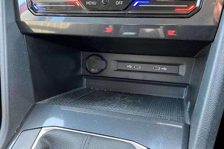 Adaptive cruise control radar sensor controlled distance monitoring system, Advanced driver attention and drowsiness monitor, App-Connect, Digital cockpit pro, Dynamic road sign display, eCall emergency call service, Electric boot lid, Lane keeping system Lane Assist, Mobile phone interface comfort with inductive charging feature, Multifunction front facing camera, Power assisted speed sensitive steering, Speedo and rev counter, electronic odometer, trip, service interval display and exterior temperature gauge, Front wheel drive, Start-stop system with battery regeneration (recuperation - energy recovery during braking), 2 USB-C ports in the front, 1 USB-C charging socket on the center console in the rear, 8 speakers, DAB Digital radio, Diversity antenna for FM reception, Auto dimming interior rear view mirror, Automatic headlight control system, Body coloured bumpers, Chrome mouldings on side window, Coming/leaving home lighting function, Exterior badge deletion, Exterior mirror housings painted in silver, Headlight range control, LED headlamps, LED separate daytime running light, Privacy glass, Rain sensor, Rear combination lamps, Rear fog light, Rear side wing doors, Rear wiper, Silver roof rails, Third brake light, 12-volt outlet in centre console rear and luggage compartment, 12V socket in centre console, 3 head restraints in rear, 3 individual folding 2nd row seats, 3rd row 2 individual seats, Air Care Climatronic 3 zone automatic climate control with enhanced air filter and controls in the rear, Driver and front passenger seat height adjustment, Foldable front passenger seat backrest, Front + rear carpet mats, Front centre armrest, Front footwell illumination, ISOFIX anchorage points for mounting 2 child seats on rear seats and i-Size child seats, Leather gearshift handle, LED interior light with switch off delay/dimmer and 2 front/rear LED reading lights, Multifunction steering wheel, Sun visors with illuminated vanity mirrors, 3 point seat belt for centre rear seat, 3 rear three point seatbelts, ABS+EBD+Brake assist, Driver and front passenger safety-optimised head restraints, Driver's and front passenger's airbag with front passenger's airbag deactivation switch, Electronic parking brake, Electronic Stability Control (ESC) inc EDL (Electronic Differential Lock) and ASR (Traction Control), Height adjustable front 3 point seatbelts + pretensioners, Manual rear child locks, Pedestrian monitoring, Rear disc brakes, Two tone horn, Warning buzzer for seatbelts if unfastened, Anti theft alarm system with interior monitoring, backup horn and towing protection, Anti-theft wheel bolts, Remote central locking with 2 remote folding keys, Chequered flag tinanium decorative inserts,
