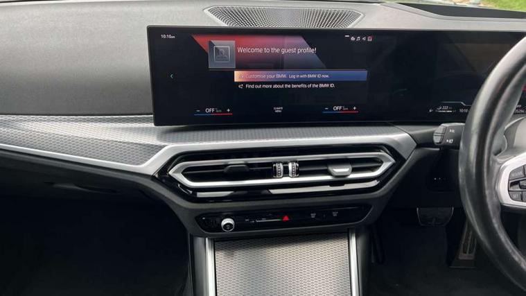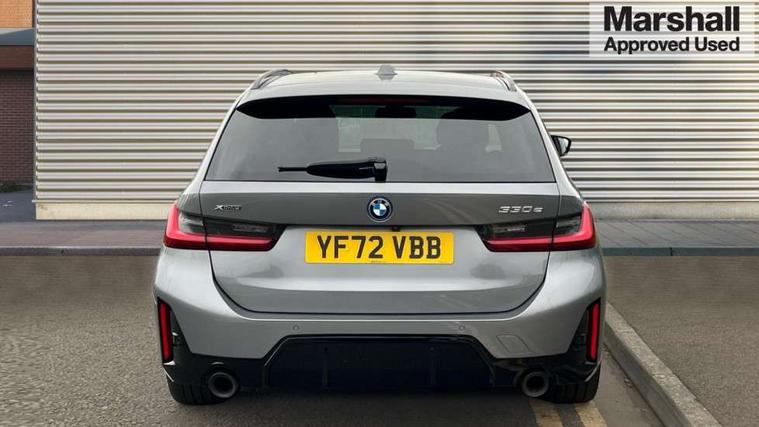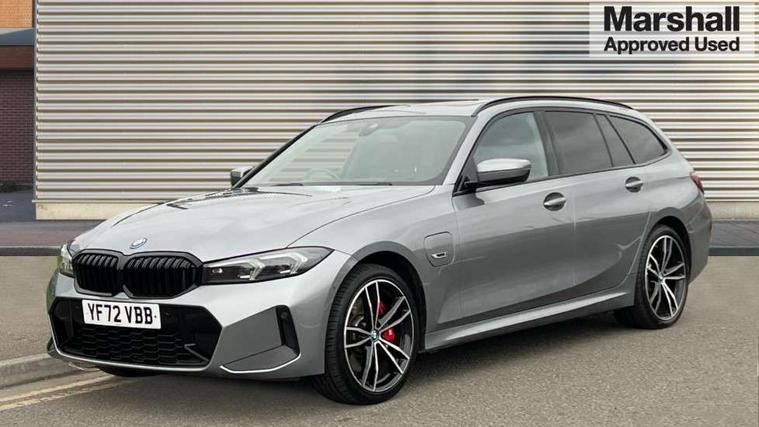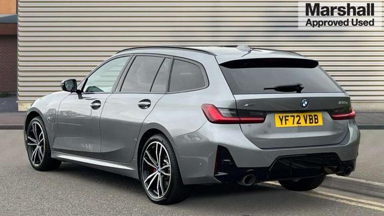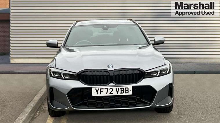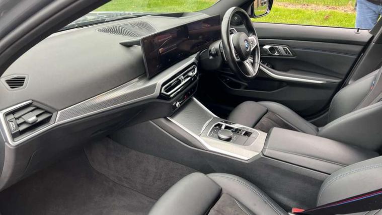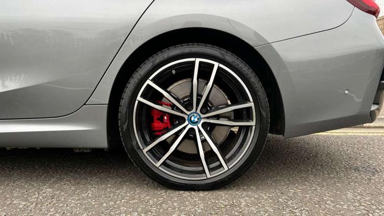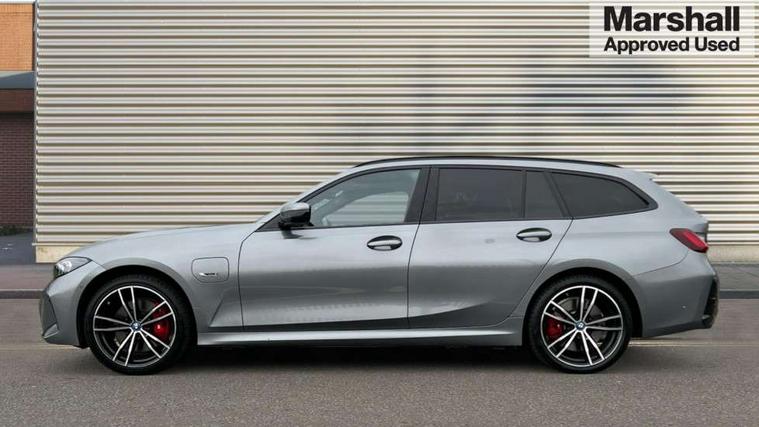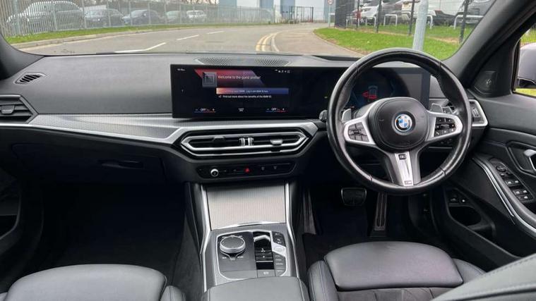 Active guard plus, Attentiveness assist, Automatic Start/stop button, BMW iDrive, BMW Teleservices, Condition based service, ConnectedDrive Services, Driving experience switch, Live cockpit plus with Navigation + 12.3" instrument display + 14.9" display, Intelligent voice assist, 2 USB, 4G LTE connect, Oil sensor for level and grade, PAS, Preparation for driver assistance, Shifting point display, Smartphone integration, Charging cable - Mode 2, Double joint spring strut front axle, Fuel tank breather system, Sport automatic transmission with steering-wheel mounted gearshift paddles and launch control, Standard suspension, DAB tuner, "Electrified by i" exterior badging on charging flap, 3rd brake light, Acoustic glazing, Automatic headlight beam throw control with load dependent regulating reaction, dynamic compensation of braking dive and acceleration squat, BMW emblem, engine compartment lid and tailgate, Body colour roof fin, Door sill strips, Electric windows - front and rear, with open/close fingertip control, anti-trap facility and comfort closing, Follow me home headlight function, Front and rear bumper system with replaceable deformation elements, Front apron plastic in body colour, Fuel filler flap - right rear in body colour, Heated washer jets, Illuminated bow type door handles in body colour drivers side with door lock, Interior rear view electrochromatic mirror with automatic anti dazzle function, LED headlights with LED daytime running lights and LED turn indicator, LED rear lights, Licence plate panel integrated into front bumper and tailgate, Matt black B-pillar finsher, Matt black window recess cover, Model designation on right side of tailgate, One piece front bumper cover including towing eye cover in body colour, Rain sensor with automatic headlight activation, Rear side wing doors, Rear wiper, Reversing lights, Side frame decorative moulding black matt, Visible exhaust tailpipe finisher, Welcome lights in interior and door handle area, 12V power socket in front storage compartment, 2 front cupholder in centre console with clamping elements and matt black inlay, 3 seat bench in 2nd row, 3 zone automatic air conditioning, 40:20:40 split folding rear seat with loading system, Anthracite headlining, Armrest integrated in front and rear door trim + front centre console armrest, Battery in luggage compartment, BMW ID, Cruise control operation in steering wheel, Driver backrest width adjustment, Folding rear centre armrest with 2 cupholders, Front and rear door exit lighting (left / right), Front and rear footwell lighting, Front and rear headrests, Front and rear reading lights, Front and rear velour floor mats, Front sport seats, Heated front seats, Height adjustable mechanically and infinitely variable steering column, Illuminated armrest storage compartment, Illuminated glove compartment, Illuminated luggage compartment, Lashing eyelets in luggage compartment, LED ambient lighting with welcome carpet light, M Sport multifunction leather steering wheel, Make-up mirror lights, Single front passenger seat, Standard seat for driver and passenger with manual adjustment, Sunvisors with vanity mirrors and ticket pocket, Toolkit located in luggage compartment, Connected pack professional - 3 Series Saloon/Touring, Interior and exterior mirror pack - 3 Series Touring/Saloon, M Aerodynamics package - 3 Series Saloon/Touring, M sport exterior styling pack - 3 Series Saloon/Touring, Storage compartment pack - 3 Series Saloon/Touring, 3x3 point rear seatbelts, BMW emergency call, Child locks on rear doors, Crash sensor activating of airbags, Unlocking doors, hazard warning lights, fuel cut off, interior lighting+activation of safety battery terminal clamp, Driver and front passenger with seat occupancy detection for driver's and passenger side, Driver and passenger side airbags, body protection at side and airbags deploy from seat backrests, Dynamic brake control, Dynamic stability control + (DSC+) - Anti-lock Braking System (ABS) with brake assist and cornering brake control + Automatic Stability Control (ASC), Dynamic Traction Control - DTC, Electromechanical parking brake including automatic hold function and automatic release of the parking brake when pulling away, Electronic differential lock control (EDLC), Head airbags in 1st and 2nd row, head protection at side, curtain airbags open from headliner above 1st and 2nd row, Plastic fuel tank, Side impact protection, Tyre pressure monitoring with three level warning strategy, Ventilated front and rear disc brakes, Warning triangle and first aid kit, Alarm system, Centre lock switch, Closing system with central locking, Electronic vehicle immobiliser,