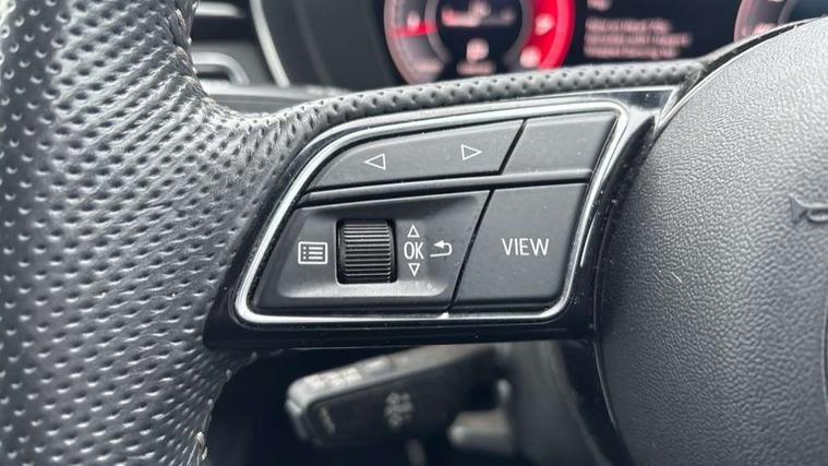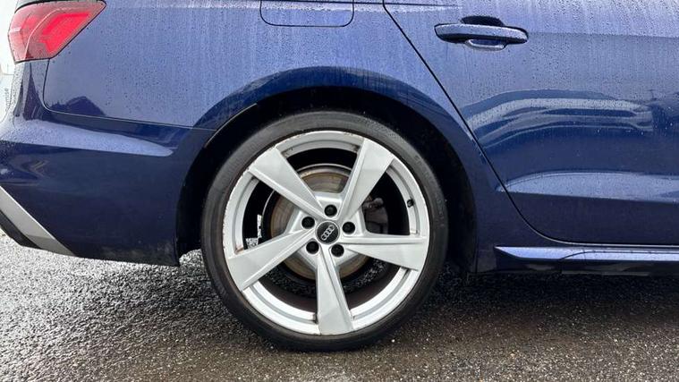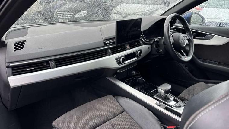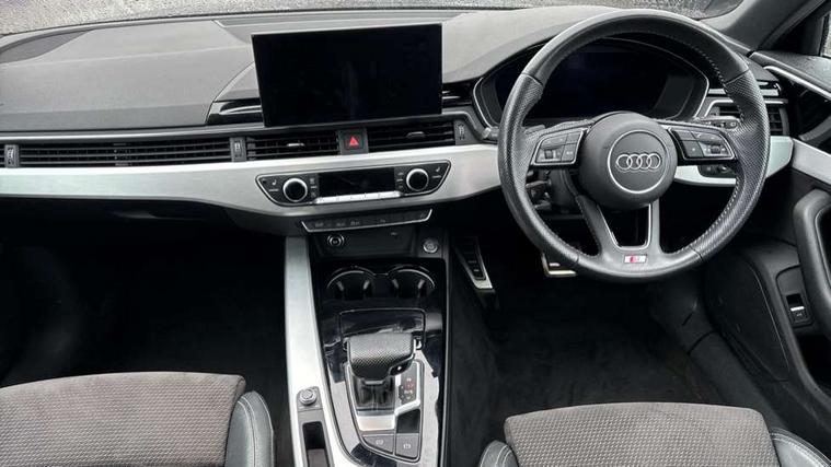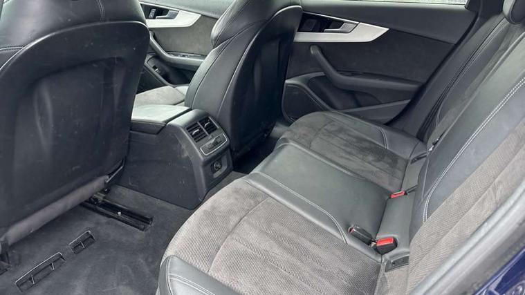 Audi connect safety and service (e-call), Audi drive select, Audi parking system plus with front and rear sensors, Audi smartphone interface, Audi virtual cockpit, Automatic start-stop system with coasting functionality and efficiency programme, Bluetooth interface, Electromechanical power steering, MMI Navigation plus with MMI touch includes 10.1" high resolution colour MMI display, 3D map, Power operated tailgate, Rear view camera, Voice control system, 54 litre fuel tank, Sports suspension lowered by 23mm, 2 USB charging ports, 8 passive loudspeakers, DAB digital radio reception, Aluminium roof rails, Auto dimming rear view mirror, Body colour door handles, Body colour front spoiler lip, Body colour side sill trim, Body coloured door mirrors, Electrically folding auto dimming/adjustable/heated door mirrors with LED side indicators and kerb view function for passenger side, Grained matt black side air inlets with matt aluminium silver inlay, High beam assistant, Honeycomb structure radiator grille in grained matt black, LED headlights with LED rear lights + dynamic rear indicators + headlight adjustment and high beam, turning light + LED daytime running lights, Matt aluminium silver tailpipe trim, New design rear diffuser, Privacy glass, Rain and light sensors, S Line badges on the front wings, S line front and rear bumpers with side skirts, S Line rear diffuser in matt titanium black with trim strip in matt aluminium silver, S Line roof edge spoiler, Windscreen with acoustic glazing, 4 way electric lumbar support for driver and front passenger, 40/20/40 split folding 3 rear seat bench in 3 parts with rear centre armrest, Black cloth headlining, Black perforated leather gearknob, Contrast stitching on seats, steering wheel and gear lever gaiter, Deluxe 3 zone electronic climate control, Door sill trims with aluminium inlay, Electric load area cover, Front and rear head restraints, Front centre armrest, Heated front seats, Illuminated door sill trims with S logo, ISOFIX child seat mounting and top tether, Manual seat adjustment, Stainless steel pedals and foot rest, Tool kit, High gloss package - A4, LED Interior light pack - A4/S4, 3 rear seatbelts, 6 airbags - Driver, front passenger, curtain and side windows, Electronic Stabilisation Control (ESC) including ABS, ASR and EDL, Hill hold assist, Multi collision brake assist, Pop-up bonnet for pedestrian protection, Pre sense city, Seatbelt monitoring, Warning triangle and first aid kit, Anti theft alarm, Anti theft wheel bolts, Keyless Go, Matt brushed aluminium inlays, Tyre repair kit,
