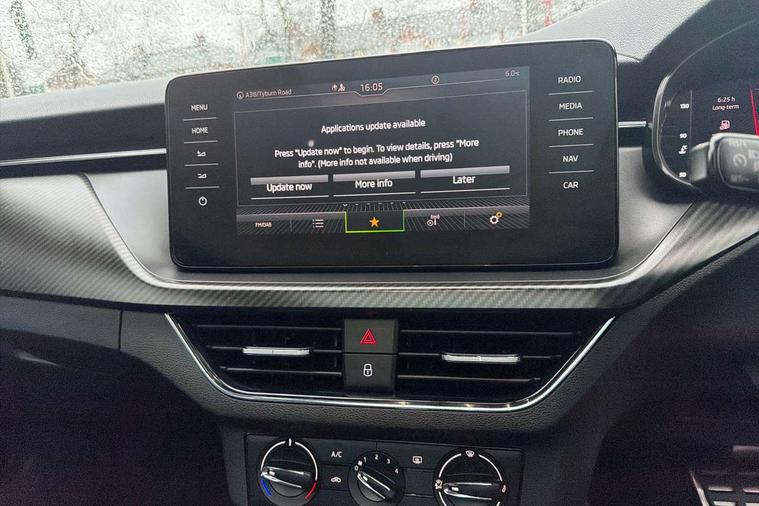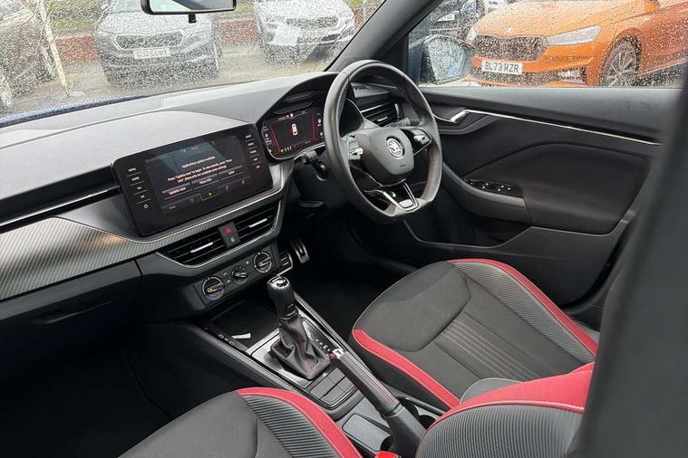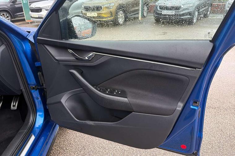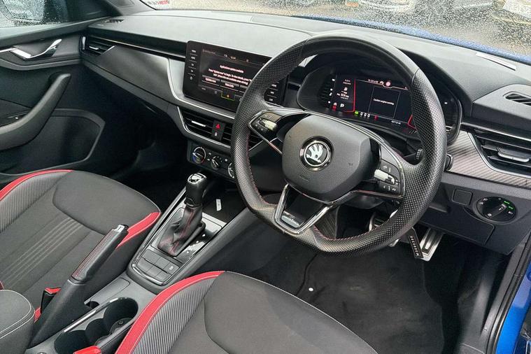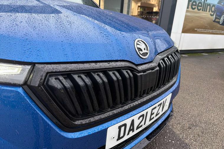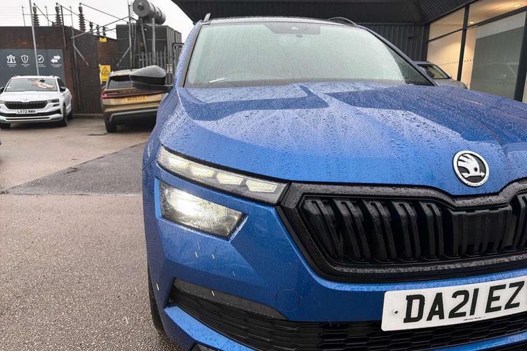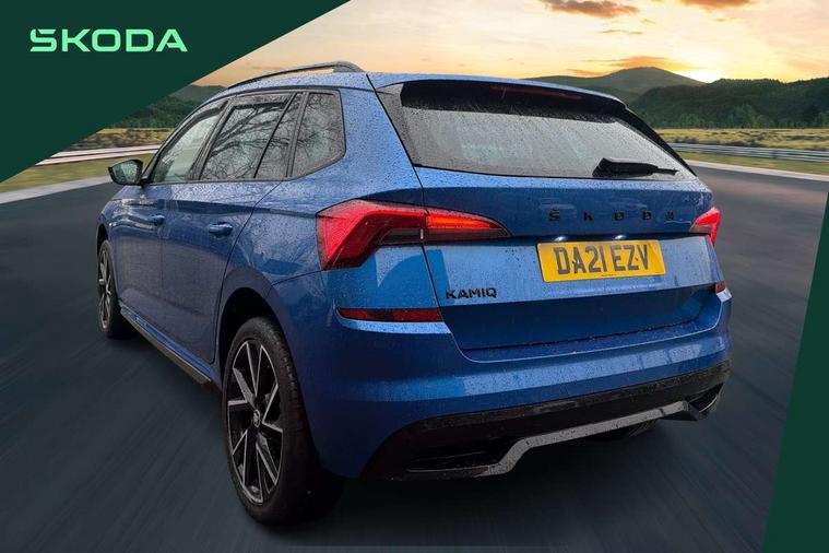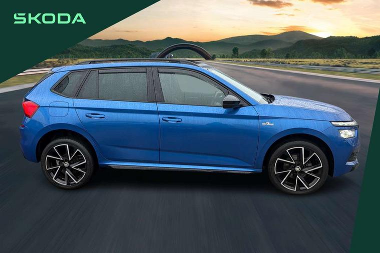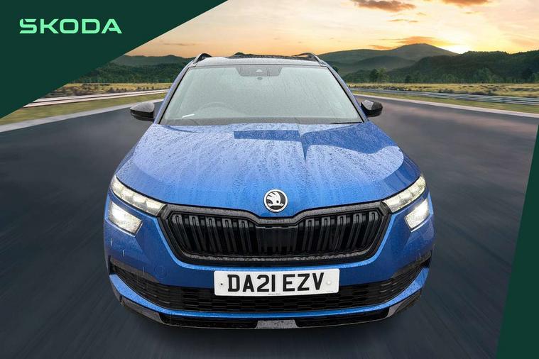 Amundsen satellite navigation with 9.2" touchscreen display, voice control, virtual cockpit and web radio, Bluetooth system, E-call, Front assist system, Lane assist, PAS, Service indicator, Speed limiter, Trip computer, Virtual cockpit with 10.25" display, Wireless SmartLink for apple car play, android auto and mirrorlink, 2 USB - C ports with 1x adaptor cable, Auxiliary input socket, DAB Digital radio, Auto dimming rear view mirror, Black door mirrors, Black radiator grille, Black rear diffuser, Body colour bumpers, Body colour roof spoiler, Boot lettering in black, Chrome grille surround, Electrically adjustable and heated door mirrors, Front and rear electric windows, Front sport bumper, Full LED headlights with adaptive front light system, dynamic indicators, cornering function and fog lights, Headlight range control, Heated rear window, High functionality rear led lights with dynamic indicators, KAMIQ Door sills, Monte carlo plaque, Panoramic sunroof with black roof rails, Privacy glass, Rear fog lights, Rear wiper, 12V Accessory socket in centre console, Aluminium pedals, Black ceiling for black/beige interior, Chrome inner door handles, Cloth upholstery, Front gesture control, Front head restraints, Glove compartment with illumination, Height adjustable passenger seat, Ice scraper, Isofix child seat fittings on outer rear seats, ISOFIX on front passenger seat, Leather gear lever, Manual lumbar support for front seats, Rake/reach adjustable steering wheel, Reading lights for driver and front passenger, Sports seats, Sun visor with make up mirror for front passenger, Textile floor mats, Third rear headrest, Top tether for front passenger seat, Umbrella in driver's door, 3x3 point rear seatbelts, Airbags - driver and front passenger, ESP, Front passenger airbag deactivation switch, Front side airbags with curtain airbags, Hill hold control, Manual parking brake, One tone horn, Rear disc brakes, Seatbelt reminder for driver an co-driver, Traction control, Tyre pressure monitor, Alarm with interior monitoring, back up horn and tilt sensor with safe function and towing protection, Anti-theft wheel bolts, Immobiliser, Remote central locking with SAFE system, Chrome air vent surrounds, 18" Vega alloy wheels in black,