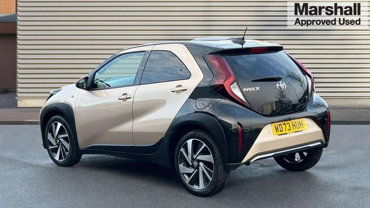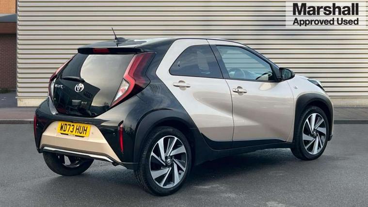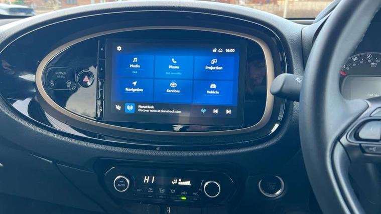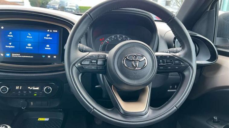 4.2" TFT colour screen, Adjustable speed limiter, Analogue speedometer, Bluetooth connectivity, Digital tachograph, Driver attention alert system, eCall emergency call system, Electric power steering, Front and rear parking sensors with auto brake, Intersection turn assist, Key reminder warning, Noise reduction kit, Pre collision system with emergency steering assist, Remote boot door release on key, Reversing camera with static guide lines, Smart entry and push button start, Smart phone integration with Apple car play/Android Auto, Speed limit display, Start and stop, Wireless charger, Vehicle Stability Control (VSC), 10.5" HD multimedia display touch screen with Toyota smart connect, 4 speakers, DAB digital audio broadcast, USB connector, Auto headlights, Auto wipers, Automatic headlights cut-off, Automatic high beam On/Off switch, Bicycle towing hook, Black contrast roof, Black fog light surrounds, Black side protection mouldings, Black wheel arch mouldings, Body colour door handles, Body coloured front bumper, Boot door scuff plate, Eclipse black rear bumper, Electric heated door mirrors, Follow me home headlights, Front and rear underruns in silver, Front fog lights, Front power windows, Gloss black door mirrors, Gloss black upper front grille, Headlight cut-off reminder, LED daytime running lights guide, LED front light guide, LED High mounted stop lamp, LED projector headlights, Manual day/night rear view mirror, Manual headlight levelling, Pagoda roof, Power adjustable door mirrors, Power back door, Privacy glass, Rain sensor, Rear combination lights LED bulb type, Rear side wing doors, Rear windscreen defogger, Rear windscreen wiper, Remote hazard lights system, Short antenna, Variable intermittent windscreen wipers, 12v power outlet - front, 2 seat bench in 2nd row, 3 spoke leather steering wheel, 50/50 split folding rear seat, Adhesive roof headlining, Adjustable speed limiter switch on steering wheel, Audio and telephone switches on steering wheel, Auto air conditioning, Black roof lining, Body colour satin anodised insert on steering wheel, Boot light, Centre room light, Chrome interior door handles, Chrome surround on air conditioning buttons, Clean air filter, Console box storage, Floor mats, Front and rear cup holders, Front head rest deco art, Front head restraints, Height adjustable driver seat, Intelligent adaptive cruise control switch on steering wheel, ISOFIX child restraint system on rear seats, Lane departure alert switch on steering wheel, Leather gearshift knob, Light blue ambient lighting in centre console, Manual tilt steering wheel, Manually reclining and sliding driver seat, Manually reclining and sliding front passenger seat, Multimedia switches on steering wheel, Partial synthetic leather upholstery, Pollen filter, Rear door pockets, Rear head restraints, Satin silver insert on gear shift knob, Single compartment glovebox with lights, Single front passenger seat, Soft tonneau cover, Sun visors with mirror on driver and passenger side, Voice recognition switch on steering wheel, Toyota safety sense pack - Aygo X, Anti lock braking system + Electronic brake force distribution, Child safety door lock, Emergency brake light signal (EBS), Hill start assist control (HAC), Passenger airbag on/off switch, Seat belt reminder for front and rear seats, Supplement restraints system (SRS) - 6 airbags, Traction control, Tyre pressure warning system, Immobiliser, Remote power door locks, Black wheel centre caps, Tyre repair kit,