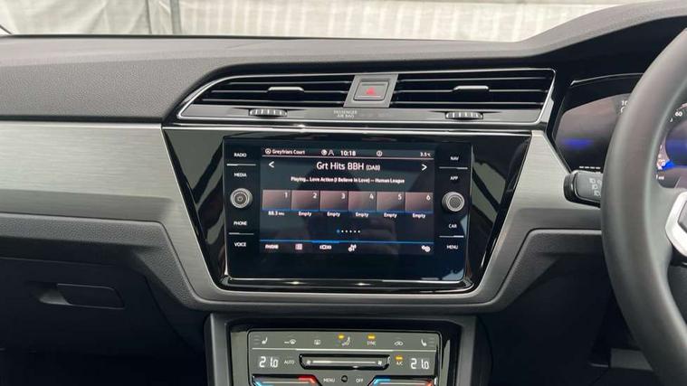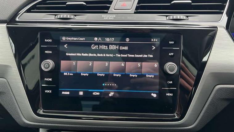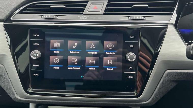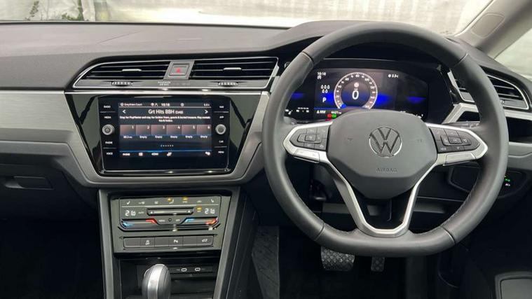 Adaptive cruise control, Audible lights on warning, Discover media navigation touchscreen navigation/radio system with streaming and internet, Driver alert system, Driver profile selection, Dynamic road sign display, Electric tailgate, Electronic odometer, Emergency services call system, Extended, crash-active and proactive Pedestrian and cyclist monitoring, External temperature gauge, Front parking sensors, Lane change system side assist and rear traffic alert, Lane keep assist, Misfuelling protection device, Mobile pairing with SMS function, Mobile phone interface with inductive charging, Rear view camera displayed via vehicles audio system display, Rev counter with fuel gauge, Side scan, Speed limiter, Speed sensitive power steering, Stop/start system, Think blue trainer driver tips and journey analysis, Trip and service interval display, We connect' and 'We connect plus' functionality, Petrol Particulate Filter, Rear stabiliser bar, XDS electronic differential lock, 4x20 watt output, 8 Speakers, Audio Connectivity System, DAB Digital radio, External USB-C data socket with increased charging performance - 2 USB sockets 45W, MP3/WMA compatability, SD card slot, Title and cover art display, USB connection, Aerial integrated into side window, Auto dimming door mirrors, on driver side, surround lighting and front passenger side mirror lowering function, Auto dimming rear view mirror, Automatic coming/leaving home lighting function, Body colour bumpers, Body colour door handles, Body colour door mirrors with integral indicators, Door mirrors with memory function, Dusk sensor + auto driving lights, Electric folding door mirrors, Electric heated + adjustable door mirrors, Electric, glass sliding/tilting panoramic sunroof including integrated roller blind and LED lighting around aperture, Front and rear electric windows, Fully galvanised body, Gloss black finish B pillar, Green tinted heat insulating glass, High level third brake light, Rain sensor, Rear fog lights, Rear side wing doors, Rear tinted glass from B-pillar backwards approx 65% tinted, Rear wash/wipe with intermittent wipe setting, Removable engine badge, Silver roof rails, Tailgate wiper- reverse gear activation, Twin chrome exhaust tailpipes, Volkswagen roundel, Windscreen wipers intermittent wipe, 12V power point for Row 2, 12V socket in luggage compartment, 2 individual fold flat 3rd row seats, 2 three point seatbelts in 3rd row, 2nd row centre armrest, 2nd row centre seat converts into table, 3 single slide/fold/removable 2nd row seats, 3 spoke steering wheel, 3x3 point seatbelts on 2nd row with height adjust on outer seats, 4 boot load lashing points, 4 way adjustable front head restraints, 5 headrests, Activated charcoal canister for intensified evaporation system, Air care climatronic 3 zone air conditioning system with rear air conditioning control panel, Chrome plated radiator grille inserts, air vent surrounds and light switch surrounds, Driver and front passenger under seat drawer, Dust/pollen filters, Foldable front passenger seat backrest with load through function, Front and rear reading lights X 2, Front centre armrest with storage compartment, Front comfort seats with lumbar support, Front cupholders x 2, Front passenger seat height adjust, Front seat storage pockets, Front seatback folding tables, Height adjustable driver's seat, Height/reach adjust steering wheel, Illuminated glovebox, Instrument lighting white adjustable panel illumination with red night time illumination, Interior light with delay, Isofix on 2nd row outer seats, Isofix on 3rd row seats, Large storage compartment in roof console, Lasano cloth upholstery, Leather multifunction steering wheel with gear knob, Leatherette on rear of front seats, Low tunnel 2nd row seat, Luggage compartment lighting, Media box in dashboard on passenger side, Multi storage in passenger/luggage areas, Multi-function centre console with storage facilities, Retractable luggage cover, Split folding rear seat backrests, Storage bins on all doors, Sun visors with illuminated vanity mirrors, Family Pack - Touran, Winter pack without heated washer jet - Touran, 3 point height adjustable front seatbelts, Auto hold function, Automatic post collision braking system, Door open warning reflectors, Driver/Front Passenger airbags, Drivers knee airbag, EDL + ASR, Electronic parking brake, Energy recovery system, ESC with ABS, First aid kit, Front and rear (row 2) curtain airbags, Front assist with autonomous emergency braking, Front seat side impact airbags, Front seatbelt pretensioners, Front/rear disc brakes, Hill hold control, Hydraulic Brake Assist (HBA), Loose wheel warning function, Manual passenger airbag deactivation function, Pre crash preventive occupant protection, Proactive passenger protection system with front and side assist, Rear child proof door locks, Road sign recognition, Seatbelt warning lamp and buzzer, Traction control, Two tone horn, Warning triangle, Alarm with remote central locking and interior protection, Electronic engine immobiliser, Keyless Access Keyless locking and starting system with SAFELOCK, New brushed design decorative inserts in dash and front doors, 17" Salvador alloy wheels with anti-theft wheel bolts, 215/55 R17 self sealing tyres with low rolling resistance,