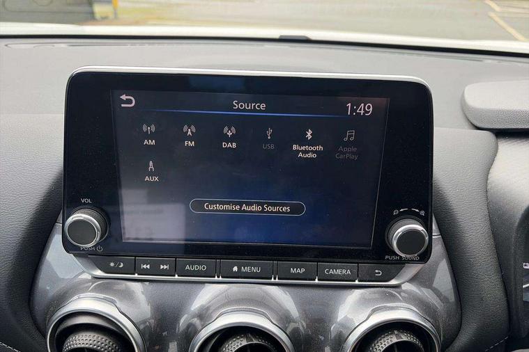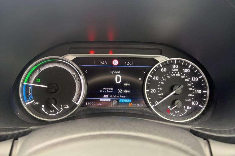 7" full colour TFT screen combimeter, Apple CarPlay and Google Android auto, Drive modes select (Eco, normal and sport), e-Pedal step, Emergency and breakdown call, EV mode selector, Front parking sensor, Intelligent lane intervention, Lane departure warning system, Nissan connect 8" touch screen entertainment system, Nissan connect nav with TomTom traffic, Nissan connect services and Wifi connection, Outside temperature sensor, Power Steering, Rear parking sensor, Traffic sign recognition, Trip computer, Voice recognition, Gasoline particulate filter, 6 speakers, Bluetooth system, USB, Aux-in and 12V socket, DAB Digital radio, Rear console USB port, Auto dimming interior rear view mirror, Auto headlights, Automatic hazard signal with emergency stop signal, Body colour bumpers, Body colour door handles, Electrically adjustable door mirrors with integrated indicators, Follow me home headlights, Front and rear electric window with one touch driver window, Heated and auto folding door mirrors, High beam assist, LED daytime running lights, LED headlamps, LED rear fog lamp, LED rear lamps, Rain sensor windscreen wipers, Rear privacy glass, Rear side wing doors, Rear wiper, Three blink turn signal, 3 height adjustable rear headrests, 3 seat bench in 2nd row, 60/40 split folding rear seat, Automatic climate control, Card holder on driver sunvisor, Cloth upholstery with black and metallic grey syntech leather inserts, Driver and passenger sliding and reclining seats, Driver side rear coat hanger, Driver/passenger sunvisors and vanity mirrors, Front and rear cabin lights, Front armrest, Front door pockets with bottle holders, Front head restraints, Front/rear passenger grab handles, Grey synthetic leather kneepad, Height adjustable driver's seat, Internal chrome door handles, Leather gearshift knob, Leather steering wheel, Luggage board, Luggage space lighting, Monoform sporty seats, Multifunction steering wheel, Rear door bottle holders, Single front passenger seat, Steering wheel mounted gearshift paddles, Telescopic steering wheel adjustment, Two cupholders in front centre console, Two rear isofix child seat anchorage points with top tether, Welcome light and console tray ambient lighting, ABS with EBD and brake assist, Active ride control, Active Trace Control, Driver and passenger airbags, Driver and passenger side airbags, Electric handbrake with auto hold function, Electronic Stability Programme (ESP), Front and rear curtain airbags, Height adjustable seatbelts, Hill start assist, Intelligent emergency braking with pedestrian and cyclist recognition, Rear door child safety locks, Seatbelt reminder for driver/front passenger and rear seats, Single tone horn, Three 3 point rear seatbelts, Traction control, Tyre pressure monitoring system, VDC Dynamic Vehicle Control, Ventilated rear brake discs, Alarm, Immobiliser, Intelligent key and start push button with walk away lock and approach unlock functions, Remote central locking,