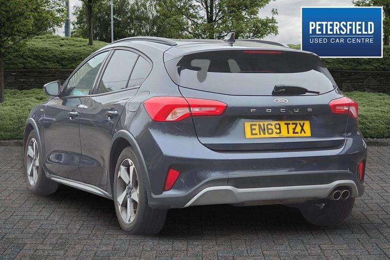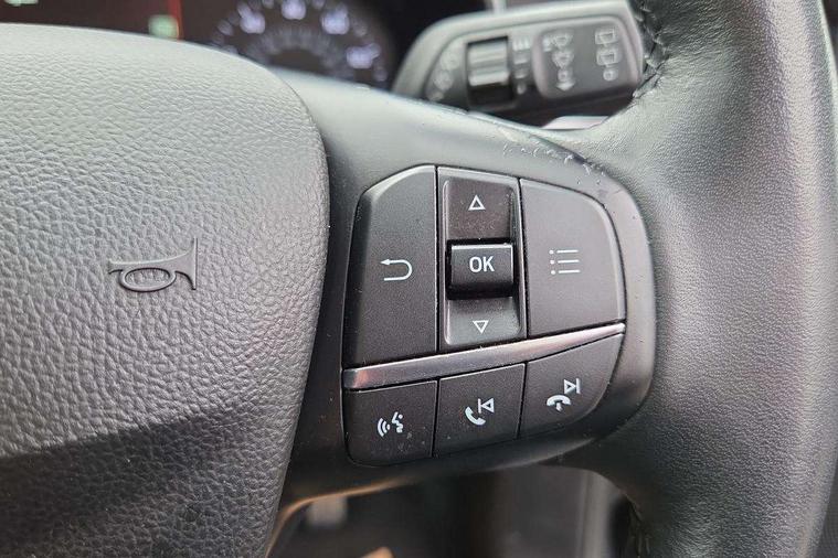 Bluetooth system, Digital clock, Easy fuel capless refuelling system, Eco mode, Ford pass connect, Ford SYNC 3 nav system with DAB radio, 8" colour touch screen, voice control, app link, Apple car play/Android auto and 4.2" TFT coloured cluster, Intelligent speed assist, Lane keeping aid with lane departure warning, PAS, Selectable drive modes with slippery and trail mode, Trip computer, Diesel particulate filter, Raised ride height (30mm higher than standard), Aux input, 'Quickclear' heated windscreen/heated washer jets, Active branded scuff plates, Active front and rear bumper with unique upper and lower grille, Auto headlamps (on/off), Black painted roof and mirror caps, Black roof rails, Body coloured bumpers, Body coloured door handles, Electrically operated and heated door mirrors with side indicators, Electrically operated front and rear windows with one touch opening and closing, Front variable intermittent wipers with electric wash, Halogen reflector headlamps, Heated rear window, LED daytime running lamp, LED front fog lamps with cornering function, Rear privacy glass, Tailgate wash/wipe, Twin exhaust tailpipes, Unique skid plates and side rocker mouldings, 3 spoke leather trimmed steering wheel with integrated audio controls, 60/40 split back and cushion rear seats with 2 height adjustable headrests, Centre console with armrest, Cloth upholstery with blue stitching, Driver's lumbar support, Front floor mats, Gear lever gaiter ring with blue stitching, Height adjustable front headrests, Isofix child seat preparation, Leather gear knob, Manual air conditioning, Reach + rake adjustable steering column, Rear centre headrest, ABS+Electronic Brake force Distribution, Auto hold function, Driver airbag, Electronic parking brake, Electronic stability control, Front and rear seatbelt reminder, Front inertia reel height adjustable seatbelts with pre-tensioners, Front passenger airbag, Front side airbags, Hill start assist, Passenger airbag deactivate switch, Post collision braking, Pre collision assist with autonomous emergency braking and pedestrian/cyclist detection, Side curtain airbags, Three rear inertia reel lap/diagonal seatbelts, Tyre pressure monitoring system, Keyless start with 'Ford Power' starter button, MyKey system, Remote central locking & engine immobiliser, Thatcham category 1 alarm, 17" 5 spoke foundry black machined painted finish alloy wheels, Mini steel spare wheel,