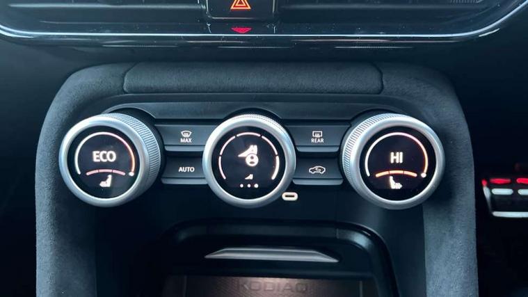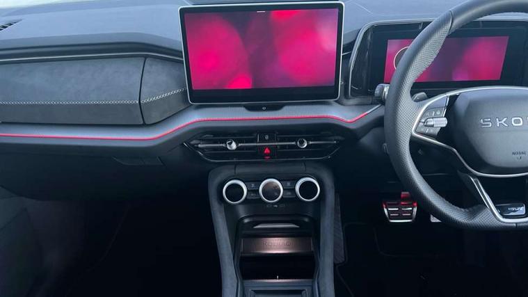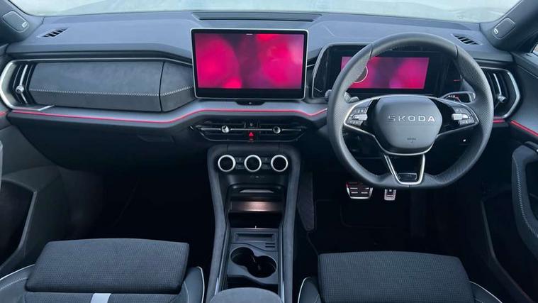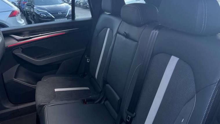 13" satellite navigation touchscreen display, Blind spot detection with door exit warning, Bluetooth system, ChatGPT functionality, Driver alert - Fatigue and drowsiness monitor, Dry display cleaner, Emergency call, Front and rear parking sensors, Front cross traffic assist, Lane assist, PAS, Rear traffic assist, Tailgate unlocking from outside, Traffic sign recognition, USB C Port x 2 in front centre console, Virtual Cockpit - 10.25" digital display, Voice control system, Wireless charging for two smartphones (15W) with cooling function, Wireless SmartLink for Apple CarPlay and Android Auto, 32A charging cable, Stop/start function, 2x USB-C in the rear, DAB Digital radio, Aero front windscreen wipers with intermittent function, Auto dimming rear view mirror, AWL (all weather lighting) and all weather light with cornering function, Black diffuser and decorative tailpipe with a unique dark chrome finish, Black roof rails, Black sports styling including front grille and window surrounds, Black wheel arch surrounds, Body colour door handles, Cornering light and poor weather light, Electric folding /adjustable/separted heated/folding door mirrors, auto dimming with boarding sports and memory function, Electric front and rear windows, Exterior black decorative trims, Front and rear sports bumpers including lower rear chrome strip, Front grille with horizontal light strip, Gloss black door mirrors, Gloss black window frame and D pillar, Heat insulating glass in windshield, Heated rear window, Ice scraper in fuel tank cap, LED daytime running lights, LED matrix headlights with AFS and LED fog lights, LED rear light with welcome effect and dynamic turn signals, LED third brake light in rear spoiler, Light assistant with automatic headlight control and coming home feature, Logo projection in door mirrors, Multiple matrix beam, Privacy glass, Rear roof spoiler, Rear side wing doors, Rear window wiper, Red decorative strip between rear LED lights, Safety reflectors on front and rear doors, Sportline badge on front fenders, Tailgate lettering in Black, Unique dark chrome design logo on alloy wheels, Window control switches with black trim, Windscreen wipers with rain sensor, Without engine designation, 1.5l bottle holder points in all door, 1x centre rear reading light, 3 configurable smart dials with 32mm coloured display, 3 seat bench in 2nd row, 3 spoke multi-function heated leather sports steering wheel with paddle shift, 4 foldable roof handles with rear coat hooks, Aluminium pedals, Ambient interior lighting - Dashboard, front-door stowage compartments, front and rear door panels and footwell lighting, Automatic gear selector on steering column, Chrome interior door handles, Driver/front passenger reading lights, Fabric headlining, Fixed bench 40:60:40 split folding backrests, Front and rear floor mats, Front centre armrest with jumbo box storage compartment, cup holder and 12V socket, Front sport seats, Height adjustable front headrests, Interior black decorative trims, Isofix child seat fittings in outer rear seats and front passenger with top tether, iV badging on boot, Manually adjustable steering column, Pollen filter, Rear centre armrest with cupholders, Rear seat boot backrest release, Single front passenger seat, Skoda lettering on steering wheel, Storage pocket including mobile phone pockets on the backs of the front seats, Sunvisors with illuminated vanity mirrors, Three rear height adjustable headrests, Ticket holder on A Pillar, Tri zone climate control, Umbrella in door panel x1 made from sustainable materials, Upper and lower glovebox with card holder and coin compartment, USB C port by rear view mirror for charging only (15W), Acoustic package - Kodiaq, Performance package - Kodiaq, Sportline design selection pack - Kodiaq, Auto door release and activation of warning lights in the event of an accident, Driver and front passenger airbag with knee airbag and front passenger airbag deactivation, Electric child locks, Electronic parking brake, ESC (incl. ABS+EMD+MSR+ASR+EDL+HBA+DSR+RBS+ESBS+MCB+TSA+XDS), Front assist with braking reaction to vehicles, pedestrians and cyclists, Front disc brakes, Fuel cut off safety device, Height adjustable front 3 point seatbelts + pretensioners, Hill hold assist, Junction assist with automatic emergency braking, Rear disc brakes, Safety vest holder in door, Seat belt reminder for all seats, Three point rear seat belts, Two tone horn, Tyre pressure monitor, Alarm with interior monitoring and tilt sensor with safe function, Anti-theft wheel bolts, Immobiliser, Remote central locking with 2 keys, 20" Rila anthacite polished alloy wheel with black matte aero covers, Breakdown kit, Tool kit,