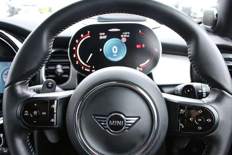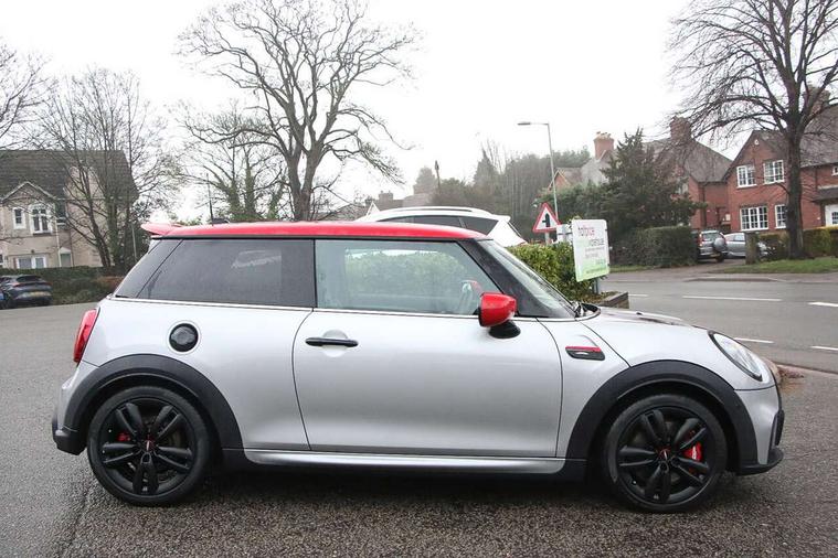 Apple CarPlay, Automatic start/stop function with brake energy recuperation, Compatible mobile phone bluetooth with audio streaming, Cruise control with brake assist, Electro-mechanical speed dependant steering assistance, Flexible car sharing preparation, Instrument cluster, MINI Driving Modes - centre toggle switch to control driving setting (sport, mid and green), Mini E-call, MINI TeleServices, On board computer, Rear park distance control, Service interval indicator, Double Vanos system, Eight speed steptronic sport transmission, with gearshift paddles, Fully variable valve control, High precision injection, Performance Control, 8.8" touchscreen with LED ring, FM tuner and DAB digital radio, 3rd brake light, Automatic headlight activation switch, Bonnet scoop, Dynamic brake lights, Electric front windows, Heated rear window, Heated windscreen washer jets, JCW Aerodynamic kit - Front and rear bumpers with sporty JCW styling and part-painted side sills with MINI John Cooper Works door sill finishers, John Cooper Works logo above an individual grille strut in Chilli Red, John Cooper Works rear spoiler, LED headlight with closed ring and daytime driving lights, Radiator grille piano black border with honeycomb structure in black matt, Rain sensor window wipers, Rear fog lights, Rear LED lights with union jack design, Rear window wiper, Side scuttle panel with integrated indicator, Side scuttle with MINI John Cooper Works logo in black high-gloss with red border, Sun/heat protection glass, Two central exhaust tailpipes with chrome finisher, White indicator lenses, 12V Accessory socket in centre console, 2 seat bench in 2nd row, 4 lashing eyes in luggage compartment, 60/40 split folding rear seat, Anthracite headliner including grab handles and clothes hooks, Carbon black colour line - Knee roll and door armrest, Chrome interior highlights, Cupholders, Front and rear isofix with front passenger airbag deactivation, Front floor mats in velour, Glove compartment, Height and length steering column adjustment, Interior lighting with 12 different colours across the dashboard, underneath door bezel with illuminated laser-engraved design on central display, JCW Sport seats with integrated headrests, adjustable thigh support and John Cooper Works logo, Leatherette gearshift lever and handbrake gaiters, LED reading lights, vanity mirror lights, front foot well light and spotlight on front seats, Manual air conditioning, Mechanical seat adjustment - forward/back & backrest for front seats and driver seat height adjust, Multifunction steering wheel, Passenger seat height adjuster, Rubberised stainless steel pedals, Single front passenger seat, Storage compartments in doors, Storage pocket on back of front seats, Sunvisors with vanity mirrors, Walknappa leather steering wheel with grey seam and John Cooper Works badge on Piano Black lower steering wheel spoke, Navigation pack without Apple Carplay - Mini Hatchback, Piano black exterior pack - JCW, 3 point seatbelts on all four seats, 4-piston fixed-calliper brakes front, 6 Airbags - front, side, head and seat belt tensioners, Anti-lock braking system (ABS), DSC - Dynamic Stability Control, Front and rear disc brakes, Red brake callipers with John Cooper Works logo, Single tone fanfare horn, Tyre pressure monitoring system, Alarm system with tilt sensor, monitoring doors, bonnet interior and tailgate, Electronic vehicle immobiliser, Start/stop toggle with keyless go, Tool kit,