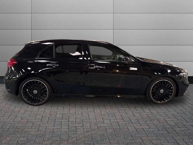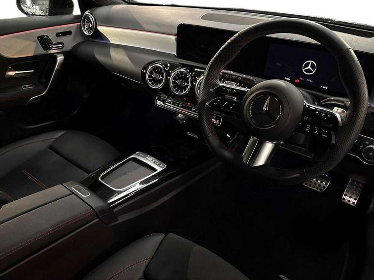 10.25 inch touchscreen central media display, 10.25" Digital instrument cluster display screen, Attention assist, Brake pad wear indicator warning light, Car wash mode, Direct steering, Direction indicators with lane change function, Dual bluetooth interfaces, DYNAMIC SELECT with a choice of driving modes (ECO, Comfort, Sport and Individual), ECO start/stop function, Engine start/stop button, Fingerprint scanner, Fluid level warning indicator for fuel, oil, coolant and washer fluid, Fluorescent jacket for driver, Hard-disk navigation, Head up Display, Hey Mercedes Voice activation, Lamp failure indicator, Mercedes me connect including emergency call system, accident recovery, breakdown and maintenance management, Mercedes me remote services, Outside temperature gauge, Owners manual in English, Pre-installation of private car share, Remote boot closing, Service indicator (ASSYST), Smartphone integration with Apple CarPlay and Android auto, Speed sensitive power steering, Tailgate, Traffic sign assist, Trip computer in multifunction display with current consumption indicator, Wireless charging, Lowered comfort suspension, DAB Digital radio, MBUX multimedia system, Mercedes Benz advanced sound system (225 W) with 10 speakers, 1 central speaker, speakers on doors, a tweeter on door, one sub woofer + boost amplifier, 4 Electric Front and Rear windows, Adaptive brake lights, AMG body styling - AMG front apron with front splitter and AMG rear apron and visible exhaust tailpipe trim elements, Body colour bumpers, Body colour door handles with chrome inserts, Body colour side skirt, Chrome beltline strips, Diamond radiator grille with pins in fine star pattern, Electric adjustable and heated door mirrors with integrated LED side indicators, Exhaust system with 2 visible tailpipe trim elements and rear apron, Headlamp assist automatic headlamp activation, Heated glass rear windscreen + timer control, LED daytime running lights, LED High level third brake light, LED tail lamp, Multibeam LED headlamps with adaptive highbeam assist and cornering function, Panoramic sliding sunroof, Privacy glass, Radio aerial, Rain sensing windscreen wipers with two sensitivity settings, Rear fog lights, Rear side wing doors, Rear windscreen wiper, 3 seat bench in 2nd row, 3 Spoke flat bottom leather multi function steering wheel with perforated leather in grip area, 40:20:40 split folding rear seats, Air conditioning - Two zone thermotronic luxury automatic climate control with display, AMG floor mats, Artico man-made leather/Microcut microfibre upholstery, Automatic child seat recognition sensor, Black air vents with surround in silver chrome, Black roof lining, Brushed stainless steel sports pedals with rubber studs, Electrically adjustable front memory seats including lumbar support and backrest inclination, Front centre armrest with stowage, Front seat backs luggage nets, Galvanished gear shift paddles on steering wheel, Height/reach adjustable steering column, Illuminated Mercedes Benz lettering front door sills with changeable cover, Interior lighting - 64 colour Ambient lighting, Interior mirror with reading lamps in black and frameless, Rear armrest with 2 cupholders, Rear head restraints, Seat occupancy sensor for front passenger seat, Single front passenger seat, Sports seats with integrated headrests, Stowage compartment in centre console with retractable cover, Sunvisors with illuminated vanity mirrors, Twin front cupholders, Light and sight package - A Class, Mirror package - A Class, Night pack - A Class, Parking pack with 360 degree camera - A Class, Seat comfort pack - A Class, USB pack plus - A Class, Winter pack - A Class, 3 rear 3 point seatbelts, ABS with Brake Assist, Active bonnet, Adaptive brake assist with hold function and hill start assist, Bonnet with power domes, Childproof locks manually operated for rear doors and electrically operated for rear power windows, Crash responsive emergency lighting, Driver and passenger head and side airbags, Drivers knee airbag, Dual stage driver/passenger airbags, Electronic parking brake, ESP curve dynamic assist, ESP with ASR, Exit warning, Front and rear seatbelt reminder, Grey seatbelts, ISOFIX and top tether child seat fixing points in two outer rear seats, Tyre pressure monitoring system, Warning triangle and first aid kit, Window airbags, Alarm system/interior protection/immobiliser, Guard 360 degree vehicle protection, Keyless entry lock/unlock, Keyless Go, Remote central locking and crash sensor with emergency opening function, Light longitudinal grain aluminium trim, 19" AMG multi-spoke light alloy wheels, aerodynamically optimised, painted in black with high sheen rim flange, Summer tyres, Tirefit sealant kit,
