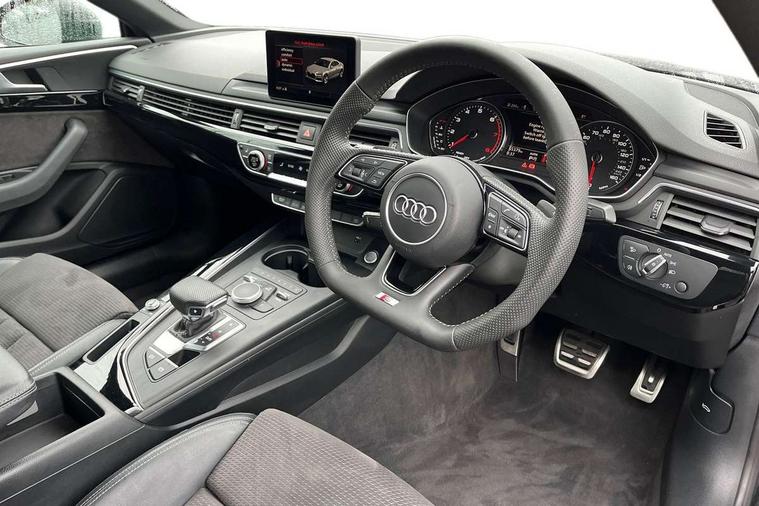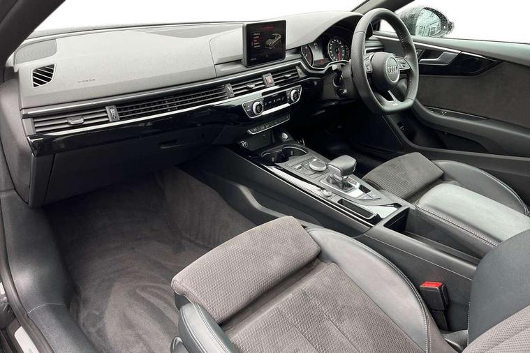 7" Colour driver information system, Audi connect, Audi drive select, Audi parking system plus with front and rear sensors, Audi smartphone interface, Automatic start-stop system with coasting functionality and efficiency programme, Bluetooth interface, Electric boot release, Electro-mechanical power steering, MMI Navigation, Service interval indicator, Voice control system, CD player, DAB Digital radio, Two SDXC card slots, Air inlets in titanium black with matt aluminium inlay, Auto dimming rear view mirror, Body colour bumpers, Chrome plated exhaust pipe, Electric adjustable heated door mirrors, Electric front windows, Front fog lights, High beam assistant, High gloss black door mirrors, Rain and light sensors, Rear diffuser in Twilight grey matt with honeycomb grille, S Line body styling, S line sill plates, S style high gloss black rear spoiler, Side and rear windows privacy glass, Titanium black frame and radiator grille, Titanium black front and rear air intakes, Titanium black window surround, Windscreen with acoustic glazing, 2 x USB charging port with aux input socket, 3 spoke flat bottom high multi-function leather steering wheel, 40/20/40 split folding 2 seater rear seat bench with rear centre armrest, Adjustable steering column, Black headlining, Black perforated leather gearknob, Centre console with cupholders, Contrast stitching on seats, steering wheel and gear lever gaiter, Deluxe 3 zone electronic climate control, Front centre armrest, Front head restraints, Front/rear floor mats, Gearshift paddles, Illuminated door sills, ISOFIX child seat mounting and top tether, Jack and tool kit, Luggage compartment mat, Rear headrests, S embossed logo on front sport seats, Stainless steel pedals and foot rest, Non Smokers pack, 6 airbags - Driver, front passenger, curtain and side airbags, Electromechanical parking brake, Electronic Stabilisation Control (ESC) including ABS, ASR and EDL, Front passenger airbag deactivation, Height adjustable front seatbelts, Hill hold function, Multi-Collision braking, Pop-up bonnet for pedestrian protection, Pre sense city, Seatbelt monitoring, Tyre pressure warning, Variable restraint system, Warning triangle and first aid kit, Anti theft alarm system, Anti theft wheel bolts, Immobiliser, Keyless Go, Remote central locking, Piano black finish inlay, 20" 5 arm rotor alloy design wheels with matt titanium finish, Tyre repair kit,