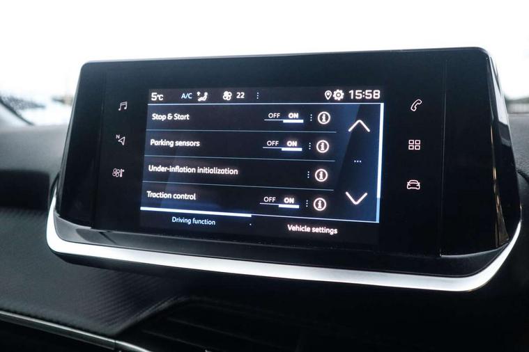 Bluetooth telephone facility, Driver attention warning, Exterior temperature indicator with ice warning, Lane keep assist, Mirror screen with mirror link, apple carplay and android auto, Multi function trip computer, Peugeot connect SOS and assistance, PEUGEOT i-Cockpit with 7" capacitive colour touchscreen, PEUGEOT i-Cockpit with compact steering wheel, PEUGEOT i-Cockpit with configurable 3D headup instrument panel, Programmable cruise control and speed limiter, Push button start, Rear parking sensors, Smart phone docking station, Smartphone charging plate, Speed limit recognition and recommendation, 2 front USB socket with USB-C, 2x USB sockets in rear, 6 speakers radio with mp3 compatible, DAB Digital radio, Voice recognition for radio, navigation and telephony features, 2 X Rear number plate lights, Automatic lights, Automatic windscreen wipers, Body coloured exterior door handles, Colour coded door mirror shells, Dark tinted Rear side and tailgate windows, Diamond black rear spoiler, Electric front windows + one touch + anti-pinch, Electric rear windows with one touch/anti-pinch, Electrically adjustable, heated and power folding door mirrors, Electrochrome rear view mirror, Follow me home headlights, Front windscreen wiper with magic wash cleaning system, Gloss black finish on B pillar, Gloss black rear cluster connecting strip, Headlights left on audible warning, Model designation badges front and rear, Radiator grille chrome chequered, Rear bumper with gloss black finish, Rear full LED 3D peugeot signature claw effect lights with daylight function, Rear reversing lights, Rear windscreen wiper triggered automatically in reverse gear, Tailgate with heated rear windscreen and wiper blade, 1/3 to 2/3 split folding rear seats, 12V socket, Driver and front passenger comfort seats, Driver and front passenger seat manual adjustment in longitudinal and back rest angle, Driver seat mechanical height adjustment, Dual zone electronic climate control, Electric power steering with reach and rake adjustable steering column, Front centre armrest with storage compartment, Front interior light with 2 reading spotlights, Gear shift indicator, High centre console with 2 cup holders, Leather steering wheel, Map pockets on the backs of the front seats, Piano keys gloss black plated toggle switches to access main functions of the vehicle, Roof lining - light grey, Satin chrome gear lever, Seatbelt unfastened on the move audible and visual alert for front and rear seats, 2x 2nd row ISOFIX child seat mountings, 3 rear 3 point seatbelts, ABS (Anti-lock Braking System) with EBD (Electronic Braking Distribution) and EBA (Emergency Braking Assistance), Child locking functionality on rear doors, Driver and passenger airbags with Passenger airbag deactivation system, Driver/front passenger side airbags, Electric parking brake, ESP with Hill Assist, Front and rear curtain airbags, Front and rear disc brakes, Front optimised safety headrests and 3 x rear retractable headrests with height adjustable, Front three point retractable seatbelts with force limiters, Pedestrians active safety brake, Tyre pressure sensor, Automatic door locking when moving off, Automatic hazard light activation upon heavy brake application, Deadlock, Electronic code immobiliser, Thatcham Cat.1 alarm, Carbon effect Dashboard, front and rear door panel finish, 17" Jordaan diamond cut alloy wheels, Space saver spare wheel,