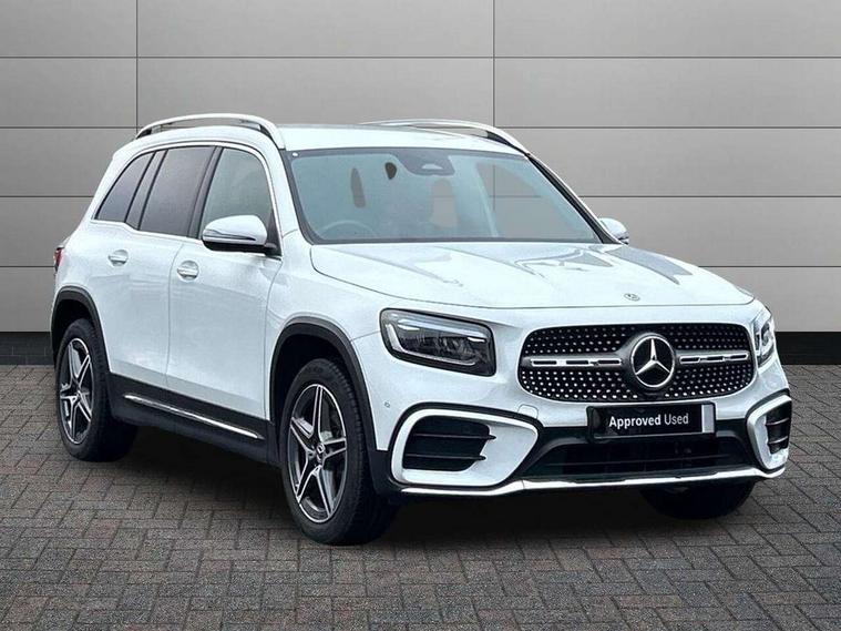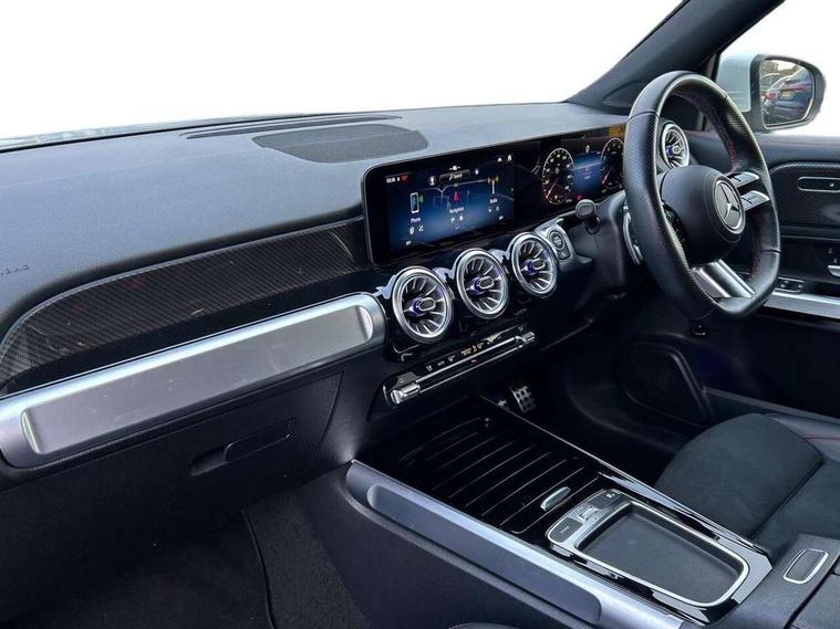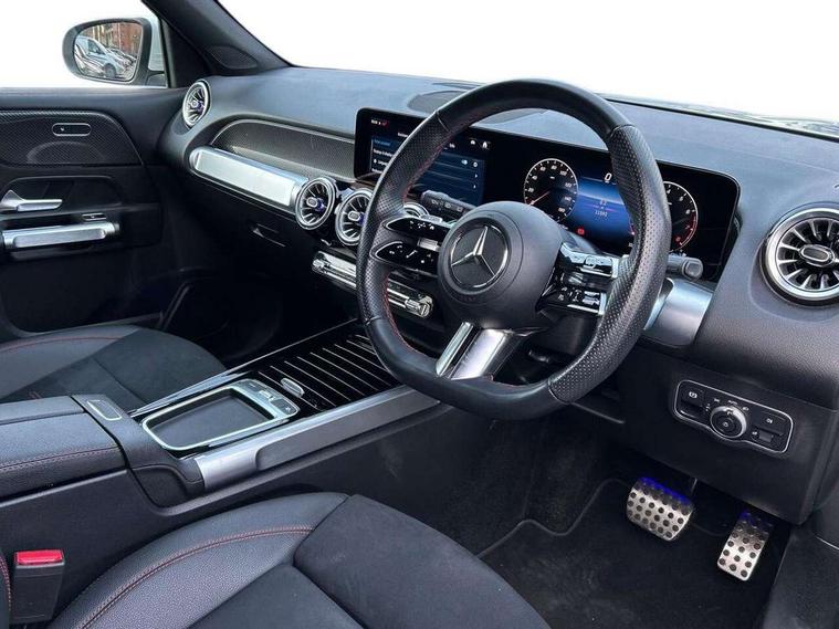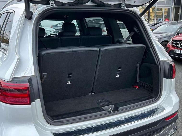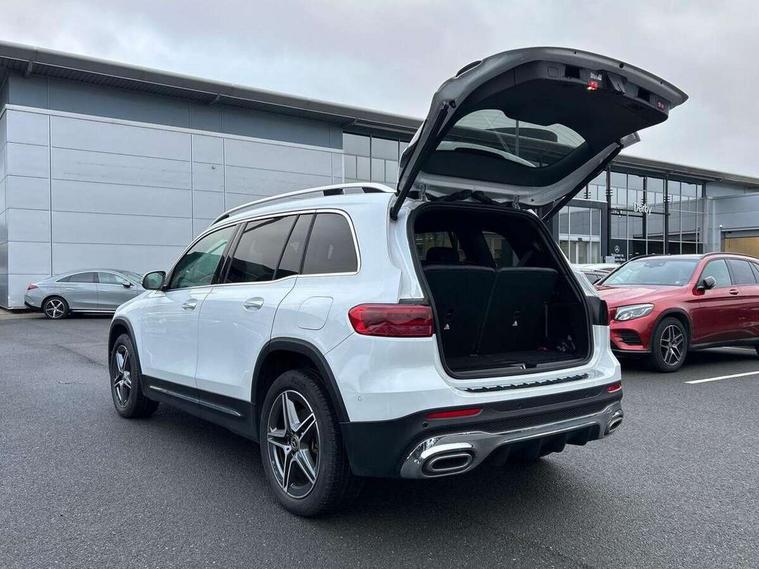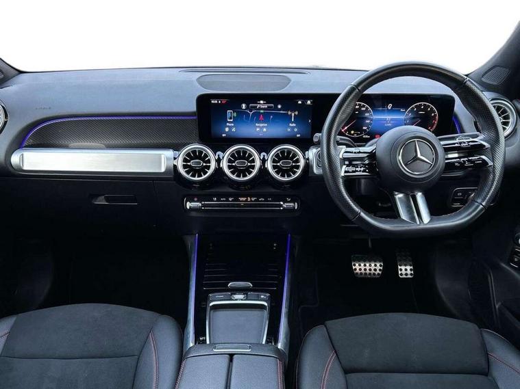 10.25 inch touchscreen central media display, 10.25" Digital instrument cluster display screen, 12 ultrasonic sensors in front and rear bumpers, 180 degree reversing camera with parking guidelines, Assisted parking: reversing backwards into perpendicular and parallel parking spaces, Attention assist - Monitors steering behaviour and long journey fatigue, Bluetooth connection, Brake pad wear indicator warning light, Car wash mode, Convenience opening and closing, Direct steering, DYNAMIC SELECT with a choice of driving modes (ECO, Comfort, Sport and Individual), ECO start/stop function, Engine start/stop button, Fluid level warning indicator for fuel, oil, coolant and washer fluid, Hard disk navigation, Hey Mercedes Voice activation, Lamp failure indicator, Lane keep assist, MBUX navigation premium, Mercedes me connect including emergency call system, accident recovery, breakdown and maintenance management, Mercedes me remote services, Outside temperature gauge, Owners manual and service booklet in English, Pre-installation of private car share, Preinstallation for parking damage notification, Radio aerial integrated into front and rear windshields, Remote boot closing, Service indicator (ASSYST), Smartphone integration with Apple CarPlay and Android auto, Speed limit assist, Tailgate, Trip computer in multifunction display with current consumption indicator, Ultrasound sensors - positioned in the handle of the tailgate, Wireless charging, Comfort suspension with ride height lowering, Rear axle multi-link, 1 USB-C port in the oddments compartment (Charge + Data transfer), 2 USB-C ports for the rear on the centre armrest (Charge only), 2 USB-C ports under the front centre armrest (Charge + Data transfer), DAB digital radio tuner, MBUX multimedia system, Mercedes Benz sound system (100 W) with 6 speakers, Pre installation for Mercedes Benz Link, Adaptive brake lights, Adaptive high beam assist, AMG front apron with front splitter in the colour of the vehicle with chrome trim element, AMG rear apron with visible tailpipe trim and chrome trim element, AMG specific/dual flow exhaust pipes in chrome (non-functional), Auto dimming rear view mirror, Beltline trim and window line trim strip in high gloss aluminium, Black grained side sill trim with chrome inlay, Body coloured door handles, Electric adjustable and heated door mirrors with integrated LED side indicators, Electric folding door mirrors, Front and rear electric windows, Headlamp assist automatic headlamp activation, Heat insulating dark-tinted glass starting from B-pillar, Heated glass rear windscreen + timer control, High level LED third brake light, Interior mirror with black reading lamps and frameless, LED high performance headlamps with integrated LED daytime running lights, LED tail lamp, Polished aluminium roof rails, Radiator grille as a diamond grille with chrome pins and central Mercedes star, Rain sensor windscreen wipers, Rear fog lamp, Rear side wing doors, Rear wiper, Single louvre in matt grey with chrome inserts and black highlights, Two visible tailpipe trim elements exhaust, Ultrasonic sensors - positioned in the front and rear bumpers, Wheel arch liners in the colour of the vehicle, 12V socket in the oddments compartment, 3 seat bench in 2nd row, 3 twin spoke flattened multifunction steering wheel in nappa leather - horizontal twin spoke in high gloss black, vertical twin spoke in silver chrome, 4 way adjustable lumbar support, 40:20:40 split folding rear seats, Air vents with silver chrome surrounds, AMG floor mats, AMG sports pedals with brushed stainless steel surfaces and black rubber studs, Automatic child seat recognition sensor, Black roof lining, Door handles with chrome inserts, Fluorescent jacket, Front and rear headrests, Front centre armrest with stowage, Galvanised steering wheel gearshift paddles in silver chrome, Handle recess lighting, Heated front seats, Height adjustable head restraints, Height/reach adjustable steering column, Interior lighting - 64 colour Ambient lighting, Luggage net on driver/front passenger seat backrest, Single front passenger seat, Sports seats, Stowage compartment with retractable cover, Sun visors with illuminated vanity mirrors, THERMATIC automatic climate control, Third row of seats for two people on rear seat, Twin front cup holders, Two outer rear seat isofix and top tether child seat fixing points, Easy pack tailgate, Interior lighting with light and sight pack - GLB, Seat comfort package - GLB, 3 rear 3 point seatbelts, Active bonnet pedestrain safety measure which detects an impact and raises bonnet by 65mm, Active brake assist includes forward collision warning system with autonomous braking, Adaptive brake assist with hold function and hill start assist, Airbags - kneebag for driver, Anti-lock braking system (ABS) with brake assist, Black seatbelts, Bonnet with power domes, Childproof locks manually operated for rear doors and electrically operated for rear power windows, Crash responsive emergency lighting, Curve dynamic assist, Driver and front passenger head and sidebags, Driver and front passenger windowbags, Dual stage driver and front passenger airbags, Electric parking brake, Electronic stability programme with acceleration skid control, Front and rear seatbelt reminder, Front brake callipers with Mercedes Benz lettering, Front passenger seat occupancy sensor, Perforated front brake discs, Tyre pressure monitoring system, Warning triangle and first aid kit, Guard 360 degree vehicle protection - Anti theft alarm system, tow away protection with visual, acoustic warning and alarm, Interior monitoring system, Keyless Go Access and drive authorisation system, KEYLESS-GO starting function, Remote central locking and crash sensor with emergency opening function, Thatcham category 1 alarm system with immobiliser and interior protection, Vehicle key with KEYLESS GO functionality, Carbon structure trim, 19" AMG 5 twin spoke light alloy wheels aerodynamically optimise