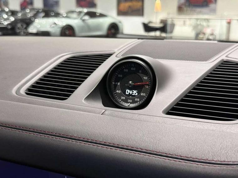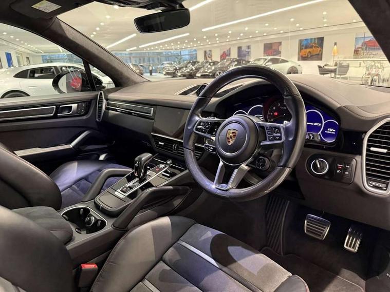 Android Auto, Apple car play, Brake pad wear indicator, Central analogue rev counter with black dial face and GTS logo, Driver personalisation for climate, audio and communication, assistance systems and other customisable car systems, Emergency call service, High resolution 12.3-inch touchscreen display in full HD resolution, Individual mode for individual selection of vehicle drive settings, Instrument cluster with two high-resolution displays, Mobile phone preparation with Bluetooth interface for telephone and music, Porsche Communication Management (PCM) including online navigation module, mobile phone preparation, audio interfaces and voice control system, Power tailgate, Vehicle electrical system recuperation, Warn and brake assist including pedestrian protection, 8 Speed Tiptronic S transmission with auto Start-Stop and coasting function, 90 litre fuel tank, Adaptive cylinder control, Aluminium cylinder heads and engine block, Direct fuel injection (DFI) with central injector position, Front and rear aluminium multi link axles, Gasoline particulate filter, Porsche Torque Vectoring Plus (PTV Plus), Sport mode, Twin turbo charged with twin scroll turbochargers, VarioCam, Water cooled with thermal management, AM radio, Digital radio, Two USB charge ports in rear compartment, Two USB charging and connectivity ports in the front centre console storage compartment, Active air intake flaps, Automatic headlight activation including welcome home functionality, Bumper system with high strength cross members and two deformation elements + Two receptacles with screw threads towing lug + onboard tool kit, Door lower cladding trim in exterior colour, Electric windows + anti trap protection + one touch open/close drivers side, Electrically adjustable, folding and heated exterior mirrors, aspherical on drivers side including courtesy lights, Exclusive tinted LED tail lights with three dimensional lighting graphic including light strip and integrated four point brake lights, Extensive aerodynamic underbody protection, Four point signature LED daytime running lights, Front end with integrated air intakes and airblades for the side air intakes, Front light modules including position lights and direction indicators in LED light guide technology, Front windscreen wipers with two speeds, intermittent wipe and rain sensor, Fully galvanised steel / aluminium hybrid lightweight bodyshell and Aluminium bonnet, tailgate, doors, side panels, roof and front wings, Gloss black side window trims, Heated rear window with automatic switch off, LED High level third brake light integrated into roof spoiler, Porsche logo and cayenne GTS model designation on tailgate in matt black, PORSCHE' lettering integrated in tailgate strip, Rear apron lower cladding painted in exterior colour, Rear side wing doors, Rear window wiper with intermittent function and washer jet, Sports exhaust system including sports tailpipes in black, Tailgate with integrated roof spoiler in exterior colour, Two twin exhaust tailpipes, left and right and brushed stainless steel finish, 3 seat bench in 2nd row, Alcantara roof lining, B-pillar clothes hooks on driver and passenger's side, Charge air cooling, Double sun visors for driver and front passenger, Driver/passenger sunvisors and vanity mirrors, Elevated centre console with handles, Five seats rear seat system with two comfort outer seats and a central seat, Front and rear bottle holders in door panels, Front centre armrest, GTS logo on door sills front, left and right in black, Integrated front headrests/2-way headrests rear, Isofix fastening system for child seats on outer rear seats, LED interior light with switchoff delay function, footwell + glove compartment light, ashtray + ignition lock illumination, front + rear reading light, Manual height adjust for driver and front passenger seat belt, Particle/pollen filter with active carbon filter, Rear seat split folding design 40:20:40, Fold out centre armrest with integrated cup holder, manual fore/after adjust and backrest angle adjust, Retractable roller luggage compartment cover in detachable cassette, Sideskirts in black plastic, Single front passenger seat, Stainless steel pedals, Storage compartments - Cooled glove compartment, front centre console, door and map pockets on front seat backrests + side luggage compartment, Three 12V power sockets - front below the glove compartment, centre console and at side of luggage compartment, Two integrated cup holders in front and rear with variable diameter, Sport design package - Cayenne, 3-point automatic seatbelts with front and outer rear seats pretensioners and front force limiter with 3-point automatic seatbelt for rear centre seat, 4 piston aluminium monobloc fixed caliper brakes at rear and internally vented brake discs, 6-piston aluminium monobloc fixed caliper brakes at front, internally vented brake discs, Active bonnet, Auto hold function, Brake discs with diameter 390mm at front 358mm at rear, Curtain airbags along roof frame and side glazing from the A-pillar to the C-pillar, Distance warning, Electronic parking brake, Front passenger airbag deactivation function for front seat mounting of child seat, Front side airbags integrated into seat, Full size driver and front passenger airbags, Knee driver and passenger airbags, Mounting points on passenger seat for ISOFIX child seat mounting system, Multi-Collision braking, Porsche hill control (PHC), PTM Porsche Traction Management active all-wheel drive with an electronically variable, map-controlled multi-plate clutch, ABD and anti-slip regulation, Rear door child safety locks, Rollover detection for activation of curtain airbags and seat belt pretensioners, Seat belt warning system for driver and front passenger and rear seat system, Side impact protection in doors, Tyre pressure monitoring system, Vehicle stability system, Porsche stability management (PSM) including ABS, ASR, ABD, MSR and trailer stability management, Alarm system