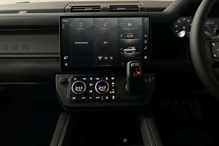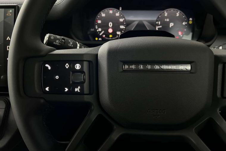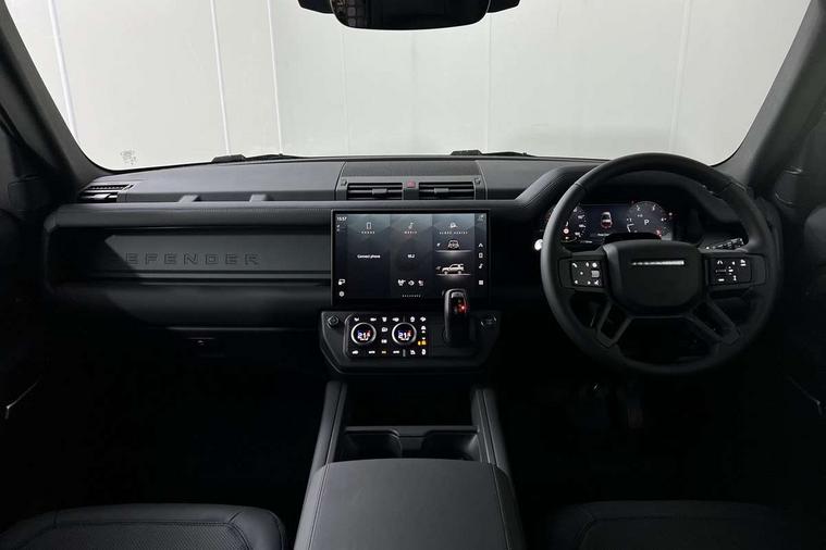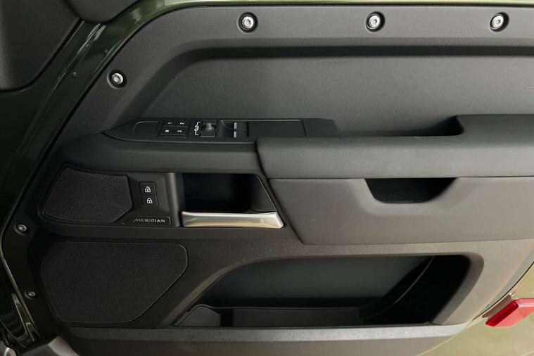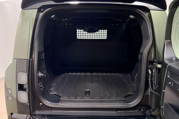 Customer Configurable Autolock, 13.1" touchscreen, 360 parking aid, 3D Surround Camera with 360 View, 180 Rear View, Front Traffic Detection, Forward Vehicle Guidance, Tow Hitch Assist and clear sight Ground View, Blind spot assist, Brake Hold, Driver condition monitor, Electric power assisted steering (EPAS), Interactive Driver display, Lane keep assist, Low traction launch, Pivi pro connected, Rear collision monitor, Rear traffic monitor, Secure tracker pro, Traffic sign recognition adaptive speed limiter, Trip computer, Tyre pressure monitor, Android Auto, Apple CarPlay, DAB Radio (Digital Audio Broadcasting), Meridian 280W sound audio system with 7 speakers with subwoofer, Assisted tailgate, Auto High Beam Assist, Automatic headlight levelling, Automatic headlights and rain sensitive front wipers, Body coloured bonnet, Body coloured exterior Utility Panel, Centre high mounted stop light, Darkened LED tail lights, Electric heated/power fold door mirrors with approach lights and auto dimming driver side, Electric windows with one touch open/close and anti-trap, Follow me home lighting, Front fog lights, Heated rear window with timer, Heated windscreen, Privacy glass, Puddle lights, Rear fog lights, Rear wash wiper, Side-hinged tailgate, Standard roof, Standard tail door, Standard tread plates, Additional lashing points, Black exposed rear recovery eyes, Configurable cabin lighting, Dual zone climate control, Footwell lights, Full height bulkhead behind row 1 seats, Glovebox storage, High sided rubber mats, Loadspace cover, Loadspace hooks, Loadspace rubber mat, Manual adjustable steering column, Overhead stowage for sunglasses, Rear centre headrest, Rear reading light, Resist gearshift, Standard interior, Standard Non-Leather steering wheel, Standard seating configuration, Sunvisors with illuminated vanity mirrors, Upgraded loadspace LED lighting, Non smoker pack, Online pack with data plan - Defender, Brake pad wear indicator, Electronic traction control, Emergency braking, Front airbags, with passenger seat occupant detector, Power operated child locks, Remote for (e-Call, Optimised assistance call, InControl app, Climate, beep and flash and door), Seat belt reminder, Intrusion sensor, Keyless entry system, Locking wheel nuts, ABS and EBA, CBC - (Cornering brake control), Coil suspension system, Dynamic stability control, Electronic brake force distribution, Electronic park brake, Gradient acceleration control, Hill Descent Control, Hill start assist, Particulate filter (DPF), Push button start, Roll stability control, Trailer stability assist,