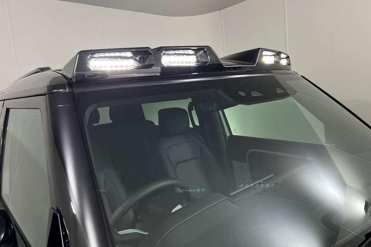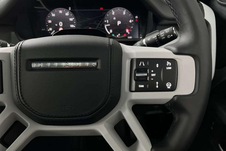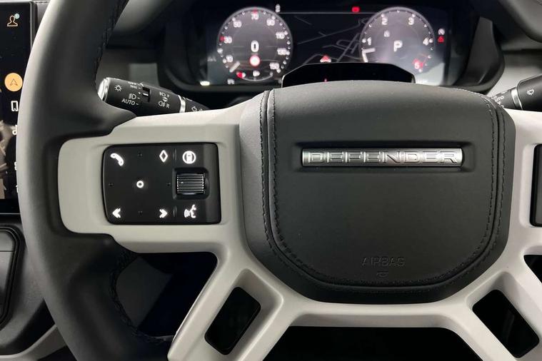 1 x USB-C (power only) & 1 x USB-C (power & data) in Row 1, 2 x USB-C in Row 2, 11.4" touchscreen, 360 degree parking aid, 3D Surround Camera with 360 View, 180 Rear View, Front Traffic Detection, Forward Vehicle Guidance, Tow Hitch Assist and clear sight Ground View, Adaptive cruise control, Android Auto, Apple CarPlay, Blind spot assist, Bluetooth system, Brake pad wear indicator, Clear exit monitor, Connected navigation pro, Driver attention monitoring system, Electric power assisted steering (EPAS), Interactive driver display, Lane keep assist, Push button start, Rear collision monitor, Rear traffic monitor, Traffic sign recognition with adaptive speed limiter, Trip computer, Wireless device charging, 8 speed automatic transmission, All wheel drive system, Twin speed transfer box, DAB Radio (Digital Audio Broadcasting), Meridian 700w surround sound audio system with 15 speakers, Pivi pro connected, Automatic headlight levelling, Automatic headlights, Black exposed rear recovery eyes, Body coloured bonnet, Darkened LED tail lights, Electric heated/power fold door mirrors with approach lights and auto dimming driver side, Electric windows with one touch open/close and anti-trap, Follow me home lighting, Front fog lights, Heated rear window with timer, Heated windscreen, LED 3rd brake light, LED tail lights, Matrix LED headlights with signature DRL, Panoramic rear side glass, Privacy glass, Puddle lights, Rain sensing windscreen wipers, Rear fog lights, Rear wiper, Side hinged tailgate, Sliding panoramic roof, Standard tail door, Trailer stability assist, X-Dynamic badge, 12V power socket in loadspace, 3 seat bench in 2nd row, Alpine lights, Configurable cabin lighting, Durable rubber cabin flooring, Durable rubber loadspace flooring, Ebony carpet mats, Electric reach + rake adjustable steering column, Electrically adjustable steering column, Extended leather upgrade, Flat load space floor tray, Footwell lights, Front head restraints, Heated steering wheel, Loadspace cover, Loadspace Hook, Multifunction steering wheel, Overhead stowage for sunglasses, Rear headrests, Rear ISOFIX, Rear reading lights, Single front passenger seat, Soft close tail door, Standard seat configuration, Storage glovebox, Sunvisors with illuminated vanity mirrors, Twin front cupholders, Non-smoker package, Online pack with data plan - Defender, 5 x 3 point seatbelts, ABS, Brake hold function, Cornering brake control (CBC), Customer configurable autolock, Driver and passenger airbags, DSC - Dynamic Stability Control, EBD - Electronic brakeforce distribution, Electric parking brake (EPB), Emergency brake assist, Emergency braking, ESP + traction control, Front airbags with passenger seat occupant detector, HDC - Hill descent control, Hill launch assist, Low traction launch, Remote for (e-Call, Optimised assistance call, InControl app, Climate, beep and flash and door), RSC - Roll stability control, Seat belt reminder, TPMS (Tyre pressure monitoring system), Alarm, Immobiliser, Intrusion sensor, Keyless entry, Locking wheel nuts, Secure tracker pro,