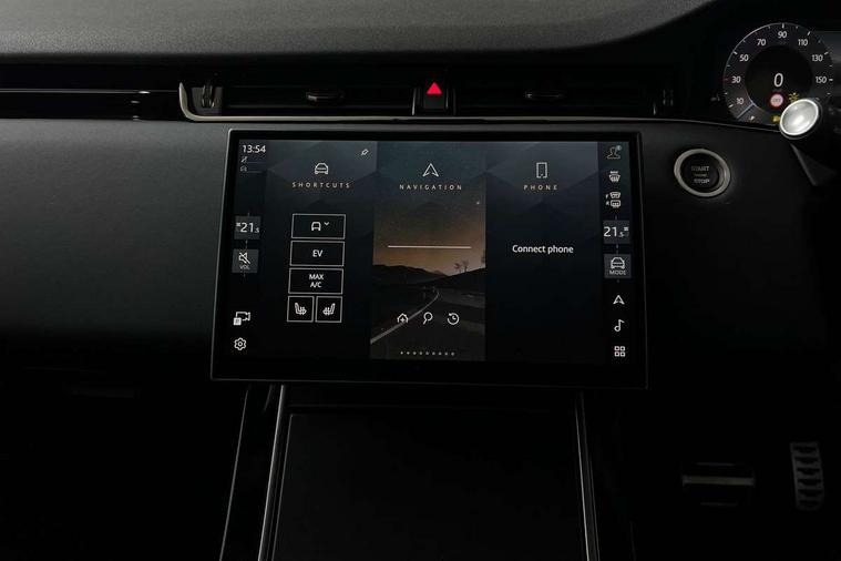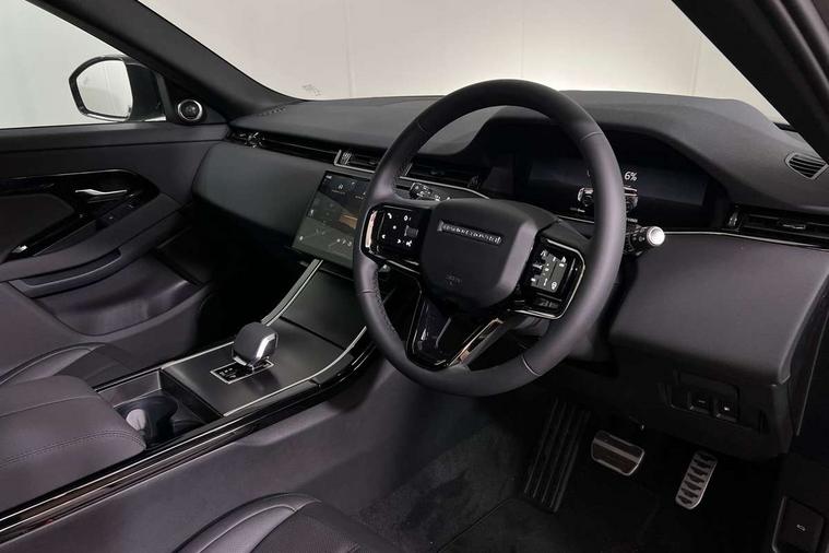 11.4" touch screen, 3D 360 degree surround camera with wade sensing, Adaptive cruise control, Android Auto, Apple car play, Blind spot assist, Bluetooth connectivity, Brake pad wear indicator warning light, Driver condition monitor, eCall emergency system, Eco mode, Electronic power assisted steering (EPAS), Front and rear parking sensors with auto brake, InControl remote, Interactive driver display, Land Rover InControl apps, Lane keep assist, Pivi pro connected includes diamond pivi variant, smart settings, connected navigation pro, nuance speech licence, Powered tailgate/boot lid, Rear collision monitor, Rear traffic monitor, Tailgate, Traffic sign recognition with adaptive speed limiter, Voice control system, Wireless device charging, All terrain progress control, Electric rear axle drive, Large fuel tank, Passive suspension, Public charging cable, Terrain Response 2, Digital Audio Broadcast radio-DAB, Steering wheel mounted controls, Acoustic laminated windscreen, Auto headlights, Auto high beam assist, Automatic headlight levelling, Electric windows with one touch open/close and anti trap, Flush deployable exterior door handles, Front and rear recovery eyes, Heated rear window with timer, Heated washer jets, Heated windscreen, LED headlights with signature DRL and LED tail Lights, Power fold, auto-dimming, heated door mirrors with approach lights and auto dimming driver side, Rain sensing windscreen wipers, Rear animated directional indicators, Rear fog lights, Rear side wing doors, Rear wiper, Tailgate spoiler, Third brake light, Winter wiper park position, 12 way driver memory and 10 way passenger electric front seats with 2 way manual headrest + 4 way lumbar support, 40:20:40 split folding rear seats with centre headrest and armrest, Bright metal pedals, Carpet mats, Chrome tread plates with range rover branding Includes stainless steel loadspace scuff plate with etched graphic, Customer configurable single point entry, Front and rear cupholders, Heated front seats, Heated steering wheel, Isofix system on outer rear seats, Manually adjustable steering column, Overhead lighting console, Overhead stowage for sunglasses, Passive front head restraints, Rear air vents, Rear head restraints, Satin chrome gearshift paddles, SE Grained leather upholstery, Single passenger seat, Standard steering wheel with Moonlight Bezel, Sunvisors with illuminated vanity mirrors, Twin sliding front centre armrest, Power socket pack 2 - Evoque, 3 rear 3 point seatbelts, Anti-lock braking system (ABS), Brake hold function, Customer configurable autolock, DSC - Dynamic Stability Control, Electronic brake force distribution, Electronic parking brake, Electronic traction control, Emergency braking, Front and rear seatbelt reminder, Hill descent control, Hill launch assist, Low traction launch, Occupant protection assist, Passenger seat occupant detector, Power operated child locks, Roll stability control, Six airbags - Driver and passenger airbags/driver knee airbag/front side airbag and curtain airbags, Torque vectoring brake, Tyre pressure monitoring system, Alarm, Immobiliser, Intrusion sensor, Keyless entry, Locking wheel nuts, All season tyres,