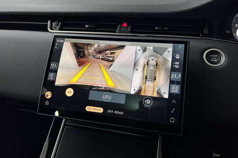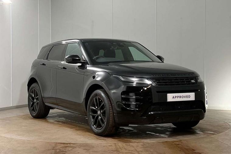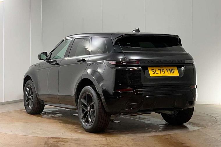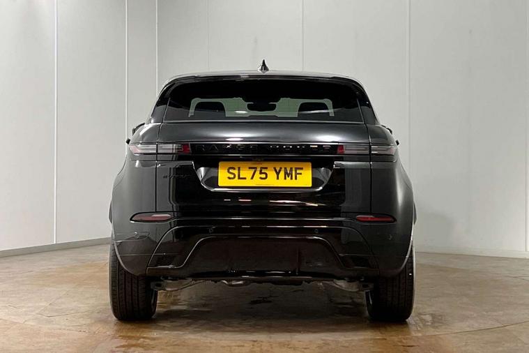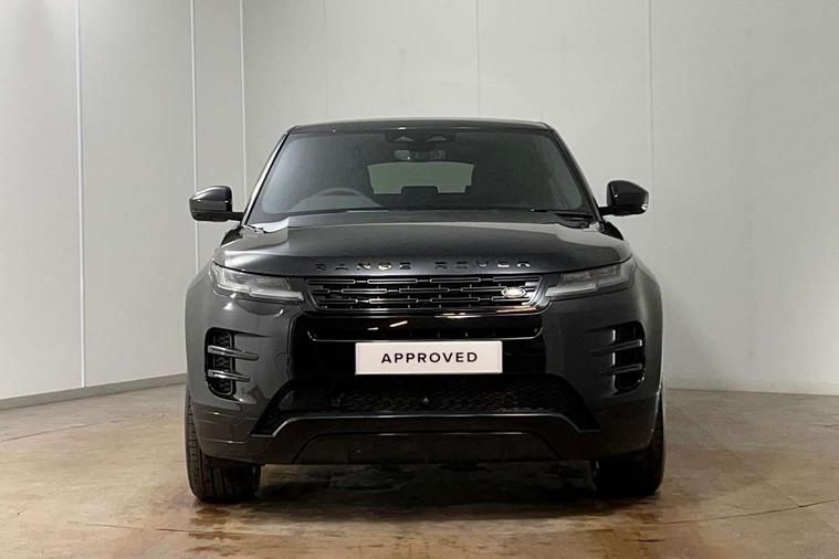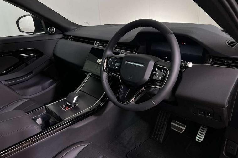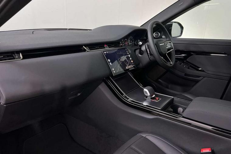 11.4" touch screen, 3D 360 degree surround camera with wade sensing, Adaptive cruise control, Android Auto, Apple car play, Blind spot assist, Bluetooth connectivity, Brake pad wear indicator warning light, Driver condition monitor, eCall emergency system, Eco mode, Electronic power assisted steering (EPAS), Front and rear parking aid, InControl remote, Interactive driver display, Land Rover InControl apps, Lane keep assist, Pivi pro connected includes diamond pivi variant, smart settings, connected navigation pro, nuance speech licence, Powered tailgate/boot lid, Rear collision monitor, Rear traffic monitor, Tailgate, Traffic sign recognition with adaptive speed limiter, Voice control system, Wireless device charging, All terrain progress control, Electric rear axle drive, Home charging cable, Large fuel tank, Passive suspension, Public charging cable, Terrain Response 2, Digital Audio Broadcast radio-DAB, Meridian sound system with 400W subwoofer and 11 speakers, Steering wheel mounted controls, Acoustic laminated windscreen, Auto dimming interior rear view mirror, Auto headlights, Auto high beam assist, Automatic headlight levelling, Black contrast roof, Electric windows with one touch open/close and anti trap, Fixed panoramic sunroof with powered sunblind, Flush deployable exterior door handles, Front and rear recovery eyes, Heated rear window with timer, Heated washer jets, Heated windscreen, LED headlights with signature DRL and LED tail Lights, Metallic paint, Power fold, auto-dimming, heated door mirrors with approach lights and auto dimming driver side, Privacy glass, Rain sensing windscreen wipers, Rear animated directional indicators, Rear fog lights, Rear side wing doors, Rear wiper, Tailgate spoiler, Third brake light, Winter wiper park position, 12 way driver memory and 10 way passenger electric front seats with 2 way manual headrest + 4 way lumbar support, 40:20:40 split folding rear seats with centre headrest and armrest, Bright metal pedals, Cabin lighting, Carpet mats, Chrome tread plates with range rover branding Includes stainless steel loadspace scuff plate with etched graphic, Customer configurable single point entry, Front and rear cupholders, Grained Leather upholstery, Heated front seats, Heated steering wheel, Isofix system on outer rear seats, Manually adjustable steering column, Overhead lighting console, Overhead stowage for sunglasses, Passive front head restraints, Rear air vents, Rear head restraints, Satin chrome gearshift paddles, Single passenger seat, Standard steering wheel with Moonlight Bezel, Sunvisors with illuminated vanity mirrors, Twin sliding front centre armrest, Two zone climate control, Black exterior styling pack - Evoque, Power socket pack 2 - Evoque, 3 rear 3 point seatbelts, Anti-lock braking system (ABS), Black brake calipers, Brake hold function, Customer configurable autolock, DSC - Dynamic Stability Control, Electronic brake force distribution, Electronic parking brake, Electronic traction control, Emergency braking, Front and rear seatbelt reminder, Hill descent control, Hill launch assist, Low traction launch, Occupant protection assist, Passenger seat occupant detector, Power operated child locks, Roll stability control, Six airbags - Driver and passenger airbags/driver knee airbag/front side airbag and curtain airbags, Torque vectoring brake, Tyre pressure monitoring system, Alarm, Immobiliser, Intrusion sensor, Keyless entry, Locking wheel nuts, Secure tracker pro, Black brushed aluminium finisher, 19" gloss black alloy wheels - Style 5136, All season tyres, Tyre repair system,