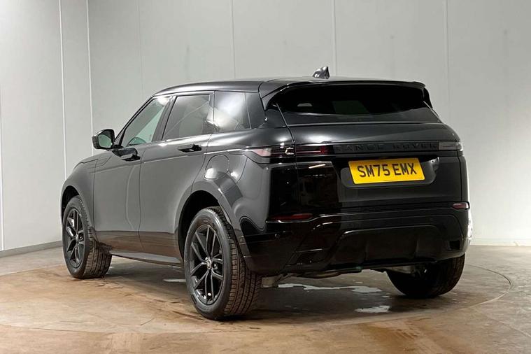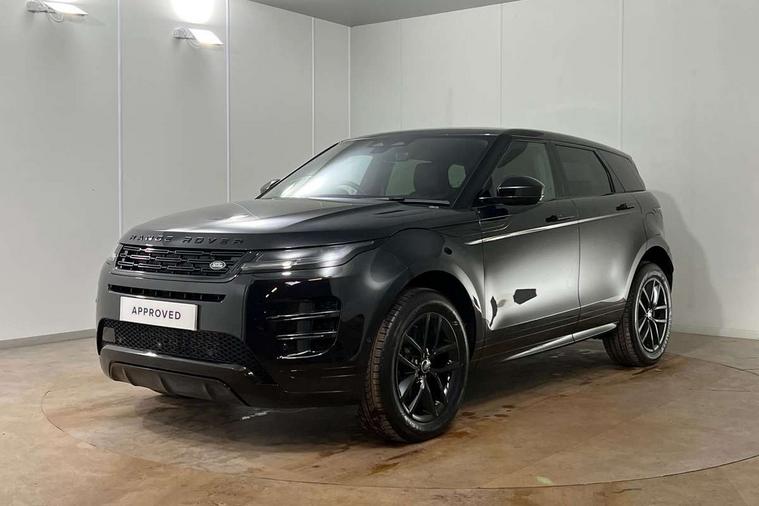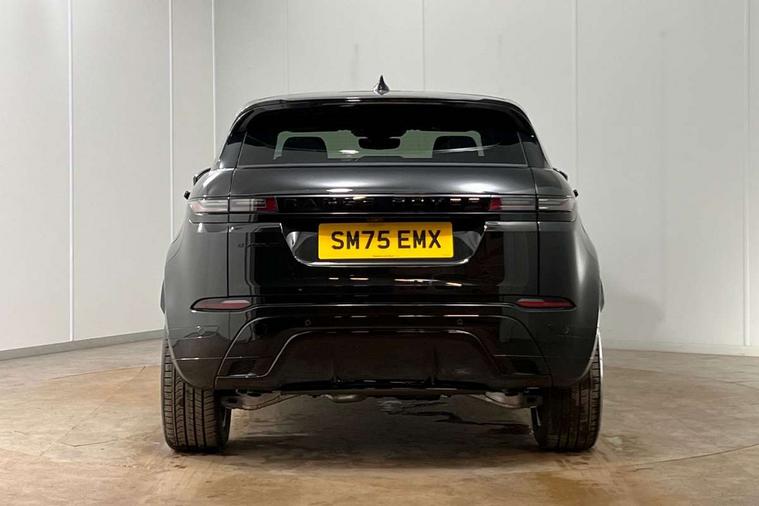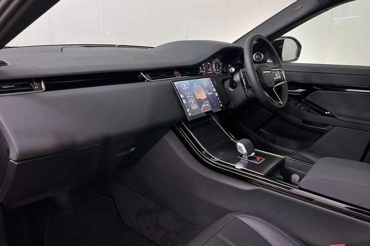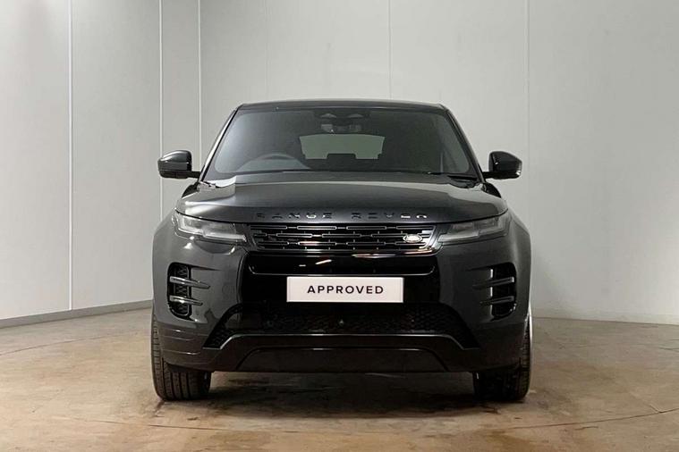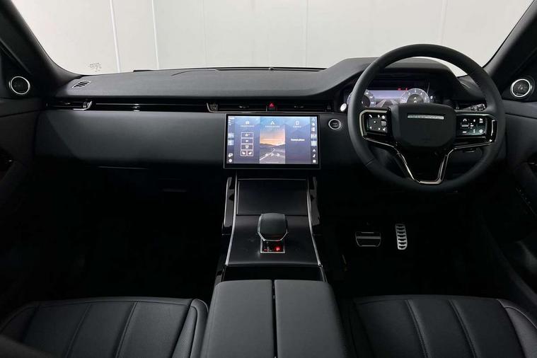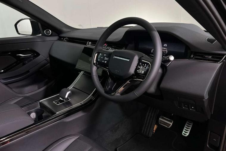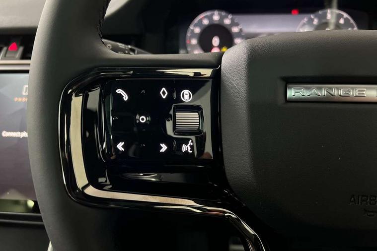 11.4" touch screen, 3D 360 degree surround camera with wade sensing, Adaptive cruise control, Android Auto, Apple car play, Blind spot assist, Bluetooth connectivity, Brake pad wear indicator warning light, Driver condition monitor, eCall emergency system, Eco mode, Electronic power assisted steering (EPAS), Front and rear parking aid, InControl remote, Interactive driver display, Land Rover InControl apps, Lane keep assist, Pivi pro connected includes diamond pivi variant, smart settings, connected navigation pro, nuance speech licence, Powered tailgate/boot lid, Rear collision monitor, Rear traffic monitor, Tailgate, Traffic sign recognition with adaptive speed limiter, Voice control system, Wireless device charging, All terrain progress control, Electric rear axle drive, Home charging cable, Large fuel tank, Passive suspension, Public charging cable, Terrain Response 2, Digital Audio Broadcast radio-DAB, Meridian sound system with 400W subwoofer and 11 speakers, Steering wheel mounted controls, Acoustic laminated windscreen, Auto dimming interior rear view mirror, Auto headlights, Auto high beam assist, Automatic headlight levelling, Black contrast roof, Electric windows with one touch open/close and anti trap, Fixed panoramic sunroof with powered sunblind, Flush deployable exterior door handles, Front and rear recovery eyes, Heated rear window with timer, Heated washer jets, Heated windscreen, LED headlights with signature DRL and LED tail Lights, Metallic paint, Power fold, auto-dimming, heated door mirrors with approach lights and auto dimming driver side, Privacy glass, Rain sensing windscreen wipers, Rear animated directional indicators, Rear fog lights, Rear side wing doors, Rear wiper, Tailgate spoiler, Third brake light, Winter wiper park position, 12 way driver memory and 10 way passenger electric front seats with 2 way manual headrest + 4 way lumbar support, 40:20:40 split folding rear seats with centre headrest and armrest, Bright metal pedals, Cabin lighting, Carpet mats, Chrome tread plates with range rover branding Includes stainless steel loadspace scuff plate with etched graphic, Customer configurable single point entry, Front and rear cupholders, Grained Leather upholstery, Heated front seats, Heated steering wheel, Isofix system on outer rear seats, Manually adjustable steering column, Overhead lighting console, Overhead stowage for sunglasses, Passive front head restraints, Rear air vents, Rear head restraints, Satin chrome gearshift paddles, Single passenger seat, Standard steering wheel with Moonlight Bezel, Sunvisors with illuminated vanity mirrors, Twin sliding front centre armrest, Two zone climate control, Black exterior styling pack - Evoque, Power socket pack 2 - Evoque, 3 rear 3 point seatbelts, Anti-lock braking system (ABS), Black brake calipers, Brake hold function, Customer configurable autolock, DSC - Dynamic Stability Control, Electronic brake force distribution, Electronic parking brake, Electronic traction control, Emergency braking, Front and rear seatbelt reminder, Hill descent control, Hill launch assist, Low traction launch, Occupant protection assist, Passenger seat occupant detector, Power operated child locks, Roll stability control, Six airbags - Driver and passenger airbags/driver knee airbag/front side airbag and curtain airbags, Torque vectoring brake, Tyre pressure monitoring system, Alarm, Immobiliser, Intrusion sensor, Keyless entry, Locking wheel nuts, Secure tracker pro, Black brushed aluminium finisher, 19" gloss black alloy wheels - Style 5136, All season tyres, Tyre repair system,