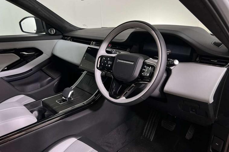11.4" touch screen, 3D 360 degree surround camera with wade sensing, Adaptive cruise control, Android Auto, Apple car play, Blind spot assist, Bluetooth connectivity, Brake pad wear indicator warning light, Driver condition monitor, eCall emergency system, Eco mode, Electronic power assisted steering (EPAS), Front and rear parking sensors with auto brake, InControl remote, Interactive driver display, Land Rover InControl apps, Lane keep assist, Pivi pro connected includes diamond pivi variant, smart settings, connected navigation pro, nuance speech licence, Powered tailgate/boot lid, Rear collision monitor, Rear traffic monitor, Tailgate, Traffic sign recognition with adaptive speed limiter, Voice control system, Wireless device charging, All terrain progress control, Diesel exhaust fluid (DEF) large tank, Efficient Driveline, Large fuel tank, Terrain Response 2, Digital Audio Broadcast radio-DAB, Meridian surround sound system with 650W subwoofer and 14 speakers, Steering wheel mounted controls, Acoustic laminated windscreen, Auto headlights, Automatic headlight levelling, ClearSight interior rear view mirror, Electric windows with one touch open/close and anti trap, Flush deployable exterior door handles, Front and rear recovery eyes, Heated rear window with timer, Heated washer jets, Heated windscreen, Pixel LED headlights with signature DRL and LED tail Lights, Power fold, auto-dimming, heated door mirrors with approach lights and auto dimming driver side, Rain sensing windscreen wipers, Rear animated directional indicators, Rear fog lights, Rear side wing doors, Rear wiper, Side repeater indicators in mirror, Sliding panoramic roof with powered sunblind, Tailgate spoiler, Third brake light, Winter wiper park position, 14 way driver memory electric front seats with 2 way manual headrests + 4 way lumbar support, bolsters, 40:20:40 split folding rear seats with centre headrest and armrest, Ambient interior lighting, Bright metal pedals, Carpet mats, Customer configurable single point entry, Electrically adjustable steering column with memory function and easy entry/exit, Front and rear cupholders, Heated steering wheel, Isofix system on outer rear seats, Overhead lighting console, Overhead stowage for sunglasses, Passive front head restraints, Rear air vents, Rear head restraints, Satin chrome gearshift paddles, Single passenger seat, Sunvisors with illuminated vanity mirrors, Twin sliding front centre armrest, Power socket pack 2 - Evoque, 3 rear 3 point seatbelts, Anti-lock braking system (ABS), Brake hold function, Customer configurable autolock, DSC - Dynamic Stability Control, Electronic brake force distribution, Electronic parking brake, Electronic traction control, Emergency braking, Front and rear seatbelt reminder, Hill descent control, Hill launch assist, Low traction launch, Occupant protection assist, Passenger seat occupant detector, Power operated child locks, Roll stability control, Six airbags - Driver and passenger airbags/driver knee airbag/front side airbag and curtain airbags, Torque vectoring brake, Tyre pressure monitoring system, Alarm, Immobiliser, Intrusion sensor, Keyless entry, Locking wheel nuts, All season tyres,