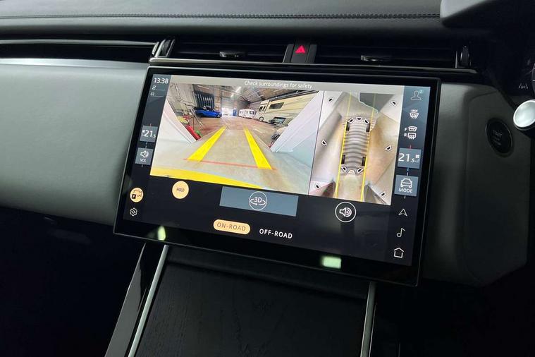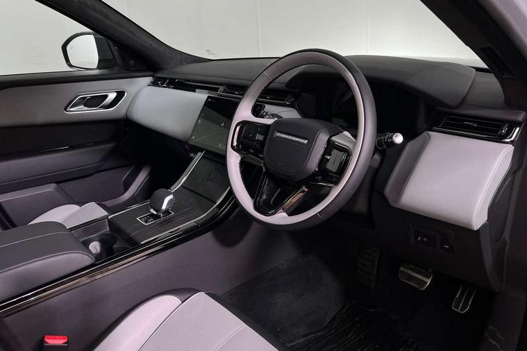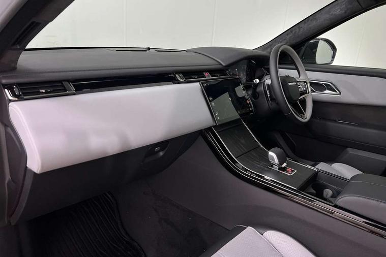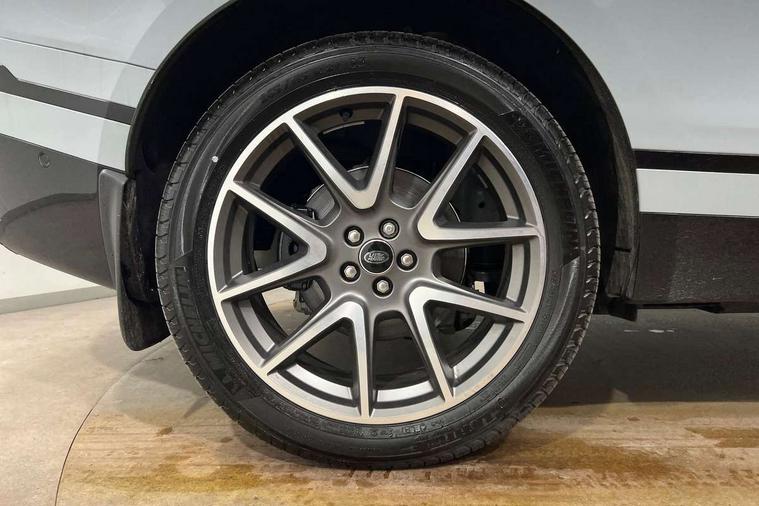 3D surround camera includes forward traffic detection and vehicle guidance, Adaptive cruise control with steering assist, Android Auto, Apple CarPlay, Blind spot assist, Bluetooth connectivity, Brake pad wear indicator warning light, Driver condition monitor, eCall emergency call system, Front and rear parking aid, InControl remote, Land Rover InControl apps, Lane keep assist, Pivi pro with connected navigation, Rear collision monitor, Rear traffic monitor, Service indicator, Speed proportional electronic power assisted steering (EPAS), Traffic sign recognition with adaptive speed limiter, Trip computer, Voice control system, Wade Sensing, Wireless device charging, 8 speed automatic transmission, Adaptive dynamics, All terrain progress control, Electronic air suspension, Open differential with torque vectoring by braking, Single speed transfer box, Terrain Response 2 with dynamic program, DAB radio, Steering wheel mounted controls, 3rd brake light, Acoustic laminated windscreen, Auto dimming interior rear view mirror, Autobiography badge, Automatic headlamp levelling, Automatic headlights, Black roof rails, Body coloured bumpers, Boot protection plate, Contrast bonnet in burnished copper & rear lettering, Electric windows with one touch open/close and anti trap, Flush deployable exterior door handles, Follow me home headlights, Heated rear window with timer, Heated washer jets, Heated windscreen, Metal load space scuff plates, Pixel LED headlights with signature DRL, Power fold, auto-dimming, heated door mirrors with memory and approach lights, Rain sensor windscreen wipers, Rear animated directional indicators, Rear fog lights, Rear side wing doors, Rear wash/wipe, Sliding panoramic roof with powered sunblind, Tailgate/boot lid spoiler, Trailer stability assist, Velar badge, 3 seat bench in 2nd row, Ambient lighting, Bright metal pedals, Carpet mats, Driver/passenger sunvisors with illuminated vanity mirrors, Ebony suedecloth headlining, Electrically adjustable steering column, Full extended leather upgrade, Heated steering wheel, Isofix system on outer rear seats, Loadspace cover, Overhead lighting console, Overhead stowage for sunglasses, Passive front headrests, Rear air vents, Rear centre headrest, Single front passenger seat, Twin front cupholders, Twin sliding front centre armrest, Online pack with data plan - Velar, Power socket pack 2 - Velar, 380mm front brakes and 325mm rear brakes, 3x3 point rear seatbelts, Anti-lock braking system (ABS), Cornering brake control, Curtain airbags, Customer configurable autolock, Door side intrusion beams, Driver airbag, DSC - Dynamic Stability Control, Electronic brake force distribution, Electronic parking brake, Electronic traction control, Emergency braking, Front and rear seatbelt reminder, Hill descent control, Hill launch assist, Low traction launch, Passenger airbag, Power operated child locks, Rear airbags, Roll stability control, Side airbags, Tyre pressure monitoring system (TPMS), Global lock and unlock switch on driver door, Immobiliser, Intrusion sensor, Keyless entry, Lock only switch on front passenger door, Locking wheel nuts, Perimetric alarm, Remote central locking, All season tyres,
