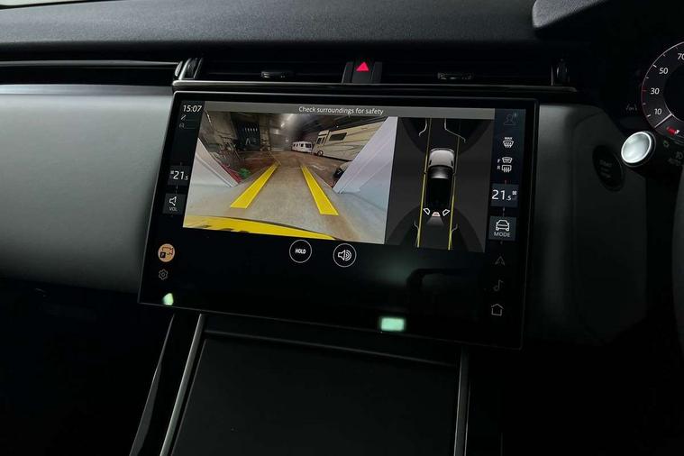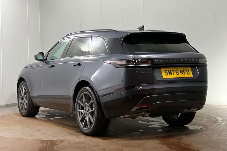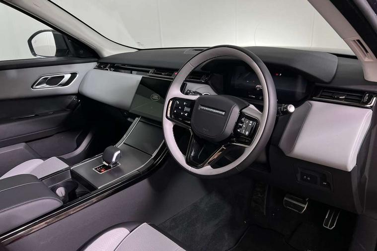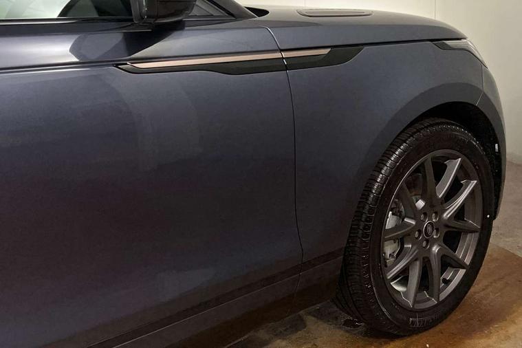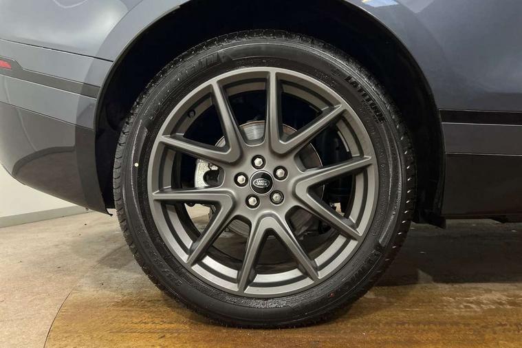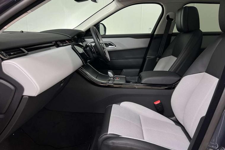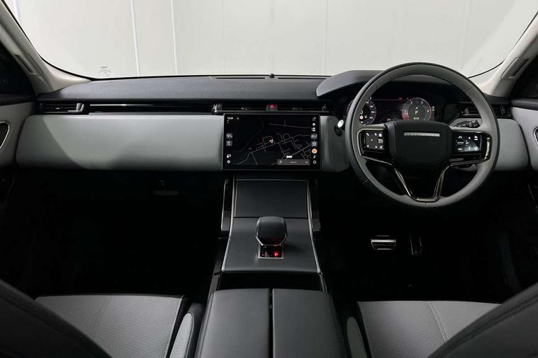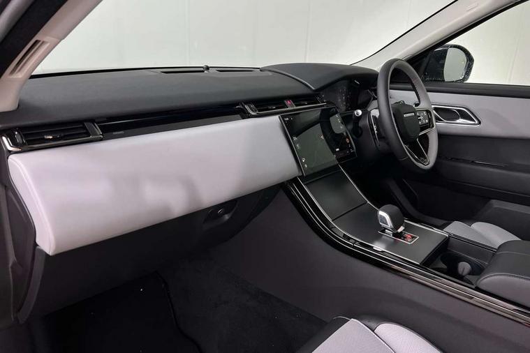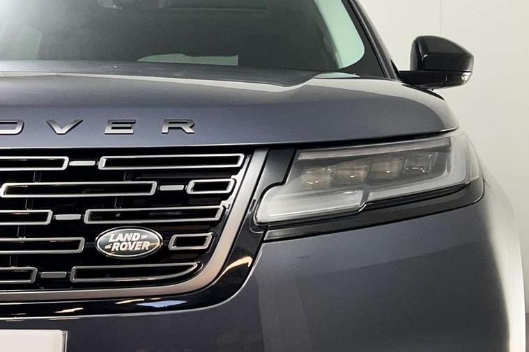 Adaptive cruise control with steering assist, Android Auto, Apple CarPlay, Blind spot assist, Bluetooth connectivity, Brake pad wear indicator warning light, Driver condition monitor, eCall emergency call system, Front and rear parking aid, InControl remote, Land Rover InControl apps, Lane keep assist, Pivi pro with connected navigation, Rear collision monitor, Rear traffic monitor, Service indicator, Speed proportional electronic power assisted steering (EPAS), Traffic sign recognition with adaptive speed limiter, Trip computer, Voice control system, Wireless device charging, 8 speed automatic transmission, Adaptive dynamics, All terrain progress control, Electronic air suspension, Open differential with torque vectoring by braking, Single speed transfer box, DAB radio, Steering wheel mounted controls, 3rd brake light, Acoustic laminated windscreen, Auto dimming interior rear view mirror, Automatic headlamp levelling, Automatic headlights, Body coloured bumpers, Boot protection plate, Electric windows with one touch open/close and anti trap, Flush deployable exterior door handles, Follow me home headlights, Heated rear window with timer, Heated washer jets, Heated windscreen, Metal front tread plates, Metal load space scuff plates, Pixel LED headlights with signature DRL, Power fold, auto-dimming, heated door mirrors with memory and approach lights, Rain sensor windscreen wipers, Rear animated directional indicators, Rear fog lights, Rear side wing doors, Rear wash/wipe, Tailgate/boot lid spoiler, Trailer stability assist, Velar badge, 3 seat bench in 2nd row, Ambient lighting, Bright metal pedals, Carpet mats, Driver/passenger sunvisors with illuminated vanity mirrors, Ebony morzine headlining, Electrically adjustable steering column, Extended leather upgrade, Heated steering wheel, Isofix system on outer rear seats, Loadspace cover, Overhead lighting console, Overhead stowage for sunglasses, Passive front headrests, Rear air vents, Rear centre headrest, Single front passenger seat, Twin front cupholders, Twin sliding front centre armrest, Online pack with data plan - Velar, Power socket pack 2 - Velar, 380mm front brakes and 325mm rear brakes, 3x3 point rear seatbelts, Anti-lock braking system (ABS), Cornering brake control, Curtain airbags, Customer configurable autolock, Door side intrusion beams, Driver airbag, DSC - Dynamic Stability Control, Electronic brake force distribution, Electronic parking brake, Electronic traction control, Emergency braking, Front and rear seatbelt reminder, Hill descent control, Hill launch assist, Low traction launch, Passenger airbag, Power operated child locks, Rear airbags, Roll stability control, Side airbags, Tyre pressure monitoring system (TPMS), Global lock and unlock switch on driver door, Immobiliser, Intrusion sensor, Keyless entry, Lock only switch on front passenger door, Locking wheel nuts, Perimetric alarm, Remote central locking, All season tyres,
