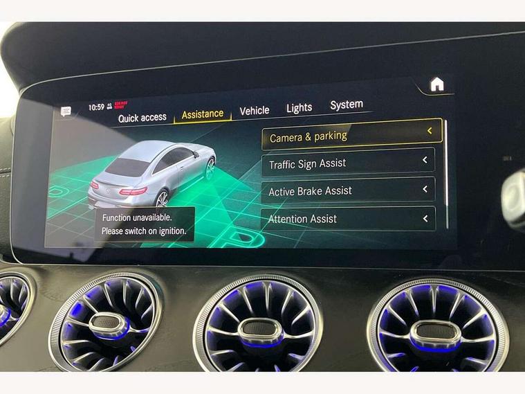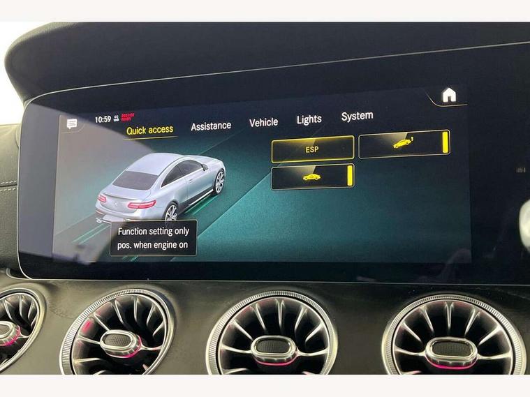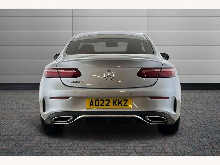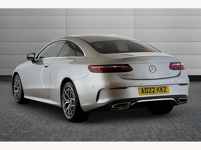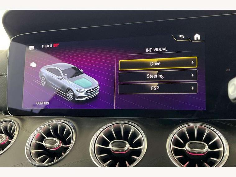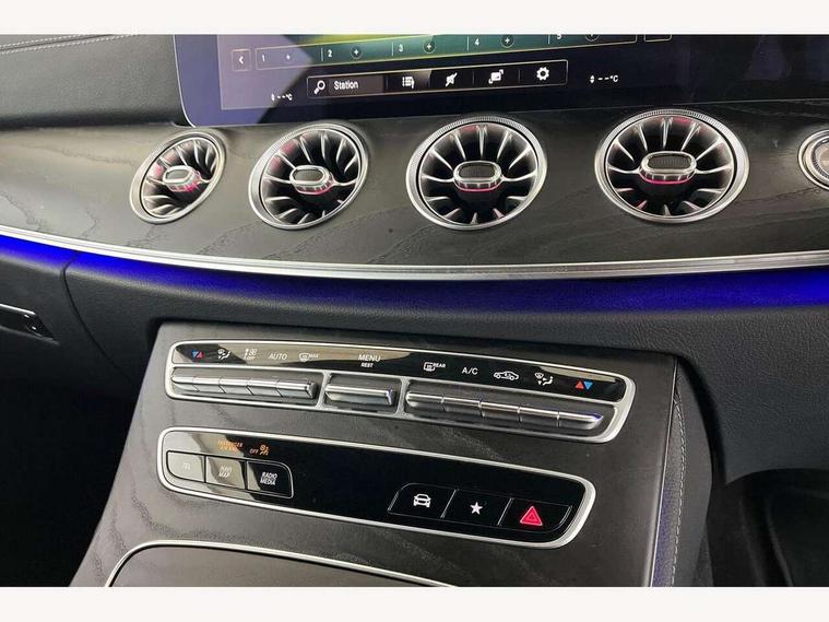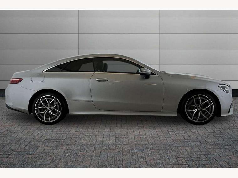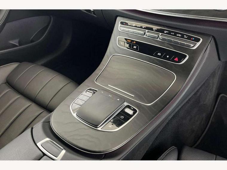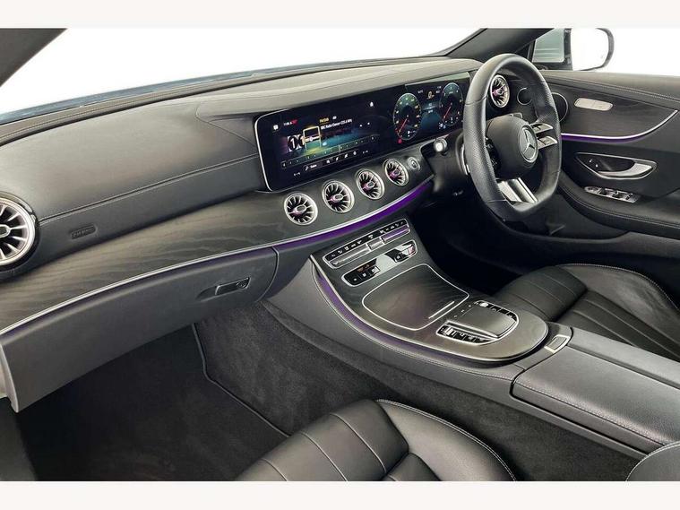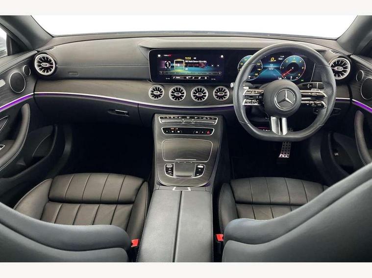 360 degree parking camera, Active parking assist including front and rear parking sensors, Analogue clock, Attention assist, Blind spot assist, Brake wear warning display, Cockpit display 12.3" widescreen digital instrument cluster, Collision prevention assist plus, Cruise control with variable speed limiter, Direct steer speed sensitive steering, DYNAMIC SELECT with a choice of driving modes (ECO, Comfort, Sport, Sport+ and Individual), E-call, ECO start/stop function, Hey Mercedes Voice activation, High resolution 12.3" multimedia colour display, Mercedes connect me, Outside temperature display, Pre-installation for Vehicle Monitoring, Pre-installation for Vehicle Setup, Remote boot release, Service indicator (ASSYST), Status display for rear seat belts in instrument cluster, Touchpad without controller, Traffic sign assist, Trip computer in multifunction display showing current fuel consumption, 25 litre AdBlue tank, 66 litre fuel tank, 9G TRONIC 9 speed automatic transmission, Agility control sports suspension with selective damping system, Diesel particulate filter, Incorrect fuelling protection, 2 USB ports in centre console, 2 USB ports in the rear, MBUX multimedia system with DAB digital radio and touchpad including satellite navigation, Smartphone integration via Android Auto/Apple CarPlay, Media Interface, USB and Bluetooth interface and touchpad with control wheel, Adaptive brake lights, AMG bodystyling front and rear aprons in polished aluminium, AMG boot lid spoiler in body colour, Body colour door handles, Body coloured bumpers, Daytime running lights, Electric windows with one touch opening/closing and obstruction sensors, Exterior mirrors heated and electronically adjustable, Illuminated front door sill panels with Mercedes-Benz lettering, LED high performance headlamps, Magic Vision Control heated windscreen wiper system, Pre-installation for roof rail systems, Privacy glass Includes rear side windows and rear windscreen, Radiator grille with integral star and 2 louvres in matt iridium silver with chrome trim, Radio aerial integrated into rear window, Rain sensing windscreen wipers, Rear boot, Rear LED lights, Third brake light, Top surround of side windows in polished aluminium, Visible twin pipe exhaust system integrated into bumper, Waistline in polished aluminium, 2 seat bench in 2nd row, 3-spoke flat bottom multifunction AMG steering wheel with Touch Control buttons, trimmed in black nappa leather, 40:20:40 split folding rear seats, Artico man-made leather upper dashboard and beltlines with contrast stitching, Automatic child seat recognition sensor, Belt feeder driver and front passenger seat belt automatically positioned within easier reach, Black door pins, Black roof lining, Central stowage compartment with 12 V socket in centre console, Central stowage compartment with USB socket for use with Android Auto and Apple CarPlay, Centre armrest and door handle illumination, Centre console in black open-pore ash wood, Floor mats with AMG lettering, Front and rear door pockets, Front centre armrest with stowage compartment, Front footwell lights, Glasses compartment in overhead control panel, Glove compartment - lockable, air conditioned and illuminated, Head restraints for driver and front passenger (four-way adjustability) and in rear (two-way), Heated front seats, Interior lighting - 64 colour Ambient lighting, Interior rear light/integral reading lights, Isofix rear child seat fastenings, Leather upholstery, Multi contour front sports seats, Seat occupancy sensor for front passenger seat, Single front passenger seat, Sports pedals in brushed stainless steel with black rubber studs, Steering column manually adjustable for height and reach, Steering wheel gearshift paddles, Sunvisors with illuminated vanity mirrors, THERMOTRONIC automatic climate control system with 3 climate zones, Mirror pack - E Class, Seat comfort pack - E Class, Stowage pack - E Class, 2 x 3-point rear seatbelts, Active bonnet pedestrian safety measure which detects an impact and raises bonnet, Active brake assist, Adaptive brake system with HOLD function and brake drying in the wet, Adaptive driver and front passenger airbags, Airbags - sidebag for driver and front passenger with combined thorax/pelvis bag, Anti-lock braking system (ABS), Drivers knee airbag, Electric parking brake, Electronic Stability Programme, Front and rear window airbags, Head airbags, Hill hold function, Perforated front brake discs with "Mercedes-Benz" lettering, Pre-Safe anticipatory safety system, Seatbelt warning, Tyre pressure monitoring system, Warning triangle and first aid kit, Alarm system/interior protection/immobiliser, Central locking with interior switch, automatic locking and crash sensor with emergency opening function, Chrome surround in electric key, Keyless Go entry and starting function, Open-pore black ash wood trim, 19" AMG 5 twin spoke alloy wheels in tantalite grey with high sheen finish (RZI), Run flat tyres,