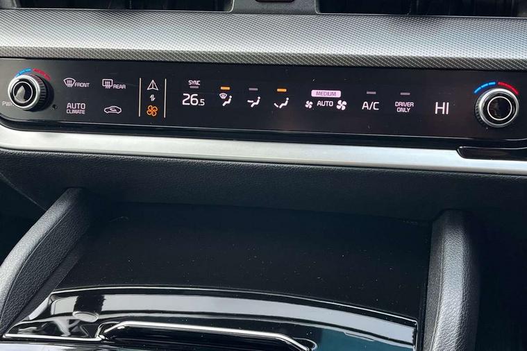 12.3" Display with navigation, 12.3" supervision colour cluster display, 360 degree around view monitor, Apple car play/Android Auto with voice control, Blind spot collision avoidance assist, Blind spot view monitor, Drive mode selector, E-call, Forward collision avoidance assist (FCA) - city/pedestrian/cyclist/junction covering, Front and rear parking sensors, Highway Driving Assist (HDA), Intelligent speed limit assist, Kia Connect (UVO), Lane Following Assist (LFA), Lane keep assist, Low washer fluid warning, Parking collision avoidance assist (PCA), Remote smart parking assist, Reversing camera system integrated into centre fascia screen, Smart cruise control with stop and go functionality, Smart power tailgate, Speed sensitive power steering, Trip computer, Windscreen washer level indicator, Wireless Smartphone charger, Intelligent Stop and Go, Terrain mode select (Mud, Snow, Sand), Bluetooth audio streaming, DAB Radio with MP3, Harman Kardon premium sound system, Rear USB port, Steering wheel mounted audio controls, USB C type charging ports on centre console, USB C type charging ports on side of front seats, USB port for connection of a media device, All round electric windows with drivers and front passenger auto up/down function, Automatic headlight control system, Automatic window defogger, Backlite glass heated with timer, Body colour and black bumper with silver accents, Body colour exterior door handles, Body colour radiator upper garnish and door garnish, Dual LED adaptive headlamps, Electric panoramic glass sunroof (Electric one touch with safety function), Electrically adjustable/heated/folding door mirrors with LED indicators, Front and rear chrome skid plates, Gloss black door mirrors, Gloss black radiator grille, Gloss black side sill and wheel arch body mouldings, Glossy black roof rack, High beam assist, Interior electrochromic mirror, LED daytime running lights, LED front fog lamps, LED High mounted stop light, LED rear combination lamp, Rain sensing wipers with aero blades, Rear fog lamp, Rear privacy glass, Rear side wing doors, Rear spoiler, Rear wiper, Satin finished beltline, Trailer stability assist, 10 way driver/8 way passenger electrically power adjustable seats, 12V power socket in front centre fascia and luggage compartment, 3 seat bench in 2nd row, 3 x passenger assist grips, 40/20/40 split folding rear seat, All-round height adjustable headrests, Ambient lighting, Black headlining, Centre console storage box, Cupholders in rear armrest, D-Shaped sports leather steering wheel and perforated inserts with GT-Line logo, Door courtesy lamps, Drink holder at centre armrest, Driver and front passenger side sunvisors with illuminated vanity mirrors, Driver seat memory function, Drivers seat power lumbar support, Front and rear door storage, Front seat and rear pockets, Front/rear centre armrests, Gear shift indicator, Glovebox illumination, Heated front and outer rear seats, Heated steering wheel, Interior door lock/unlock function, ISOFIX Child seat top tethers and anchor fixings outer rear seats, LED interior personal lamp, LED lighting in overhead console, Luggage area LED light, Luggage area load cover, Luggage net with hooks, Metal paint interior door handles, Paddle shift controls, Rear coat hooks, Single front passenger seat, Sports pedals, Suede leather upholstery, Three zone climate control, Tilt/telescopic adjustable steering wheel, Ventilated front seats, Ventilation ducts to rear compartment, Active front headrests, All round 3-point seatbelts, Anti-lock braking system (ABS), Dual front side airbags, Dual horn, Electronic parking brake, Electronic stability control with downhill brake control, Front passenger airbag cut-off switch, Front seatbelt pretensioners + load limiters, Height adjustable front seatbelts, Hill start assist control (HAC), Impact sensing auto door unlocking, Multi collision brake assist, Rear door child safety locks, Rear seat alert system, Traction control, Twin curtain airbags, Twin front airbags, Tyre pressure monitoring system, Advanced anti-theft system including immobiliser and alarm, Door deadlocks, Engine Start/Stop Button with Smart Entry System, Locking wheel nuts, Speed sensitive auto door locking, Visible vehicle identification number, Aluminium pattern finish centre fascia and door garnish, 19" Alloy wheels, Michelin tyres, Tyre mobility kit,