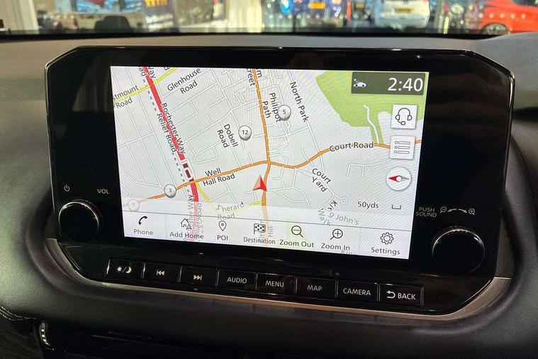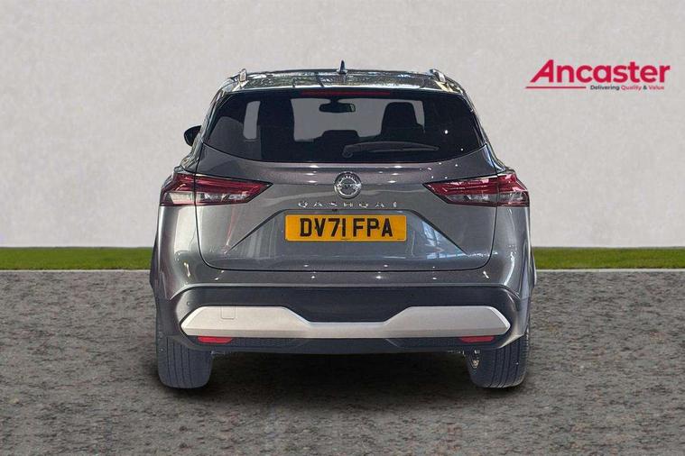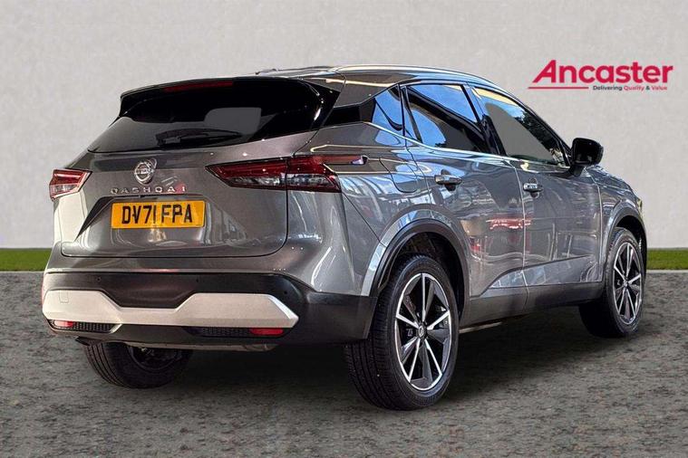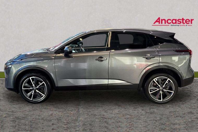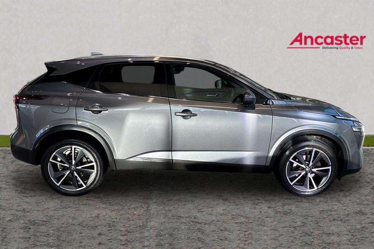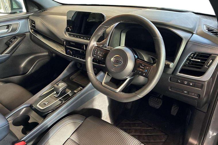 Blind spot warning, Drive modes (sport, normal, eco), Electric speed sensitive power steering, Emergency and breakdown call, Front and rear parking sensors, Full Digital 12.3" TFT Digital Combimeter, Hands free power tailgate, Idle stop/start system, Intelligent Cruise control (ICC), Intelligent driver alert system, Intelligent forward collision warning, Intelligent lane intervention, Lane departure prevention, Lane departure warning system, Moving object detection, Push button starter, Rear cross traffic alert, Traffic sign recognition with legal speed adjustment, Trip computer, 6 speakers, AM/FM audio system with DAB, Bluetooth audio streaming, Front USB connections (Type-A and Type-C), Rear USB charging only ports (Type-A and Type-C), Auto dimming rear view mirror, Auto rear wiper when reversing, Body colour mirror caps, Body coloured door handles, Bodyside mouldings, Chrome side window finisher, Electric auto folding door mirrors, Electrically adjustable and heated door mirrors with LED turn indicator, Fixed panoramic glass roof with electric sunshade, Follow me home headlights, Intelligent auto headlights, LED daytime running lights, LED signature rear lights, One touch front and rear electric windows with remote opening and closing, Partially body coloured bumpers, Privacy glass, Rear roof spoiler, Rear styling plate, Roof rails, Shark fin antenna, Splash free rain sensing wipers, Super UV and infrared cut glass, Three blink turn signal, 12v power socket in dashboard and luggage, 2 way electrical driver lumbar adjustment, 2x Rear coat hooks, 3 rear headrests, 4 grab handles, 6 Luggage hooks - 4 on floor, 2 on side, 60/40 split folding rear seat, 8 way electric adjustable drivers seat, Ambient lighting around centre console, Ambient lighting in front doors, Centre console storage tray, Chrome interior door handles, Cloth/syntech leather monoform upholstery, Dark headlining, Driver and front passenger sunvisors with illuminated vanity mirrors, Driver seat back pocket, Dual zone automatic climate control with pollen filter, Front centre console and armrest, Front cupholder, Front door with bottle holders, Glovebox with light, Hard trunk cover, Height adjustable front headrests, Leather steering wheel, Luggage board system, Luggage space lighting, Manual lumbar support on passenger seat, Manually adjustable passenger (slide recline + lifter), Multifunction steering wheel, Passenger seat back pocket, Rear armrest with 2 cupholders, Rear door bottle holders, Soft PVC kneepad, Steering wheel gearshift paddles, Steering wheel switches, Tilt/telescopic adjustable steering wheel, Two rear isofix child seat anchorage points with top tether, Welcome light and doors with console tray ambient lighting, Heat pack - Qashqai, Tech Pack (ProPILOT + HUD), 3x3 point rear seatbelt pretensioners + load limiters, ABS, ESP, EBD and brake assist, Active brake limited slip, Auto hold function, Child locks on rear doors, Curtain and front side, far side airbags, Driver and passenger airbags, Driver, passenger and 2nd row rear seat belt reminder, Electronic parking brake, Front seatbelt pretensioners + load limiters, Height adjustable front seatbelts, Hill start assist, Intelligent blind spot intervention, Intelligent front emergency braking with pedestrian, cyclist recognition and junction assist, Intelligent rear automatic braking, Tyre pressure monitoring system, Vehicle dynamic control, Capless fuel filler, Engine immobiliser, Nissan i-key, Remote central door locking with deadlocking, Thatcham Cat.1 alarm, 19" Alloy wheels,