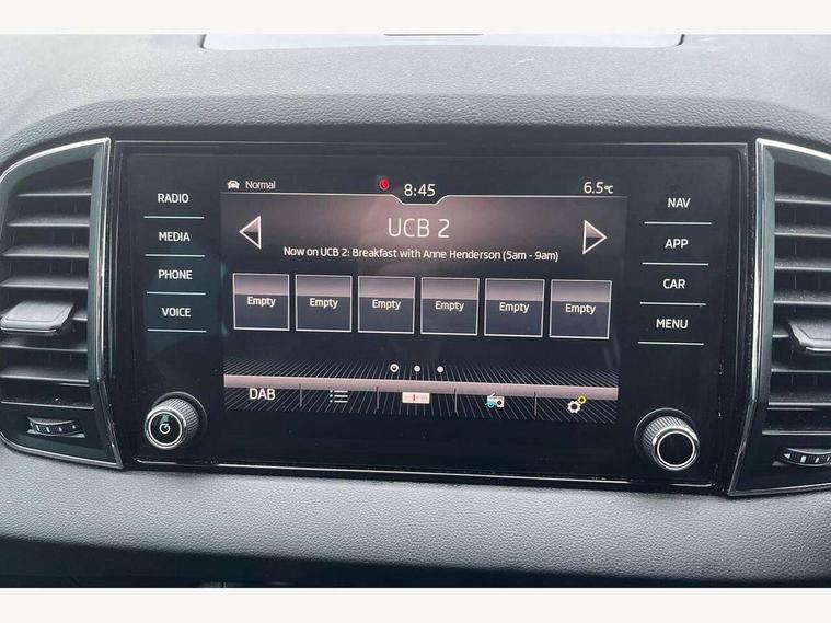 Driver alert system, Driver fatigue sensor, Driver profile selection, Electro-mechanical PAS, Front and rear parking sensors, Multifunction colour trip computer, Outside temperature gauge, Rear view camera, Service interval indicator, Start/stop system with regenerative braking, DAB radio with Bluetooth, SD card slot, USB connection, Acoustic glass, Aero front windscreen wipers with intermittent function, Automatic headlight control system, Body colour door mirrors and handles, Body coloured bumpers, Chrome outside aluminium bar around the window, Chrome roof rails, Full LED headlights + adaptive front light system + LED daytime running lights and front cornering fog lights, Headlight washers, Heated rear windscreen, LED rear lights with high functionality, Light assistant (coming/leaving home/tunnel light), Privacy glass, Safety reflectors on front doors, Third brake light, 1.5 litre bottle holders in driver and front passenger door panels, 12V socket in boot, 12v socket in front centre armrest with storage compartment and rear air vents, 2 Folding hooks and nets in boot, 2 Front readings lights for driver and passenger, 3 rear height adjustable headrests, 4 foldable roof handles with rear coat hooks, 4 lashing points on luggage floor, Backrest release, Cargo elements in boot, Chrome inner door handles, Dual zone climate control, Folding tables on the front seat backrests, Front seat and rear pockets, Height adjustable front three point seats belts with tensioners, Height adjustable passenger seat, Height/reach adjust steering wheel, Ice scraper, Illuminated and cooled glovebox, Illuminated luggage compartment, Isofix child seat preparation outer rear, Net programme in boot, Pen holder, Pollen filter, Rear boot cover, Rear reading lights, Rear seats fixed folding and divided 60:40, Removable LED torch in the boot, Retractable parcel shelf attachable to tailgate, Safety vest holder, Storage box in upper central dashboard closed, Storage compartment below the passenger seat, Storage net on centre console passenger side, Sunglasses storage compartment, Sunvisors with illuminated vanity mirrors, Textile floor mats, Umbrella under passenger seat, VarioFlex seats with retractable parcel shelf, Airbags - Front side, head, knee and curtain, Automatic door unlocking in case of crash, Automatic fuel cut off in case of crash, Driver airbag, Electronic parking brake with auto hold function, Emergency rear braking signal, ESC including ABS, MSR, ASR, EDS, HBA, DSR, RBS, MKB and traction control, Front assist radar scanning of the space in front of the car with automatic braking, Hill hold control, Passenger airbag with switch-off function, Pedestrian monitor, Seatbelt reminder signalisation and pretensioner for all seats, Three point seatbelts rear, Two tone horn, Tyre pressure display, Tyre pressure monitor, Alarm with interior monitoring, back up horn and tilt sensor with safe function, Electronic engine immobiliser, Keyless entry and keyless start with safe system, Remote central locking with 2 remote folding keys, Chrome framed air vents, Storage on wheel cover,