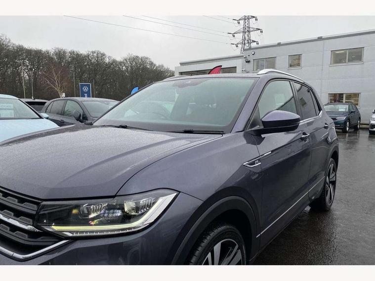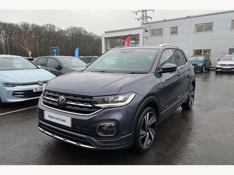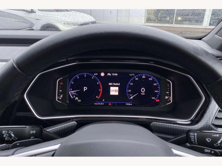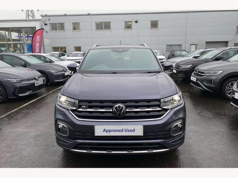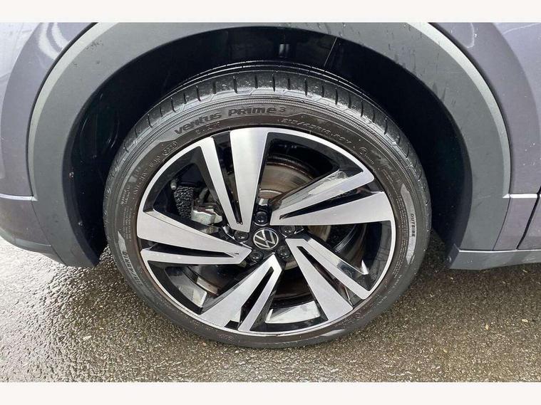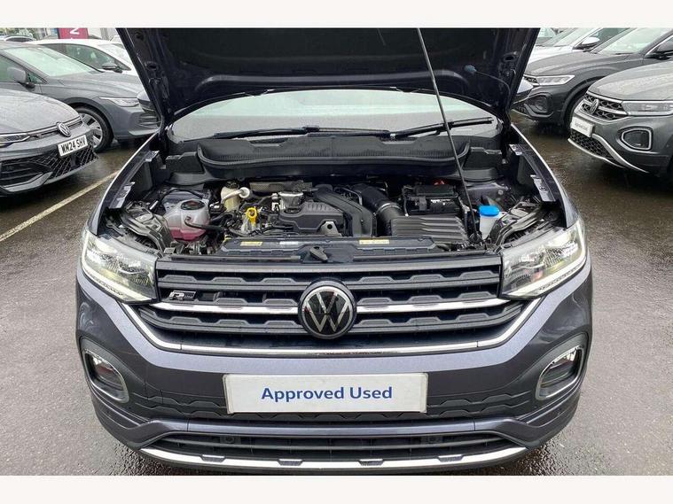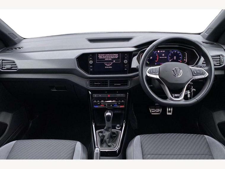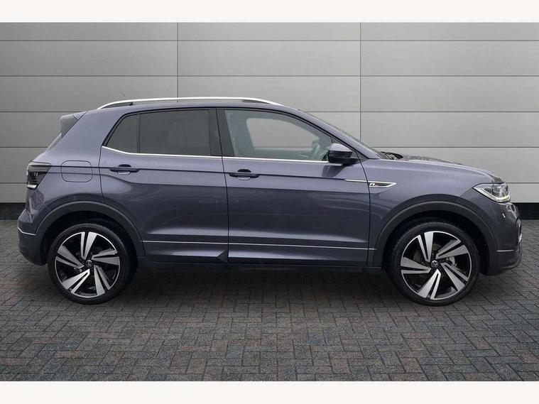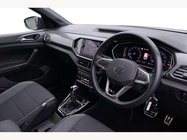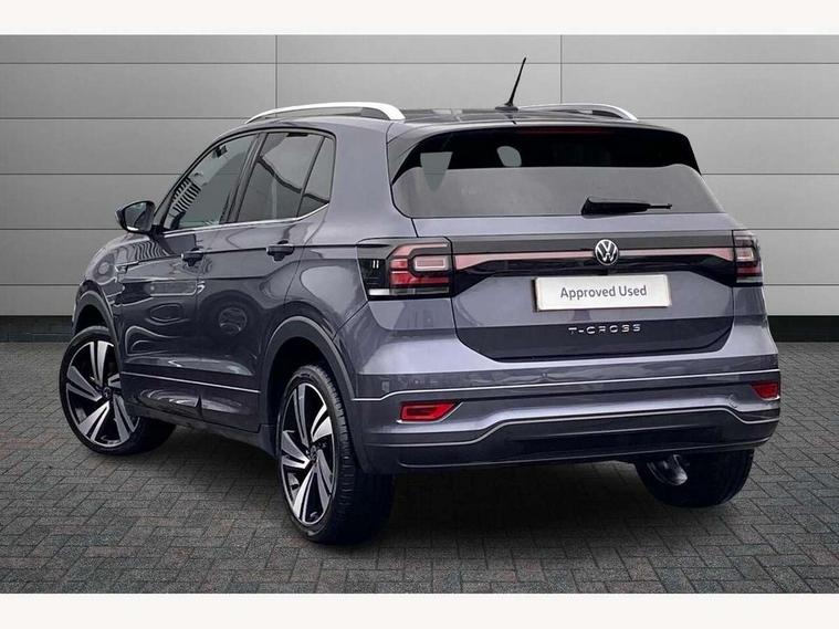 'Lights On' Reminder warning buzzer, 2D/3D map view, Active info display - 10.25" High resolution TFT dash display screen, Adaptive cruise control including front assist, forward collision warning, autonomous emergency braking, speed limiter, Blind spot monitoring, Bluetooth telephone and audio connection for compatible devices, Car information display, Driver alert system, eCall emergency call system, Lane assist, Low washer fluid warning light, Multifunction computer with visual gear change recommendation for fuel consumption, Operating permit alteration, Power assisted speed sensitive steering, Speed limit display, Speedo, rev counter, electronic odometer, trip, service interval display, exterior temperature and fuel gauge, Stop/start system, Tailgate, Warning sound and light for doors and tailgate open, Warning sound and light for front seatbelts unfastened, We connect plus preparation, Wireless Car net app connect with Apple CarPlay, combined functionality of Apple CarPlay/Android Auto and MirrorLink, Battery regeneration during braking, Misfuel prevention device, 2x USB connection with USB charging sockets and in rear centre console, DAB Digital radio receiver, Diversity antenna for FM reception, Multi device interface (MDI) with USB connection, Music playback - MP3, WMA and AAC files, Premium USB cable for Apple or Android smartphone compatibility, Simultaneous pairing of 2 compatible mobile devices, SMS Functionality, Three route options - Fast, Short, Eco, Title and cover art display, Automatic hazard lights activation under emergency braking, Body colour door handles, Body colour door mirrors with integrated indicators, Body colour rear roof spoiler, Body coloured bumpers, Dusk sensor + automatic driving lights, Electrically foldable, adjustable and heated door mirrors with reverse activated kerb view adjustment on passenger's side, Front and rear electric windows, Front fog lights with static cornering function, Galvanised body, Heated rear window, LED third brake light, Lower door sills and door pillars in black, Radiator grille with chrome trim and chrome bezel front fog lamp, Rear fog light on one side, reversing light on both sides, Rear lights incorporating LED technology, Rear side wing doors, Rear tinted glass 65% approx light absorbing from B pillar backwards, Rear window aerial, Rear windscreen washer and wiper with interval delay, Reflectors in all doors, Silver roof rails, Stainless steel door sill protection, Tailgate with integrated roof spoiler, Unique R Line badging, Windscreen wipers/ intermittent wipe + 4 position delay, 12V Accessory socket in centre console, 2 Front and rear reading lights incorporating LED technology, 2 Zone electronic climate control with automatic air recirculation, 3 rear head restraints and 3 rear three point seat belts with ECE label, 3 seat bench in 2nd row, 60/40 split folding rear seat backrest, Ambient lighting and sourround lighting, Black headlining, Branded points of interest, Brushed stainless steel pedals, Carbon flag cloth upholstery, Drawer under drivers seat, Driver and front passenger sunvisor with vanity mirror, Driver's sunvisor with ticket holder, Dust and pollen filter, Front and rear carpet mats with contrast stitching, Front centre armrest with storage compartment, Front footwell illumination, Front seat back storage pockets, Front seat R Line logo with rear seat backrest, Front sports seat with height and lumbar adjustment, Glovebox, Heating and fresh air system with 4 stage blower, Height/reach adjust steering wheel, Instrument lighting white adjustable panel illumination, Interior light with delay, Isofix child seat preparation for 2 rear child seats, Leather trimmed three spoke multifunction steering wheel with contrast stitching and aluminium inserts with R Line logo, Luggage compartment cover, Luggage compartment lighting, Moveable and foldable Rear bench seat, Scuff plates in door apertures, Steering wheel paddle shift, Storage compartment in drivers and front passengers door, R Line styling pack - T-cross, 3-point seat belts in front with electric tensioner + height adjustment, Anti-lock Braking System (ABS) with Hydraulic Brake Assist (HBA), Automatic post collision braking system, Driver and front passenger safety-optimised head restraints, Drivers and Front Passengers airbags with front passengers airbag deactivation switch, ESC with EDL, ASR, EDTC and trailer stabilisation function, Front and rear curtain airbags, Front seat side impact airbags, Hill start assist, Pre crash preventive occupant protection, Proactive passenger protection system in combination with front assist, Rear door child safety locks, Rigid safety cell with front and rear crumple zones, Single torn horn, Tyre pressure loss indicator, Volkswagen roadside assistance, Alarm with interior protection and deactivation via infotainment system, Child security locks in rear doors, Electronic engine immobiliser, Remote tailgate unlocking using key fob, Race decorative inserts in dash and doors, 18" Nevada black alloy wheels, Breakdown kit,