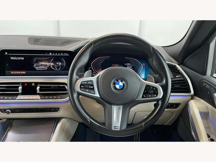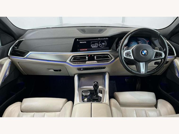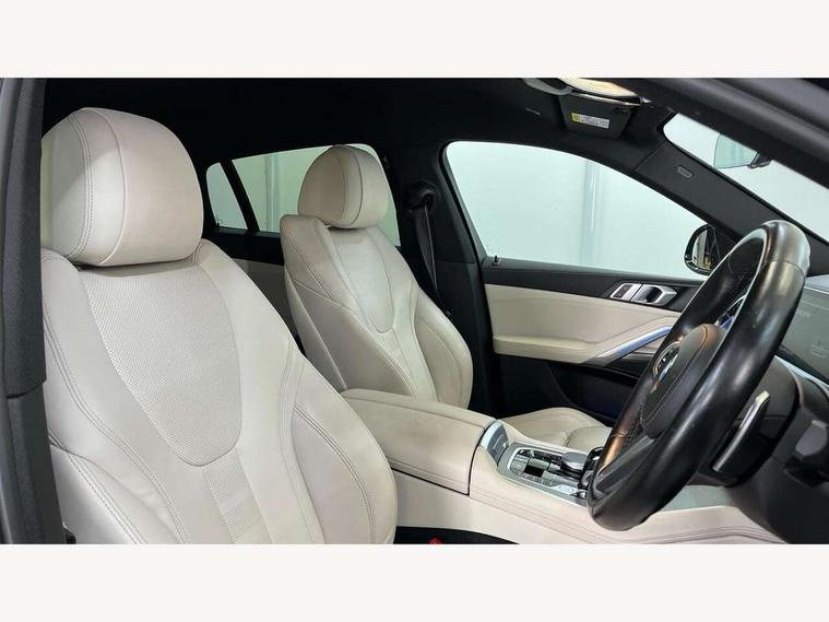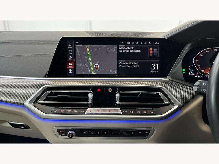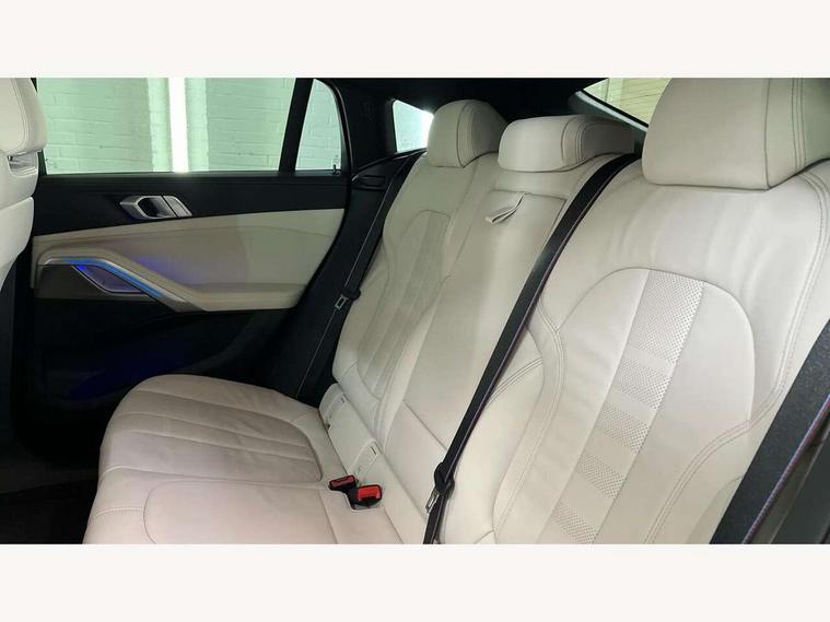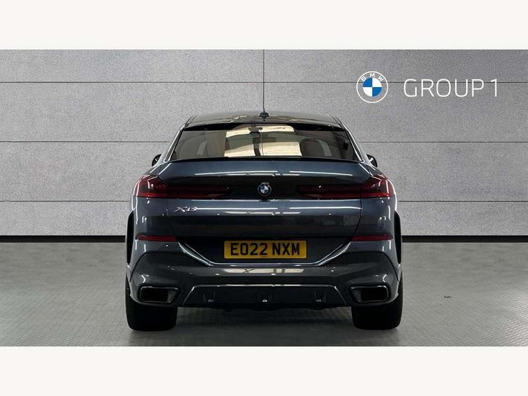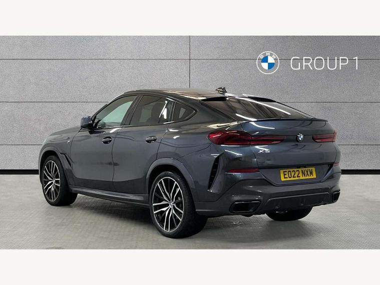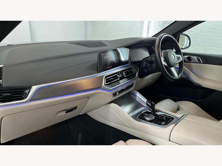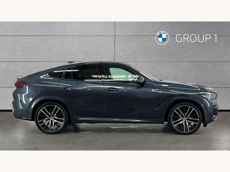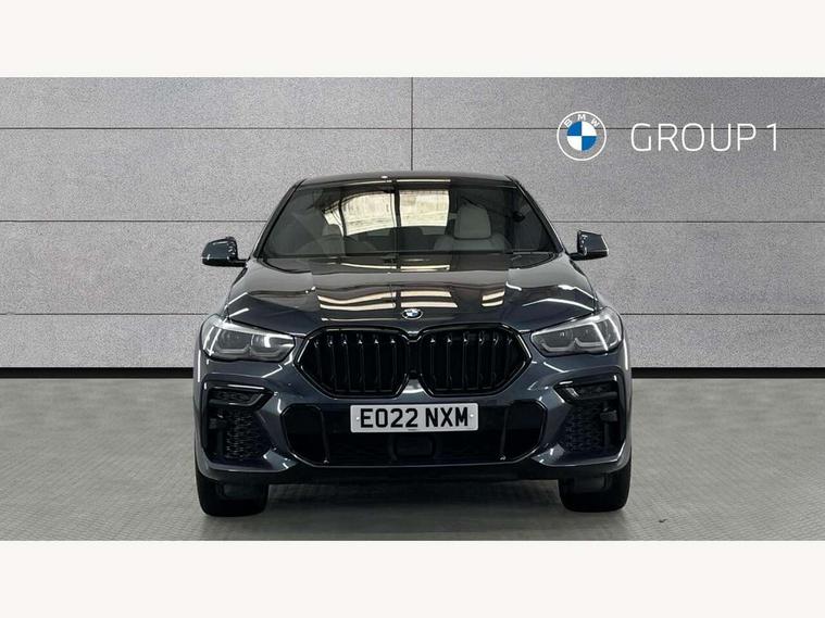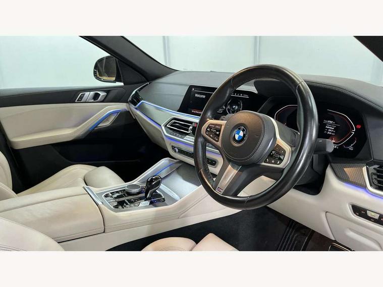 50GB hard disc drive (HDD) memory, Active guard plus, Attentiveness assist, Automatic tailgate two part with top hinged section open and manual bottom hinged section, BMW ConnectedDrive online services, BMW digital live cockpit professional - 12.3" digital instrument panel and 12.3" CID, with touch/voice command, BMW legal emergency call, BMW Teleservices, Brake force display, Brake pad wear indicator warning light, Cruise control with brake assist, Enhanced bluetooth with wireless charging, Front/rear park distance control (PDC), iDrive controller with shortcut buttons, Lights on warning, Oil sensor for level and grade, On board computer inc. average speed, fuel consumption, liquid crystal Info display, journey computer, outside temperature display, personal profile, Service interval indicator, Speed limit info display, Speed limiting function, Wifi hotspot preparation, 48V Mild hybrid technology, Diesel particulate filter, Double wishbone front axle, Drive performance control with ECO PRO comfort + sport mode, Eight speed steptronic sport automatic transmission and gearshift paddles on the steering wheel, Safety battery terminal clamp, Variable vane geometry, DAB Tuner enables digital radio reception, Favourite buttons, USB connection, USB type A 1.5A in cupholder, USB Type C 3A in centre armrest, Active Air Stream kidney grille with high-gloss chrome, Adaptive air flap control bar in high-gloss black, Automatically dimming rear view mirror, BMW individual exterior line aluminium satinated window frame and window guide rail in front door/pillar trim/door mirrors in high gloss black, BMW Individual high gloss shadow line, Body colour bumpers, Body colour door handles, Dynamic brake lights with LED technology, Exhaust tailpipes - single, left and right with Chrome finisher, Follow me home headlight function, Front and rear electric windows with open and close fingertip control, anti trap facility and comfort closing, Heated windscreen washer jets, High beam assistant, High gloss black outer and central air intakes on front bumper with pearlescent chrome finish, High gloss black Side elements, LED daytime running lights, LED rear lights, M aerodynamic body styling, M designation on left and right front side panels, M Sport exhaust system, Rain sensor with automatic headlight activation and windscreen wiper control, Rear side wing doors, Satin aluminium side window graphic, Third brake light in rear spoiler, Welcome light carpet, X6 on left tailgate, xDrive designation on right tailgate, 12V - Power sockets with 2x centre console and 1x luggage compartment, 3 seat bench in 2nd row, 40:20:40 split folding rear seats, Centre and rear interior light, Child seat ISOFIX attachment with rear outer seats includes top tether, Compartment in front of cupholder, Electrical steering column with adjustable height and length with activation and control on the steering column, Foldable rear centre armrest with 2 cupholders and storage compartment, Front and rear cupholders x 2, Front and rear door pockets, Front and rear door sill inlays with illuminated BMW M designation, Front and rear side armrest integrated into door trim, Front reading lights, Light inside glove compartment, Lockable glove compartment, Luggage compartment floor panel with integral storage tray, Luggage compartment lighting, M specific key, M specific velour floor mats, M sport leather steering wheel, Make-up mirror lights, Multifunction controls for leather steering wheel, Multifunctional hooks, Rear head restraints, Seat back with flap pocket, Single front passenger seat, Storage tray and compartment with cover in centre console, Sunvisors with illuminated vanity mirrors, Toolkit located in luggage compartment, Ambient light interior pack - X6, Connected Package Professional - X6, Expanded exterior mirror pack with electric folding door mirror - X6, Non-smokers pack - X6, 3 rear seatbelts, Airbags - driver/front passenger, rear and side, first and second row seats head airbags, front passenger seat airbag deactivation + knee airbag, Anti-lock braking system (ABS), Automatic Stability Control (ASC), Brake drying, Brake energy regeneration, Brake fade compensation, Braking pre-tensioning, Child proof locking system in rear door, Cornering brake control (CBC), Crash sensor activating central locking release, hazard warning lights, fuel cut off, interior lighting + activation of safety battery terminal clamp, Deformation zones - front and rear with door reinforcements and bumpers up to 2.5 mph, DSC - Dynamic Stability Control, Dynamic brake control, Dynamic Traction Control - DTC, Electromechanical parking brake with automatic drive away release and auto hold function, Electronic brake force distribution, Front and rear brake discs with interior ventilation, Front and rear seatbelts with seatbelt stopper, seatbelt tensioner for front and outer rear seats and belt force limiter, Front head restraints with anti-whiplash, Hill start assistant, Integrated brake system, M Compound brake in high gloss blue, M Sport braking system, Mechanical child proof lock on rear doors, Passive protection for pedestrians, Seat occupancy detection for driver and passenger side, Side impact protection, Two tone horn, Tyre pressure monitoring system, Warning triangle and first aid kit, Closing system with central locking, Driver and front passenger door centre lock switch, Locking wheel bolts, Thatcham 1 alarm system with remote control and engine immobiliser, Start/stop toggle diamond shaped trim finisher in pearl chrome,