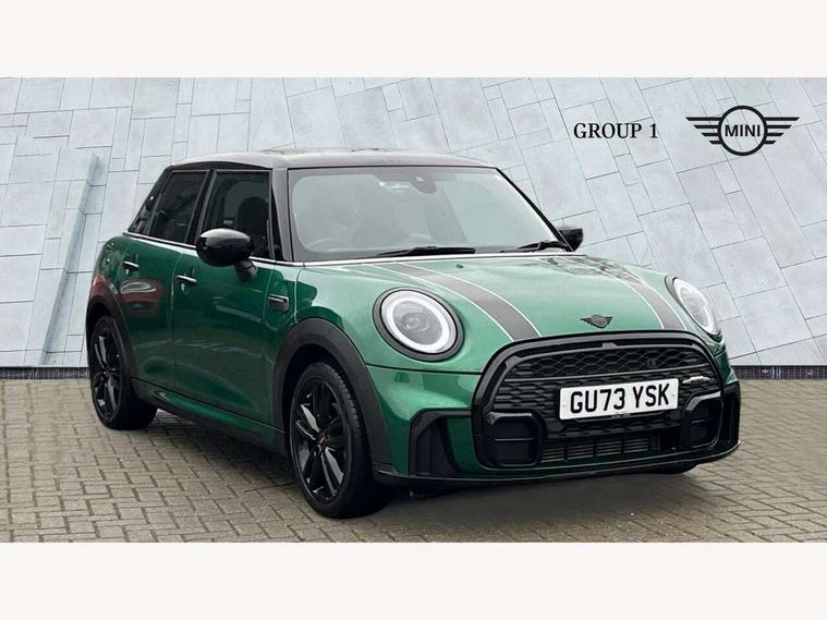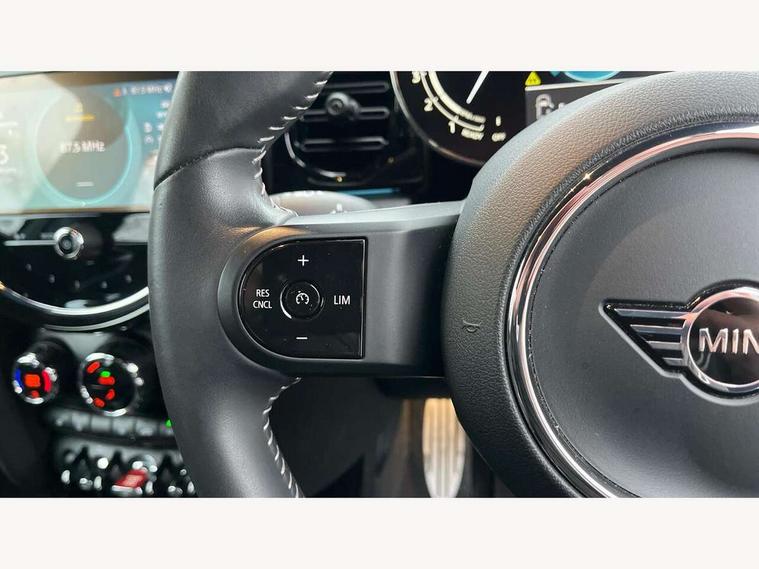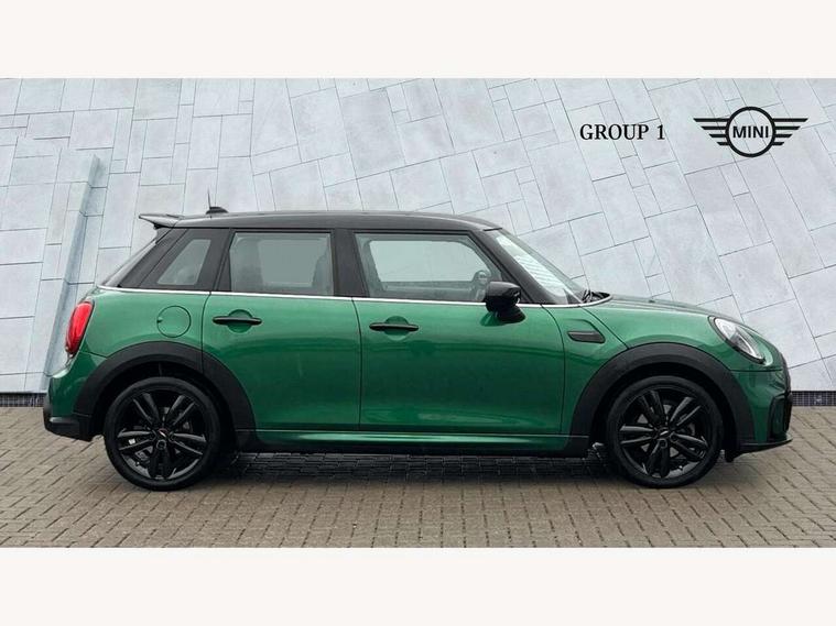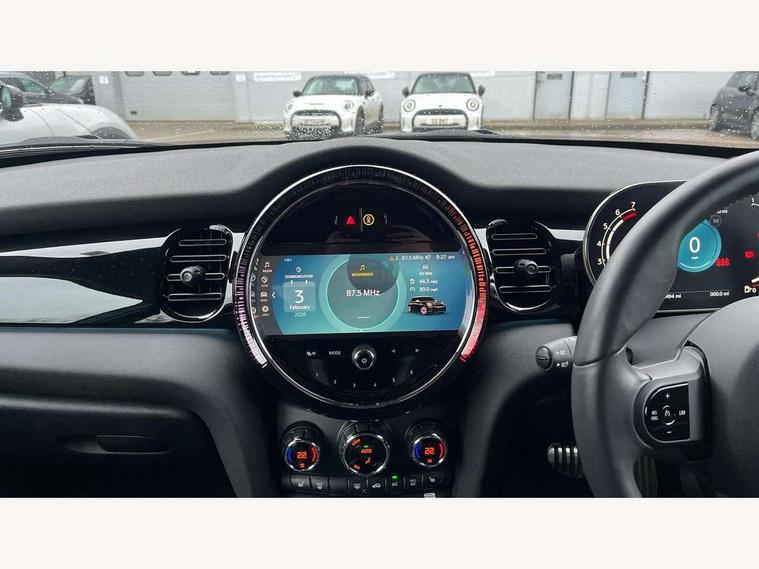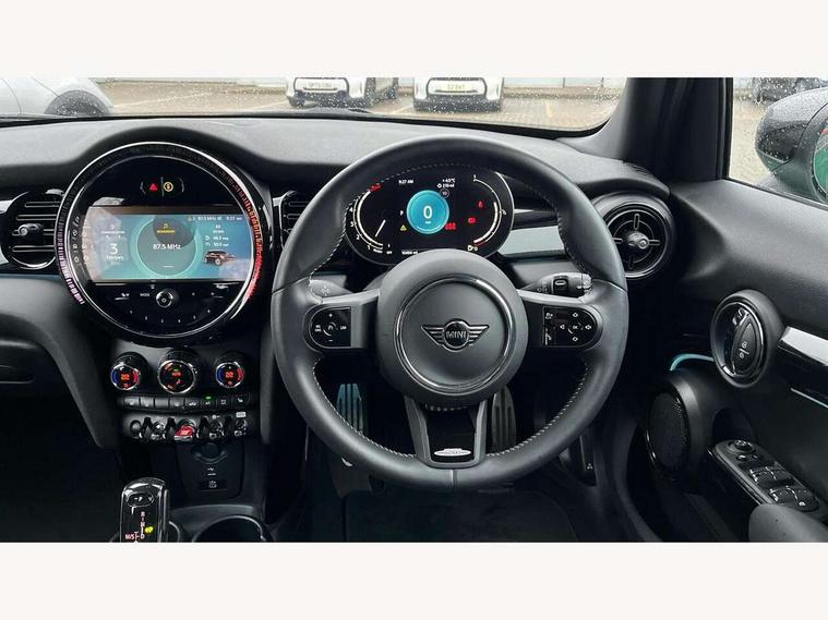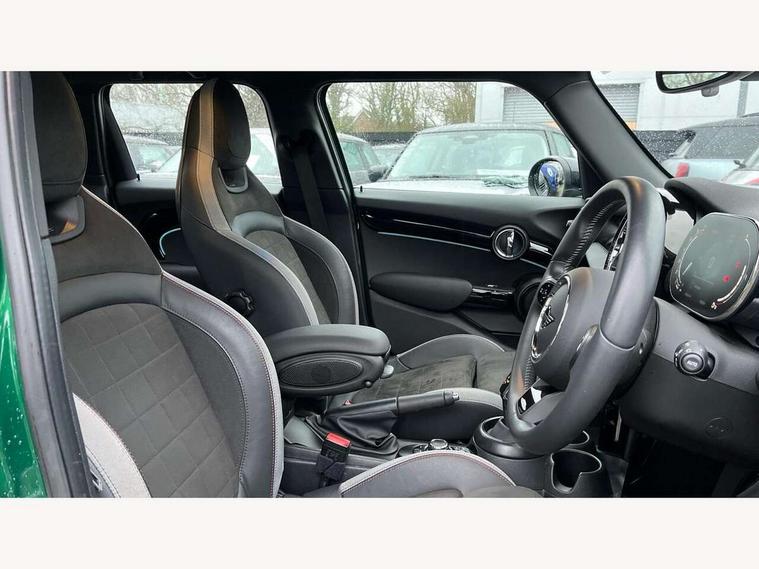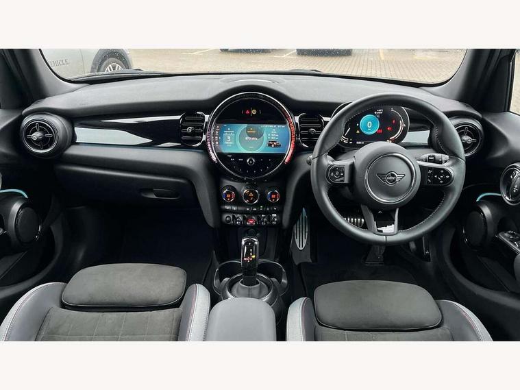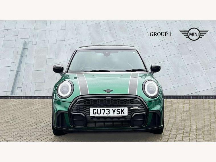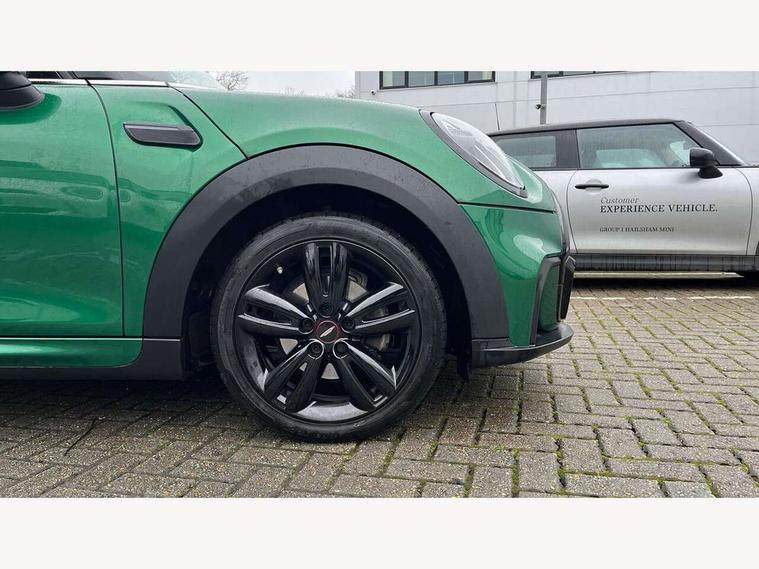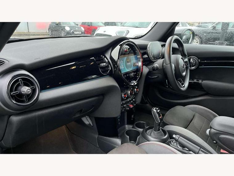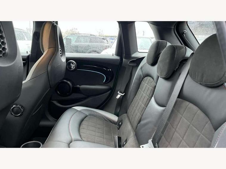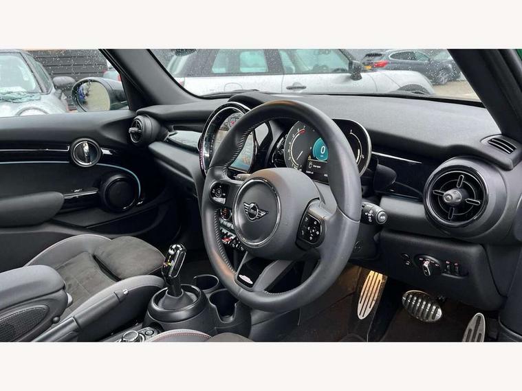 Apple CarPlay, Automatic start/stop function with brake energy recuperation, Compatible mobile phone bluetooth with audio streaming, Electro-mechanical speed dependant steering assistance, Flexible car sharing preparation, MINI Driving Modes - centre toggle switch to control driving setting (sport, mid and green), Mini E-call, MINI TeleServices, On board computer, Rear park distance control, Service interval indicator, Adaptive suspension, Double Vanos system, Fully variable valve control, Gear change indicator display, High precision injection, Performance Control, Steptronic transmission with double clutch, 8.8" touchscreen with LED ring, FM tuner and DAB digital radio, 3rd brake light, Automatic headlight activation switch, Body colour fuel filler cap, Chrome border high gloss black slats radiator grille, Dynamic brake lights, Electric front+rear windows, Exhaust tailpipe on left with chrome finisher, Heated rear window, Heated windscreen washer jets, JCW Aerodynamic kit - Front and rear bumpers with sporty JCW styling and part-painted side sills with MINI John Cooper Works door sill finishers, John Cooper Works rear spoiler, Metal door sill strips with MINI imprint, Model logo Cooper on right of tailgate, Rain sensor window wipers, Rear fog lights, Rear LED lights with union jack design, Rear side wing doors, Rear window wiper, Side scuttle panel with integrated indicator, Sun/heat protection glass, White indicator lenses, 12V Accessory socket in centre console, 3 seat bench in 2nd row, 4 lashing eyes in luggage compartment, 60/40 split folding rear seat, Anthracite headliner including grab handles and clothes hooks, Carbon black colour line - Knee roll and door armrest, Chrome interior highlights, Cupholders, Front and rear isofix with front passenger airbag deactivation, Front and rear velour floor mats, Glove compartment, Height and length steering column adjustment, Interior lighting with 12 different colours across the dashboard, underneath door bezel with illuminated laser-engraved design on central display, JCW Sport seats with integrated headrests, adjustable thigh support and John Cooper Works logo, Leatherette gearshift lever and handbrake gaiters, LED reading lights, vanity mirror lights, front foot well light and spotlight on front seats, Mechanical seat adjustment - forward/back & backrest for front seats and driver seat height adjust, Multifunction steering wheel, Single front passenger seat, Storage compartments in doors, Sunvisors with vanity mirrors, Walknappa leather steering wheel with grey seam and John Cooper Works badge on Piano Black lower steering wheel spoke, Piano black exterior pack - Mini Hatchback Cooper, 3 point seatbelts on all five seats, 6 Airbags - front, side, head and seat belt tensioners, Anti-lock braking system (ABS), Child locks on rear doors, DSC - Dynamic Stability Control, Front and rear disc brakes, Hill start assist, Single tone fanfare horn, Tyre pressure monitoring system, Alarm system with tilt sensor, monitoring doors, bonnet interior and tailgate, Electronic vehicle immobiliser, Start/stop toggle with keyless go, Piano black interior trim, Tool kit,