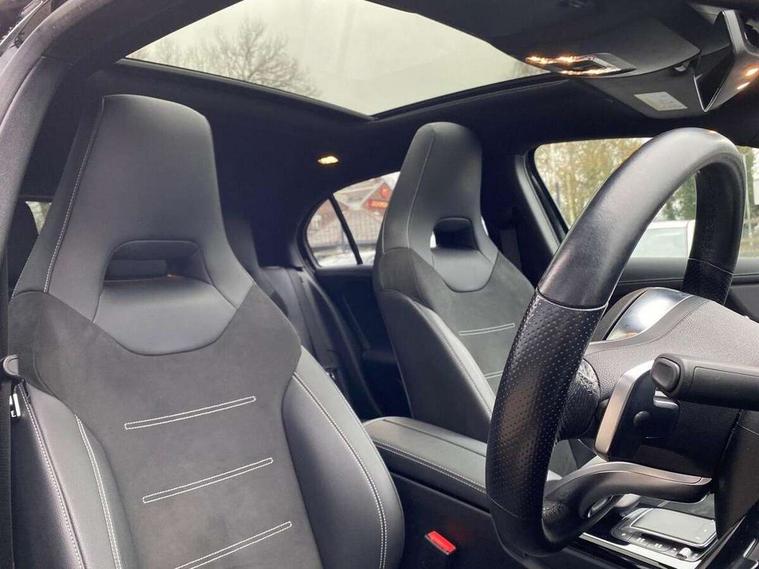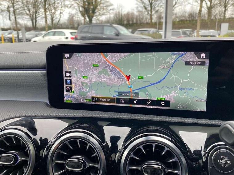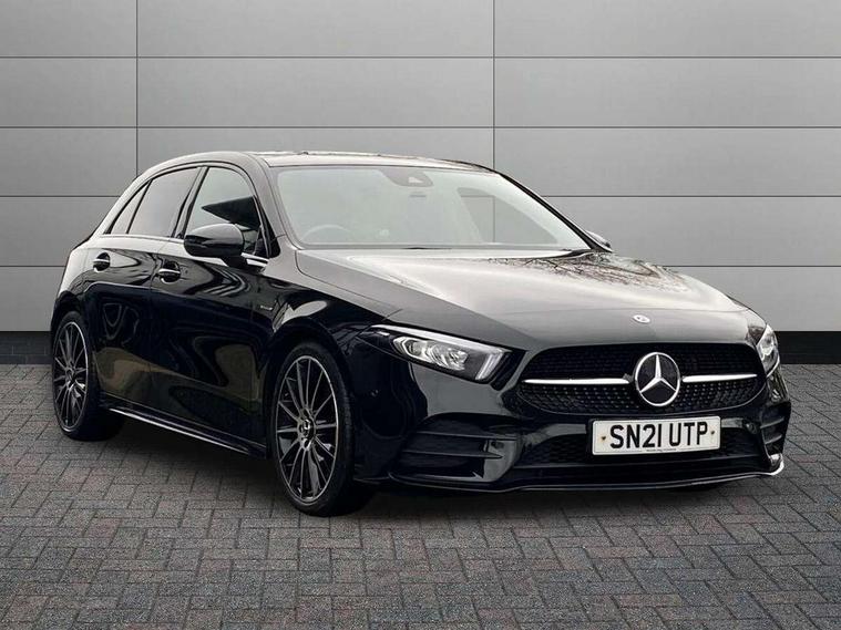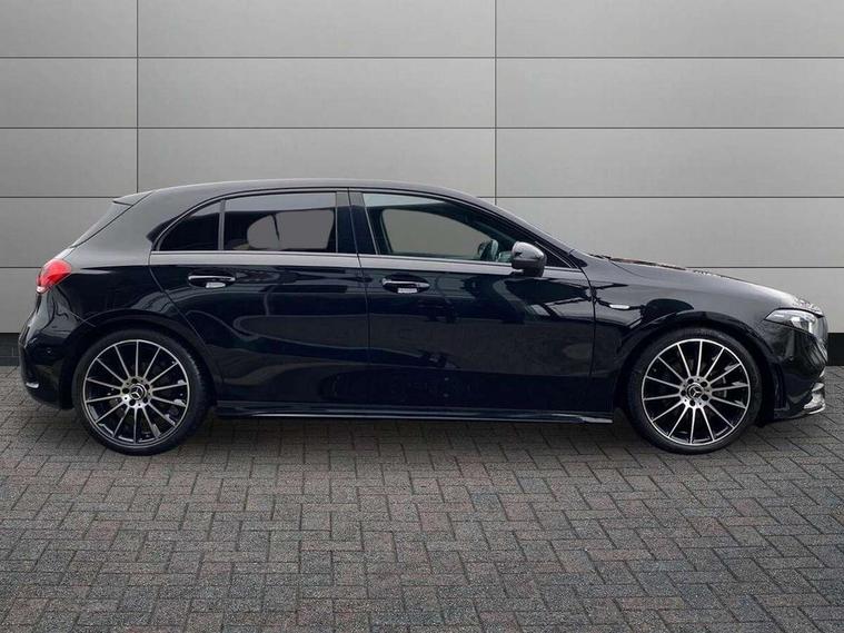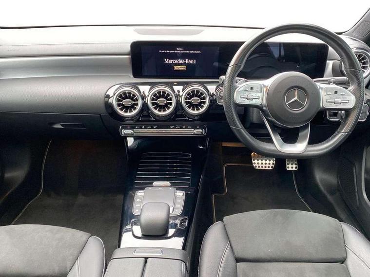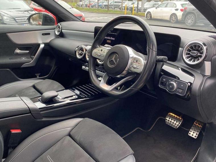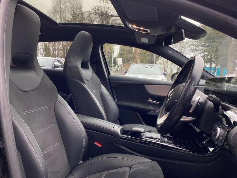 10.25" Digital instrument cluster display screen, 10.25" media display, 180 degree rear view camera with parking guidelines, Active parking assist with visual and audible warning of detected obstacles, Attention assist, Brake pad wear indicator warning light, Car wash mode, Cruise control + speed limiter, Direct steering, Dual bluetooth interfaces, DYNAMIC SELECT with a choice of driving modes (ECO, Comfort, Sport and Individual), ECO start/stop function, Fluid level warning indicator for fuel, oil, coolant and washer fluid, Hard-disk navigation, Hey Mercedes Voice activation, Lamp failure indicator, Mercedes me connect including emergency call system, accident recovery, breakdown and maintenance management, Mercedes me remote services, Outside temperature gauge, Owners manual in English, Pre-installation for private car sharing, Preinstallation for Mercedes Benz link, Service indicator (ASSYST), Smartphone integration with Apple CarPlay and Android auto, Speed limit assist, Speed sensitive power steering, Trip computer, Ultrasonic sensors positioned in the front and rear bumpers, Wireless charging, Lowered comfort suspension, Rear axle torsion beam, 2 USB ports (type C) in rear stowage compartment and one in front of center console, 6 speakers, MBUX multimedia system with DAB digital radio and touchpad including satellite navigation, Mercedes-Benz sound system - 100W, 4 Electric Front and Rear windows, Adaptive brake lights, Black chrome plated tailpipe trim, Body colour bumpers, Body colour door handles, Body colour side skirt, Diamond radiator grille with pins in black and black louvre, Edition badging on the front wings, Electric adjustable and heated door mirrors with integrated LED side indicators, Headlamp assist automatic headlamp activation, Heated glass rear windscreen + timer control, LED high performance headlamps with integrated LED daytime running lights, LED tail lamp, LED third brake light, Panoramic sliding sunroof, Privacy glass, Radio aerial, Rain sensing windscreen wipers with two sensitivity settings, Rear fog lights, Rear wiper, 3 Spoke flat bottom leather multi function steering wheel with perforated leather in grip area, 40:20:40 split folding rear seats, Artico man-made leather/ Dinamica microfiber upholstery, Auto Mercedes-Benz child seat recognition sensor, Black air vents with surround in silver chrome, Black roof lining, Brushed stainless steel sports pedals with rubber studs, Floor mats with black top stitching and embroidered edition logo and piping in light grey, Floor mats with stitched edging and AMG lettering, Front centre armrest with storage compartment, Front door sills with Mercedes Benz lettering, Front seat backs luggage nets, Front seat cushion length adjustment, Galvanished gear shift paddles on steering wheel, Heated front seats, Height/reach adjustable steering column, Interior lighting - 64 colour Ambient lighting, Interior mirror with reading lamps in black and frameless, Rear head restraints, Seat occupancy sensor for front passenger seat, Sports seats with integrated headrests, Stowage compartment in centre console with retractable cover, Sunvisors with illuminated vanity mirrors, Touchpad on center console, Twin front cupholders, Two zone thermotronic luxury automatic climate control, Light and sight pack - A Class, Mirror package - A Class, Night pack - A Class Exclusive Edition, Seat comfort pack - A Class, 3 rear 3 point seatbelts, ABS with Brake Assist, Active bonnet, Active brake assist includes forward collision warning system with autonomous braking, Adaptive brake assist with hold function and hill start assist, Black seatbelts, Bonnet with power domes, Childproof locks manually operated for rear doors and electrically operated for rear power windows, Crash responsive emergency lighting, Driver and passenger head and side airbags, Drivers knee airbag, Dual stage driver/passenger airbags, Electronic parking brake, ESP curve dynamic assist, ESP with ASR, Front and rear seatbelt reminder, ISOFIX and top tether child seat fixing points in two outer rear seats, Tyre pressure monitoring system, Warning triangle and first aid kit, Window airbags, Alarm system/interior protection/immobiliser, Keyless Go, Remote central locking and crash sensor with emergency opening function, Urban guard vehicle protection system with immobiliser and interior protection, Light longitudinal grain aluminium trim painted, 19" AMG multi spoke light alloy wheels painted in titanium grey with high sheen finish, Summer tyres, Tirefit sealant kit,