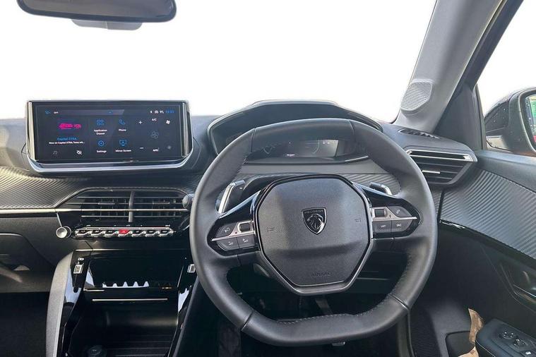 Bluetooth telephone facility, Drive mode select (Eco/Normal/Sport), Driver attention warning, Emergency call service, Exterior temperature indicator with ice warning, Front and rear parking sensors, Gear lever - e-Toggle, Multi function trip computer, PEUGEOT i-Cockpit with 10" configurable colour head up instrument panel, PEUGEOT i-Cockpit with 10" HD capacitive colour touchscreen, PEUGEOT i-Cockpit with compact steering wheel, PEUGEOT SOS and assistance, Push button start, Smart phone docking station, Speed limit recognition and recommendation, Wireless mirror screen with apple carplay and android auto, 6 Speakers - 2 tweeters and 4 door speakers, DAB Digital radio, Peugeot i-connect infotainment system - 10in HD touchscreen, AM/FM/DAB digital radio, Wifi Mirroring, Bluetooth & 2 USB connection, USB-A socket (x1) and USB-C socket (x1) - rear, USB-C data and charge socket and USB-C charge socket in front, Voice recognition for radio, navigation and telephony features, 2 X Rear number plate lights, Acoustic windscreen, Antenna - Gloss Black 'fin' design, Automatic hazard light activation upon heavy brake application, Body coloured exterior door handles, Dark tinted rear side and tailgate windows, Diamond black rear spoiler (roof), Eco LED headlights with electric height adjustment, Electric heated and power folding door mirrors with courtesy floor lighting, Electrochrome rear view mirror, Gloss black B pillar, Gloss black door mirror shells, Gloss black front bumper grille with body colour accents, Gloss black rear cluster connecting strip, Headlights left on audible warning, LED 3 claw horizontal rear lighting signature with daylight function and LED brake lights, LED daytime running lights with distinctive 3 claw signature, LED Rear lighting with distinctive 3 claw horizontal signature with daylight function, LED third brake light, Model designation badges front and rear in basalt grey, One touch electric front/rear windows with pinch protection, Rear bumper with gloss black finish, Rear reversing lights, Rear side wing doors, Rear windscreen wiper triggered automatically in reverse gear, Roof spoiler, Tailgate with heated rear windscreen and wiper blade, Variable front intermittent wipers, 1/3 to 2/3 split folding rear seats, 12V socket, 3 seat bench in 2nd row, Automatic mono zone climate control air condition, Boot lighting, Driver and front passenger comfort seats, Driver and front passenger seat manual adjustment in longitudinal and back rest angle, Driver seat mechanical height adjustment, Electric power steering with reach and rake adjustable steering column, Front centre armrest with storage compartment, Front interior light with 2 reading spotlights, Grained black DRL and lower/upper bumper trim, High centre console with 2 cup holders, Map pockets on the backs of the front seats, Multifunction leather steering wheel, Piano keys gloss black plated toggle switches to access main functions of the vehicle, Quartz contrast stitching to front and rear door armrest, Rear centre headrest, Roof lining - light grey, Seatbelt unfastened on the move audible and visual alert for front and rear seats, Single front passenger seat, Tri material cloth/leather upholstery, Visibility pack - 208, 2x Isofix child seat fitting on outer rear seats, 3 rear 3 point seatbelts, ABS (Anti-lock Braking System) with EBD (Electronic Brakeforce Distribution) and EBA (Emergency Braking Assistance), Child locking functionality on rear doors, Driver and front passenger airbag with passenger airbag deactivation, Driver/front passenger side airbags, Electric parking brake, ESP with Hill Assist, Front and rear curtain airbags, Front and rear disc brakes, Front optimised safety headrests and 3 x rear retractable headrests with height adjustable, Front three point retractable seatbelts with force limiters, Remote plip(x2) for locking, unlocking, includes emergency key blade, Tyre pressure monitoring system, Acoustic vehicle alert system (AVAS), Alarm - Connected, volumetric , perimetric, anti lift sensor, Automatic door locking when moving off, Deadlock, Electronic code immobiliser, Remote central locking, Carbon effect Dashboard, front and rear door panel finish, 16" Noma two tone diamond cut alloy wheels,