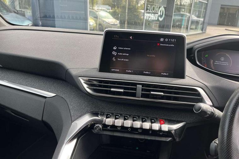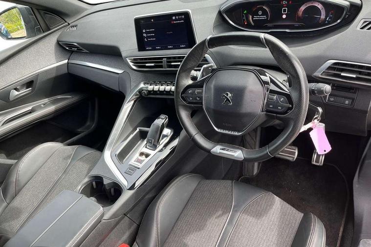 3D connected navigation + voice control + Peugeot connect SOS and assistance, Blind spot monitoring, Digital clock, Exterior temperature gauge, Lane departure warning system, Lane keep assist, Mirror screen with mirror link and car play, Multi function trip computer, Peugeot i-cockpit with amplify configurable interior ambiences, headup display with distance alert, touch screen, Rear parking aid, Smartphone cradle, Speed sensitive power steering, DAB Digital radio, Peugeot connect with USB and bluetooth, Radio/MP3 player, Steering column mounted multifunction controls, Automatic activation of hazard warning lights, Automatic headlamp levelling, Black diamond roof, Black door mirrors, Body colour door handles, Body colour rear spoiler, Body coloured bumpers, Chrome bumper inserts, Chrome front fog light surround, Chrome radiator grille and surround, Chrome side window trim, Dark tinted rear windows, Electric folding door mirrors with courtesy approach lighting, Electric operated/heated door mirrors, Heated rear windscreen, LED daytime running lights, LED headlights with LED front fog light and static cornering light, LED rear lights, One touch electric front/rear windows, Peugeot smart beam assist, Rear wiper, Sports front bumper, Twin exhaust tailpipe, 1/3 to 2/3 split folding rear seats, 3 x 12V power sockets, 4 Lashing eyes in boot, Blue ambient lighting, Centre console cupholder, Centre front armrest with illuminated cool compartment, Cupholders - 2 in rear centre armrest, Dual zone automatic climate control, Fold flat front passenger seat with picnic table, Front headrests, Front reading lights, Front seat back map pockets, Gear shift indicator, Grab handles, Height adjustable headrests, Height adjustable passenger seat, Height/reach adjust steering wheel, Illuminated glovebox, Illuminated vanity mirrors, Instrument panel light dimmer, ISOFIX on front passenger and rear outer seats, LED interior illumination, Mistral floor mats, Mistral full grain perforated leather steering wheel with aikinite stitch, Rear centre armrest/ski flap, Rear coat hook, Rear headrests, Rear passenger footwell storage, Rear reading lights, Reclining front seats, Roof lining - Tramontane black, Satin chrome gear lever, Satin chrome interior door handles, Visibility pack - 3008, 3 point front seat belts, 3 point seatbelts on all rear seats, ABS + EBD + EBA, Auto city emergency braking, Driver SMART airbag, Electronic parking brake, ESP with ASR, Front and rear curtain airbags, Front and rear pre-tensioning and force limiting seatbelts, Front passenger SMART airbag with deactivate switch, Height adjustable front seatbelts, Hill start assist, Seatbelt warning lamp and buzzer, Side airbags x 2, Tyre pressure sensor, Automatic door lock/re-lock after 30 seconds, Central locking button on dash, Child lock control of rear doors and windows, Deadlocks, Locking wheel bolts, Perimetric and volumetric anti theft alarm, Remote control central locking with two plip keys, Rolling code transponder immobiliser, Brumeo fabric interior trim,
