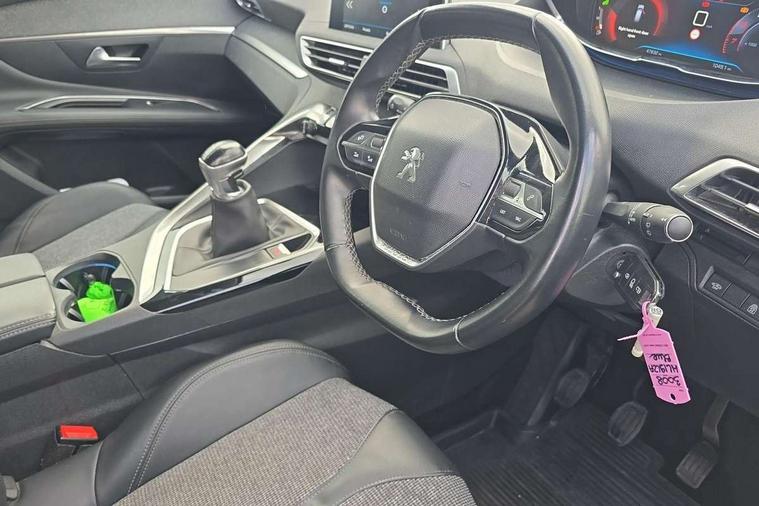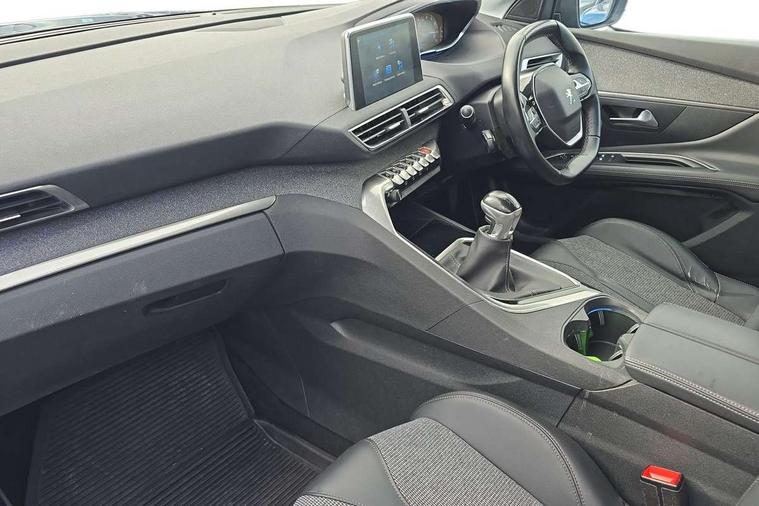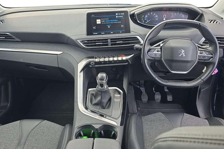 Brumeo fabric Dashboard, front and rear door panel finish, Satin chrome dash trim, Satin chrome instrument dial surrounds, Safety pack - 3008, Safety Plus Pack - 3008, Visibility pack - 3008, Anti theft alarm, Automatic door lock/re-lock after 30 seconds, Automatic hazard light activation upon heavy brake application, Central locking button on dash, Deadlocks, Electronic immobiliser, Locking wheel bolts, Remote control central locking with two plip keys, DAB Digital radio, Steering column mounted multifunction controls, USB socket, 3x Rear three-point retractable seatbelts with force limiters in the outer rear seats, Adaptive driver and front passenger airbags with passenger airbag deactivation function, Anti-lock braking system with electronic braking distribution and emergency braking assistance, Auto city emergency braking, Driver and front passenger side airbags, Driver SMART airbag, Electric child locking functionality on rear windows and doors, Electric parking brake, ESP with ASR, Front and rear curtain airbags, Front optimised safety headrests and 3 x rear retractable headrests with height adjustable, Front passenger SMART airbag with deactivate switch, Front three point retractable seatbelts with pre tensioners and force limiters, Front ventilated disc brakes and rear disc brakes, Height adjustable front seatbelts, Hill start assist, Tyre pressure sensor, 2 X Rear number plate lights, Aluminium longitudinal roof bars, Automatic triggered rear windscreen wiper in reverse gear, Black and chrome front wing trim, Black bumper protection plate, Black rubber side window trim, Body colour door handles, Body colour door mirror shells, Body colour rear spoiler with stainless steel edging trim, Body coloured bumpers, Body protectors (bottom of front and rear bumpers + wheel arches + protection at bottom of doors) in black, Chrome bumper inserts, Chrome front fog light trim, Chrome radiator grille and surround, Chrome rear bumper facia, Dark tinted rear side windows + tailgate window, Door mirror mounted LED courtesy approach lights, Electric operated/heated door mirrors, Front windscreen wiper with magic wash cleaning system, Gloss black finish B and C pillar, Gloss black rear cluster connecting strip, Gloss black windscreen surround, Halogen headlights, Headlights left on audible warning, Heated rear windscreen with integrated antenna, LED daytime running lights, LED sequential scrolling front indicators, LED side indicator lights integrated into door mirrors, Lion grey front bumper scuff plate, One touch electric front/rear windows with pinch protection, Power folding door mirrors with blind spot detection indicator and auto dipping function in reverse gear, Radiator grille in chrome edge trim and facets, Rear LED Peugeot signature 'Claw Effect' lights, Stainless steel roof arches, 1/3 to 2/3 split folding rear seats, 12V Sockets in dashboard, rear cabin and load area, 2 cupholders in front centre console, 2 rear reading spotlights, 2x Rear coat hooks, 3x Isofix child seat fittings in the front passenger and outer rear seats, 4 Grab handles retractable and damped, 4 Lashing eyes in boot, Blue ambient lighting for connecting zone, Blue ambient lighting to front door panels, central storage and cupholders, Blue ambient lighting to head up instrument panel, Centre front armrest with butterfly wing opening and illuminated storage compartment, Driver and front passenger seat height adjustment, Driver seat manual adjustment, Dual zone automatic climate control, Electric power steering with reach and rake adjustable steering column, Fixing rings 4 in load compartment, Flocked glovebox interior, Fold flat front passenger seat with picnic table, Footwell illumination, Front headrests, Front interior light with 2 reading spotlights and rear interior light with timer, Front seat back map pockets, Gear shift indicator, Height adjustable headrests, Illuminated glovebox, Illuminated vanity mirrors, Mistral full grain leather steering wheel, Rear armrest with ski flap and two cup holders, Rear centre console ventilation system, Rear headrests, Reclining front seats, Roof LED interior lighting, Roof lining - Salin light grey, Satin chrome dashboard trim, Satin chrome digital instrument panel and touchscreen trim, Satin chrome front door panel recess trim, Satin chrome gear lever, Satin chrome interior door handles, Satin chrome scorpion's tail and toggle switch trim, Seatbelt not fastened audible and visual alert for front seats, Seatbelt unfastened on the move audible and visual alert for front and rear seats, Two position boot floor, 'Lights On' Reminder warning buzzer, 3D connected navigation + voice control + Peugeot connect SOS and assistance, Bluetooth telephone facility, Digital clock, Exterior temperature indicator with ice warning, Front and rear parking sensors, Lane departure warning system, Mirror screen with mirror link, apple carplay and android auto, Multi function trip computer, PEUGEOT i-Cockpit with 8.0" capacitive touchscreen in centre console, PEUGEOT i-Cockpit with compact sports steering wheel, PEUGEOT i-Cockpit with configurable 12.3" Head-up digital instrument panel, Speed limit recognition and recommendation, Dynamic stability control and electronic anti-skid system,