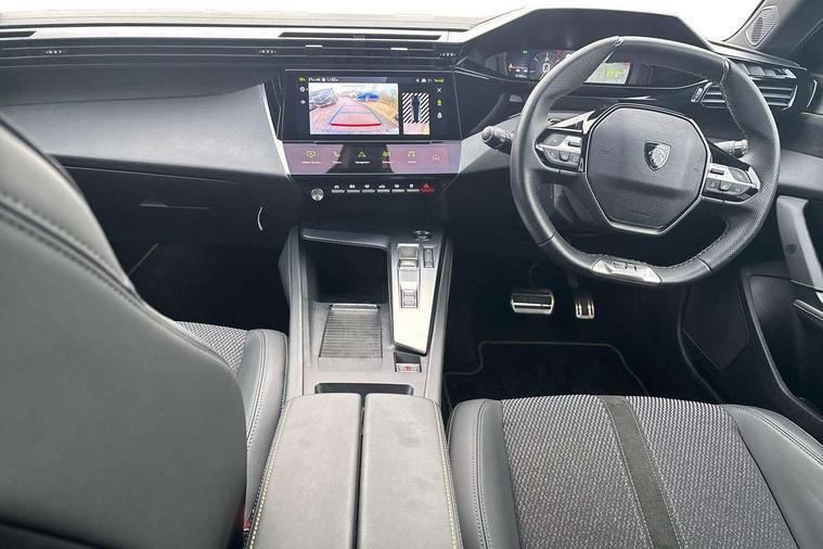 Bluetooth telephone facility, Compact drive selector, Driver attention warning, Emergency call service, Exterior temperature indicator with ice warning, Front and rear parking sensors, Intelligent speed adaptation, Lane keep assist, Mirror screen with wireless apple carplay and android auto, Multi driving mode selector - Eco / Normal / Sport mode selector, Multi function trip computer, Peugeot connect advanced with connected 3D navigation, PEUGEOT i-Cockpit - compact steering wheel, 10" HD colour touchscreen with configurable 3D headup instrument panel, Service interval indicator, Speed limit recognition and recommendation, Sport pedals with foot rest, DAB Digital radio, Peugeot customisable iToggles, Voice recognition for radio, navigation and telephony features, 2 X LED rear number plate lights, Acoustic and tinted windscreen, Acoustic laminated front side windows, Automatic hazard light activation upon heavy brake application, Automatic triggered rear windscreen wiper in reverse gear, Bi-tone roof rails, Body colour door handles, Body colour rear roof spoiler, Dark chrome chequered radiator grille, Dark tinted rear side and tailgate windows, Electric operated/heated door mirrors, Extended lower body sills to the front and side, Framed electrochromatic rear view mirror, Front and rear electric windows with one touch/anti pinch, Full LED matrix headlights with automatic adjustment, Gloss black finish B pillar, Gloss black rear cluster connecting strip, GT model designation badging on tailgate, High beam assist, LED 3rd brake light, LED side indicator lights integrated into door mirrors, Lion emblem badging on front wings, Model designation badges on front and rear, Nera black door mirrors, Peugeot aluminium door sills, Peugeot signature LED daytime running lights, Power folding door mirrors, Rear full LED 3D Peugeot new claw effect lights with sequential welcome sequence upon unlocking the vehicle, Rear lower bumper gloss black diffuser effect trim, Rear reversing lights, Rear side wing doors, Tailgate with heated rear windscreen and wiper blade, Twin exhaust pipes with chrome surround, 12V socket, 2 front USB socket including 1 USB type c, 3 seat bench in 2nd row, 40/20/40 flat folding rear seats, 8 Colour personalisable ambient lighting, Automatic air conditioning with AQS 3, Belomka tri-material woven cloth with Isabella leather effect upholstery, Carpet mats, Central front armrest with storage compartment, Dynamic front seats, Electric power steering with reach and rake adjustable steering column, Front central console with two cup holders, LED Glovebox light, Manual driving mode - change gear manually via steering mounted paddles, Multifunction full grain leather steering wheel with admite green stitching & GT badging, Piano keys gloss black plated toggle switches to access main functions of the vehicle, Rear centre armrest with cupholders, Roof lining - Mistral black, Seatbelt unfastened on the move audible and visual alert for front and rear seats, Single front passenger seat, Sunvisor with concealable mirrors and LED lighting, Twin USB charging ports in the rear (Type C), Two position boot floor, Driver sport pack with sports power steering - 308, Visibility pack with automatic magic wash windscreen wipers - 308, 2x Isofix child seat fitting on outer rear seats, 3x Rear three-point retractable seatbelts with force limiters in the outer rear seats, ABS + EBD + EBA, Active safety brake with night function/cyclists/pedestrians, Adaptive driver and front passenger airbags with passenger airbag deactivation function, Automatic post collision braking, Child locks on rear doors, Driver/front passenger side airbags, Electronic parking brake, ESP, Front and rear curtain airbags, Front optimised safety headrests and rear retractable headrests (x3), height adjustable, Front three point retractable seatbelts with force limiters, Front/rear disc brakes, Hill start assist, Tyre pressure sensor, Automatic door locking when moving off, Deadlocking system, Electronic code immobiliser, Locking wheel nuts, PEUGEOT Open and Go keyless entry system, Thatcham cat. 1 alarm with anti lift sensor,