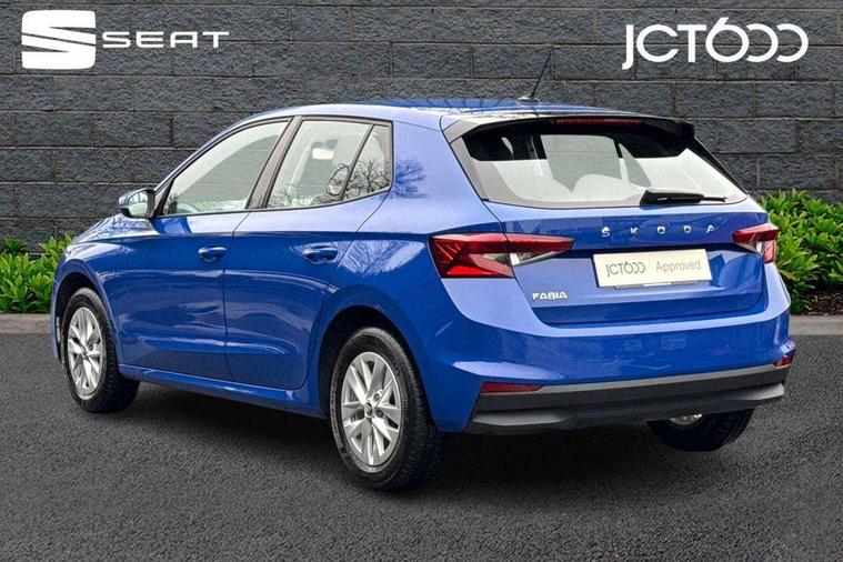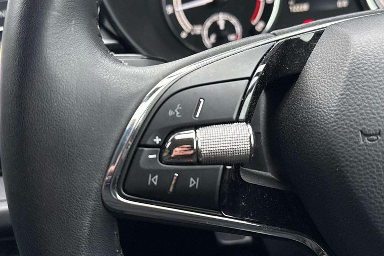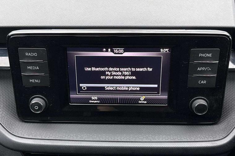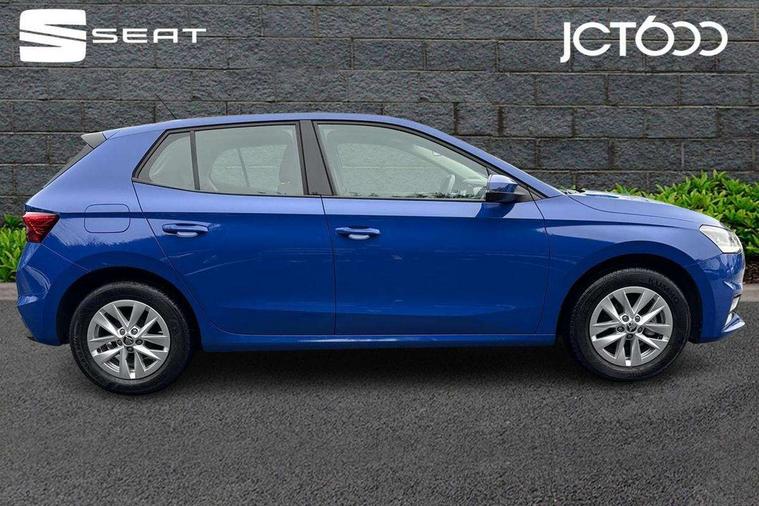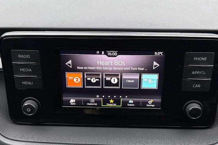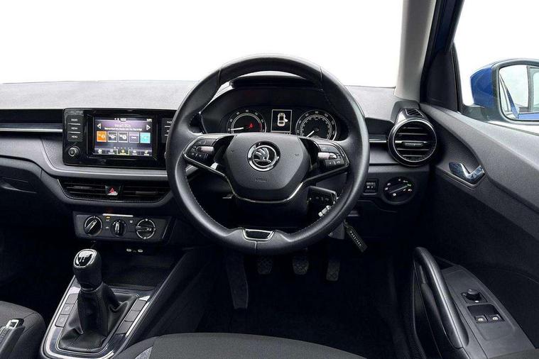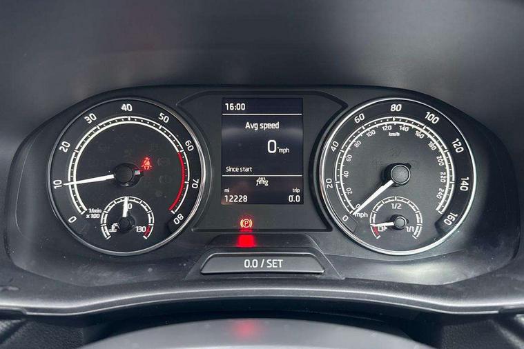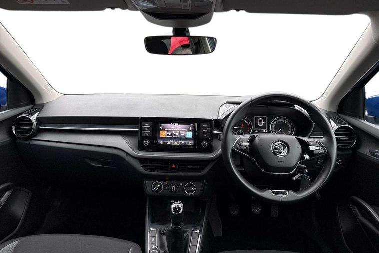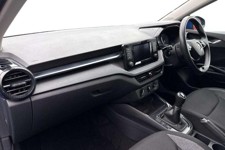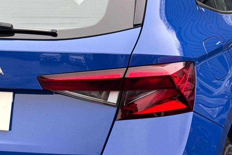 Bluetooth connection, Driver alert system - DAS, Electromechanical power steering, Exterior temperature gauge, Lane assist including road edge detection, Multifunction trip computer in black and white, Service interval indicator, Speed limiter, 2x USB-C in the front (for data transmission and charging), 4 speakers in front, Auxiliary socket for external MP3 player, DAB digital radio reception, Radio Swing with 6.5" colour display, Basic LED Headlights, Basic rear lights, Body colour door mirrors, Body coloured bumpers, Dimming rear view mirror with black frame, Door mirror integrated indicators, Electrically adjustable and heated door mirrors, Electrically adjustable front windows with function auto up/down, Front fog lights, Front window wiper intermittent control, Headlight range control - Automatic, Ice scraper in fuel cap, LED daytime running lights with coming and leaving home feature, Mechanical adjustable rear windows, Rain sensor, Rear LED fog light, Rear side wing doors, Rear window wiper with washing nozzles, Roof mounted spoiler, SKODA tailgate lettering in chrome, Third brake light, 2 reading lights in front and 2 reading lights in rear, 2 spoke leather multifunction steering wheel, 3 rear headrests, Backrest split and folding, Central console with fixed cup holder and storage box, Chrome handbrake release button, Fabric upholstery, Gearshift knob/handle in leather, Grain satin black interior door handles, Hand brake lever handle in leather, Height adjustable front headrests, Height adjustable front seats, Height adjustable steering wheel, ISOFIX and TopTether anchorage points to the outer rear seats, ISOFIX and TopTether on the front passenger seat, Luggage compartment lighting, Manual air conditioning, Manually adjustable lumbar support in front seats, Pollen filter, Rear seat bench unsplit, Single front passenger seat, Storm grey headlining, Sun visors with mirror and airbag label on passenger side, Ticket holder, 3-point height adjustable front seats belts with pretensioner and force limiter, Automatic warning lights in case of crash, Driver and passengers airbag with switch off function, e-Call+, ESC including ABS, MSR, ASR, EDS, HBA and XDS, Front and rear seat belt warning, FRONT ASSIST (AEB City and AEB Inter Urban), Front side airbags, Head airbags, One tone horn, Pedestrian protection, Three rear 3-points safety seat belts with pretensioner and force limiter including stop function for outer rear seat belts, Tyre pressure monitoring system, Anti-theft alarm system including immobiliser, interior monitoring, backup horn, and towing protection, Central locking with radio remote control, interior controls, SAFE function and 2 foldable keys, Black painted air vents, Glossy black decorative trim, Grain satin black central console cover, Grain satin black lower decorative trim, Satin black door and side trim panel in front, Anti-theft wheel bolts protection, Super-low rolling resistance tyres,