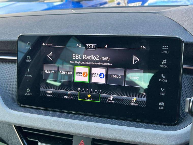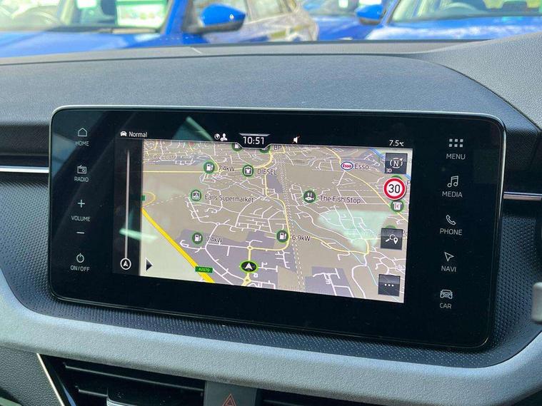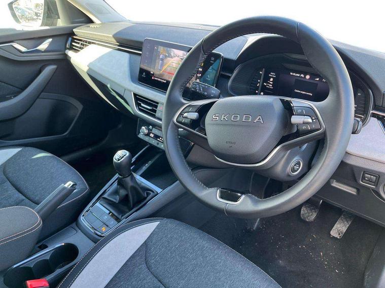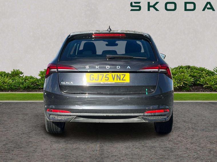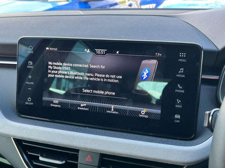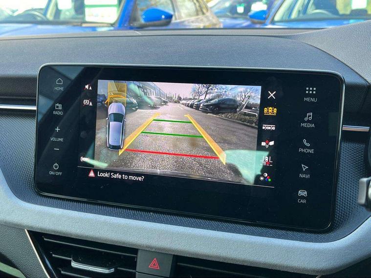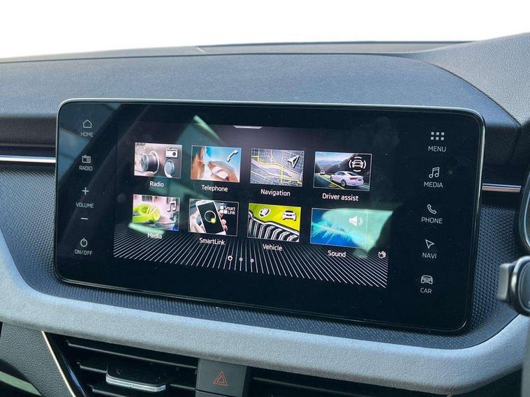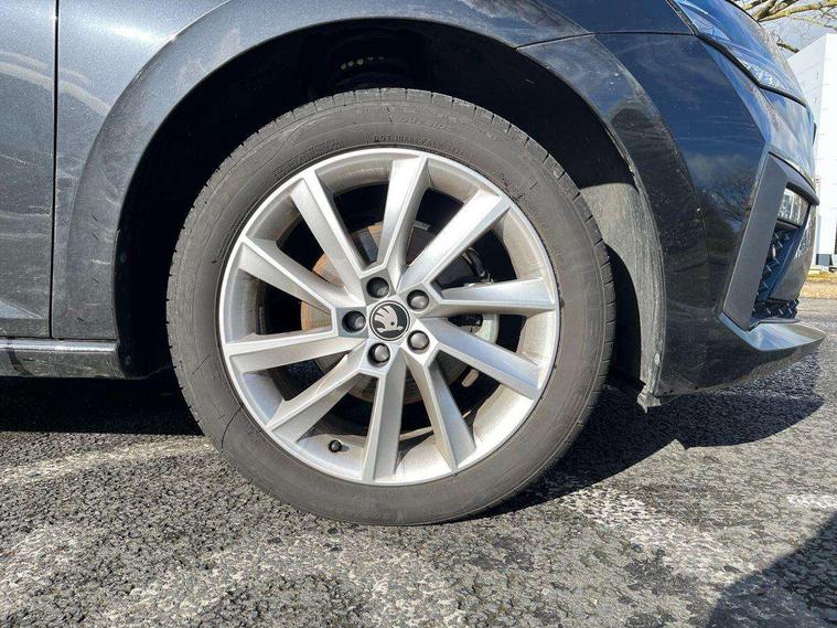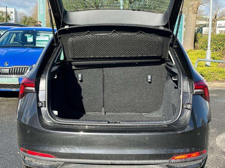 Advanced driver attention and drowsiness monitor, Bluetooth, e-Call (emergency call), Front assist system, PAS, Rear parking sensors, Rear view camera, Speed limiter, Tailgate, Traffic sign recognition, Virtual Cockpit - 10.25" digital display, Voice control system, Wireless smartlink, 4 USB C ports, 8 Speakers, 9.2" Skoda navigation display, DAB radio, Auto dimming rear view mirror, Automatic headlight control with manual coming and leaving home feature, Automatic intermittent wipers, Body colour bumpers, Body colour door mirrors and handles, Chrome moulding around grille, Chrome window frames, Front and rear electric windows, Heated rear window, LED 3rd brake light, LED daytime running lights, LED high beam, LED low beam, Light sensors, Privacy glass, Rear LED fog light, Rear side wing doors, Rear wiper, Tinted windows, Unique dark chrome design logo on alloy wheels, 12V socket in luggage compartment, 3 seat bench in 2nd row, Ambient lighting in white/red, Black / Copper armrest stitching, Cargo elements, Chrome inner door handles, Copper hotstamping, Door inserts in accent black, Driver and passenger sun visors with vanity mirror, Dual zone climate control, Front and rear roof lights, Front centre armrest, Front head restraints, Glasses storage in roof liner, Height adjustable driver seat, Height adjustable passenger seat, Ice scraper, Illuminated glove compartment, Inner circulation control with pollen filter, ISOFIX for front passenger seat, Isofix preparation for back seats, Leather gearknob and handbrake lever, Lodge cloth upholstery, Luggage net under rear parcel shelf, Manual lumbar support for front seats, Net package and top tether hooks in boot space, Pocket on the back of both front seats, incl. mobile phone pockets, Rear centre armrest, Single front passenger seat, Skoda lettering on steering wheel, Textile floor mats, Third rear headrest, Ticket holder, Top tether for front passenger seat, Umbrella in driver's door, Convenience pack without rear camera - Scala, 3x3 point rear seatbelts, ABS, Child locks, Curtain airbags and front side airbags, Disc brakes, Driver and front passenger airbags, ESP, Hill hold control, Manual leather parking brake, One tone horn, Passenger airbag switch off function, Seatbelt reminder for driver and front passenger, Tyre pressure monitoring system, Anti theft alarm system with interior monitoring, backup horn and towing protection, Anti-theft wheel bolts, Remote central locking with 2 remote folding keys, SAFE function for remote central locking, Decorative inserts,