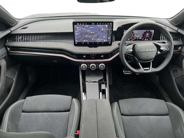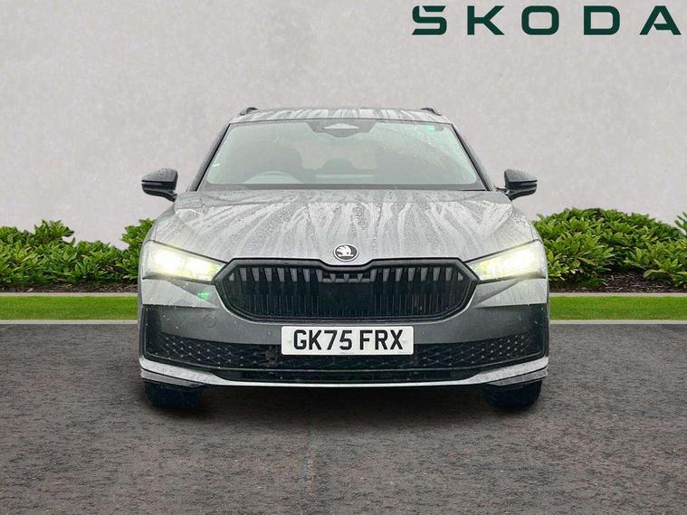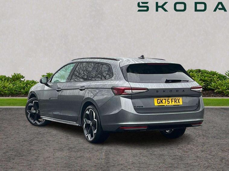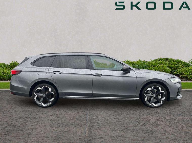 13" touchscreen display with satellite navigation, 4x USB-C ports (2x in front centre console and 2x in rear) (45W), Adaptive cruise control with speed assist, lane assist plus and traffic tram assist, Blind spot detection with door exit warning, Bluetooth system, CareConnect and Emergency Call, ChatGPT functionality, Drive mode selection, Driver fatigue sensor, Front assist with extended predictive pedestrian protection, Front cross traffic assist, PAS, Quick start all heating software functionality, Stop/start engine system, Traffic sign recognition, Turn assist with evasive assistance, Virtual Cockpit - 10.25" digital display, Voice control system, Washer for rear camera, Wireless charging for one smartphone (15W) with cooling function, Wireless smartlink apple carplay, SmartLink+ android auto, Dynamic chassis control plus with progressive dynamic steering, Mode 3 charging cable, DAB Digital radio, Display cleaner, FM radio connection, Web radio connection, Acoustic side windows and interior noise suppression, Backdrop lighting, Black exterior styling window and grille surrounds, Black roof rails, Body colour door handles, Dynamic range control with poor weather light and integrated fog light, Electrically adjustable, heated, folding and driver side auto-dimming door mirrors with memory function, integrated indicators and logo projection, Frameless auto-dimming rear view mirror with USB-C, Gloss black door mirrors, Ice scraper in fuel tank cap, LED 3rd brake light, Light assist with High beam control, Light assistant (coming/leaving home/tunnel light), Privacy glass, Rear fog lights (x2), Rear roof spoiler, Rear side wing doors, Rear windscreen wiper, Skoda lettering in black, Sportline badging, Sports bumpers, Windscreen wipers with rain sensor, 12V socket 1x centre console 1x boot, 14-way electrically adjustable, memory, front seats with 4-way pneumatic lumbar support, and extendable thigh support with smart comfort entry aid, 2x cargo elements in boot, 2x light in boot, 3 seat bench in 2nd row, 4x foldable bag hooks in boot, 60:40 Split folding rear seats, Aluminium pedals, Bottle holders in the front doors 1.5 litre bottle and rear 1.5 litre bottle, Cup holder in front with easy open mat, Front armrest with storage box, Front sports seats, Heated and ventilated front seats, Height adjustable front and rear head restraints, Illuminated glovebox, Interior lights with control switches, Isofix child seat fittings in outer rear and front passenger seats, LED front and rear reading lights, Single front passenger seat, Skoda lettering on steering wheel, Storage compartment with cover, Storage pockets on back of front seats, Sun visors with illuminated vanity mirrors, Ticket holder on A Pillar, Tri zone climate control, Umbrella in driver's door, Light and view package - Superb, Transport package - Superb Estate, 3 rear seatbelts, 8 Airbags - Front driver and passenger, front side driver and passenger, centre, curtain front and rear, drivers knee, Crew protect assist, Driver and passenger seatbelts with warning light, Electronic parking brake, ESC including ABS, EBV, MSR, ASR, EDS, HBA, DSR, RBS, CBC, multi-collision brake (MKB) and Auto hold, Hill hold assist, Power operated child lock in rear doors, Alarm with interior monitoring tilt sensor and back up horn, Backrest remote release from trunk, Electronic engine immobiliser, Keyless start/stop, Remote central locking with SAFE system, Third key, Walk away locking, Decorative front door sills, 19" Torcular polished black alloy wheels with anti theft wheel bolts, Tyre repair kit,